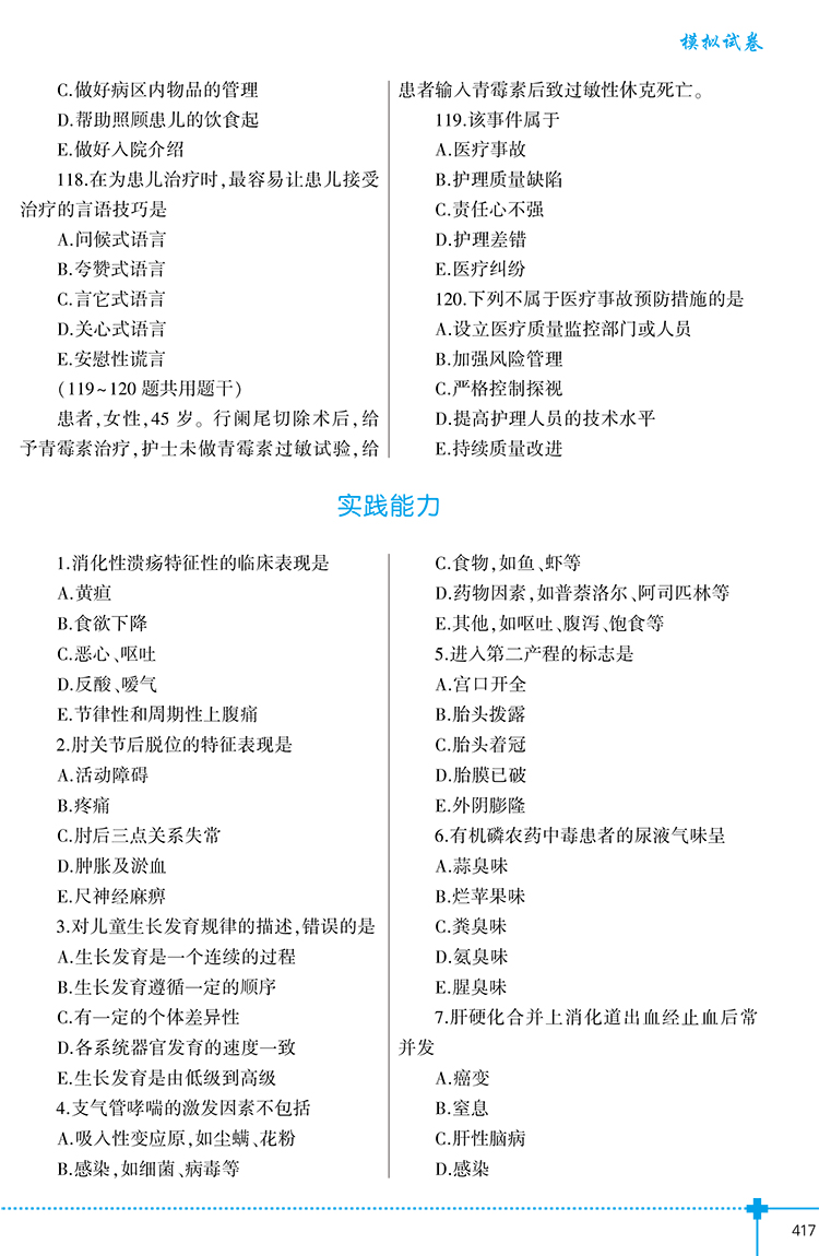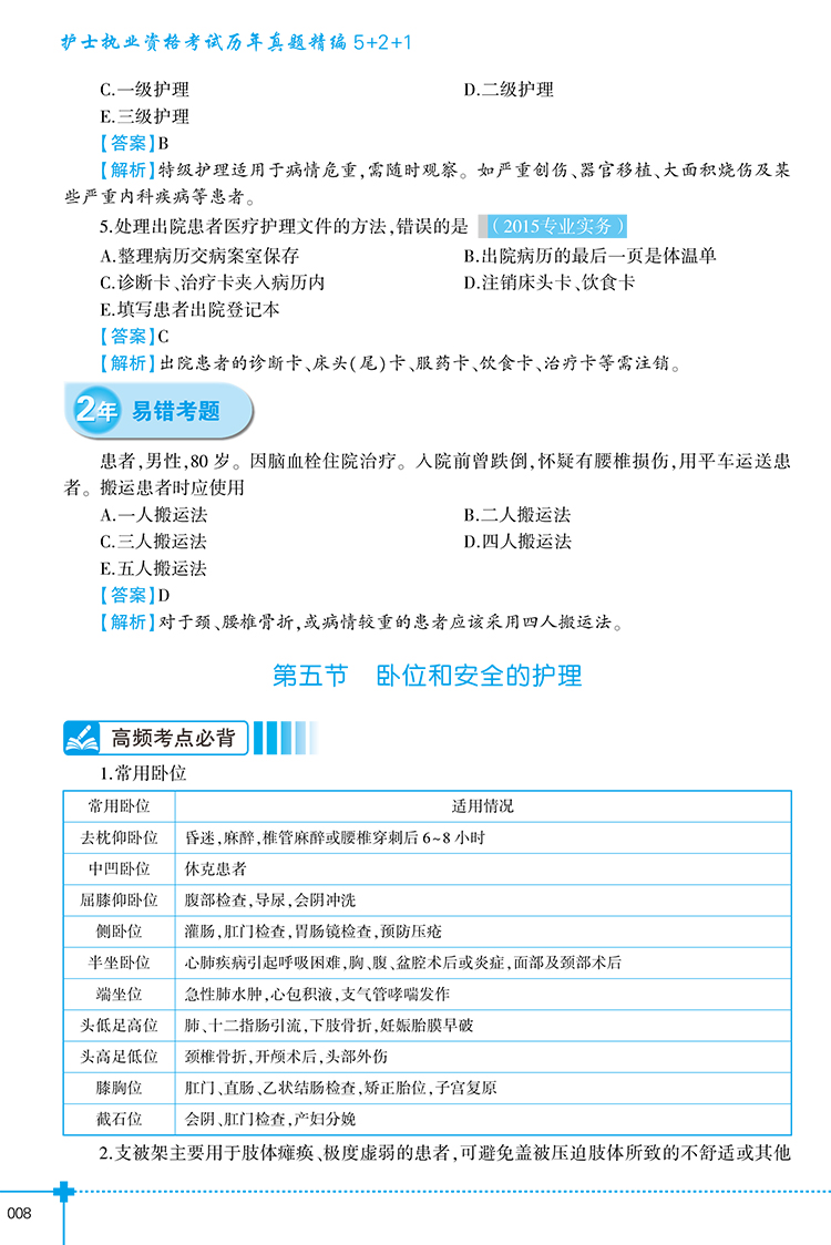 本书收录了近5年来全国护士执业资格考试中的部分真题,使考生通过真题了解考试,同时在真题后设置了经典易错题,避免考生掉入考题中的“陷阱”,最后通过模拟试卷巩固及检测自己的学习情况,有的放矢地复习。