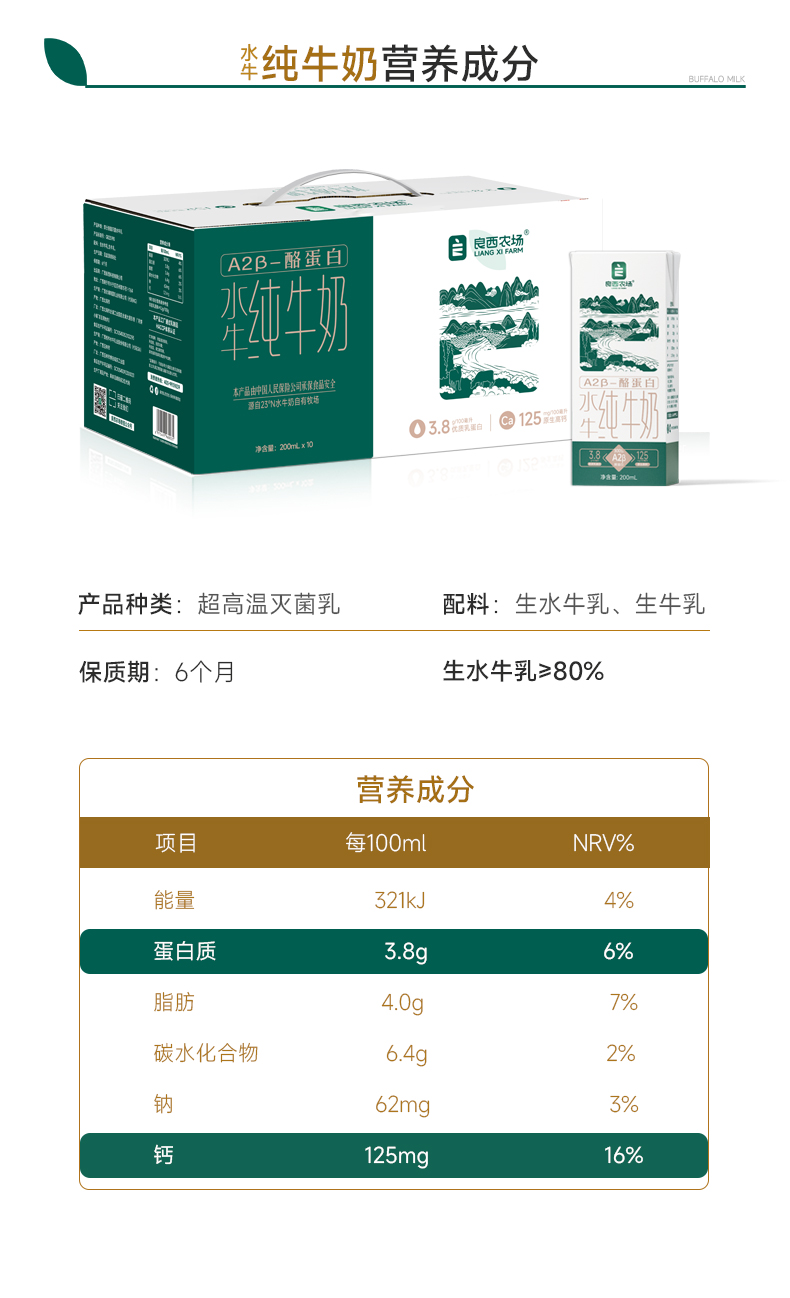 【良西农场】A2β-酪蛋白广西水牛3.8纯牛奶200ml 营养健康早餐奶