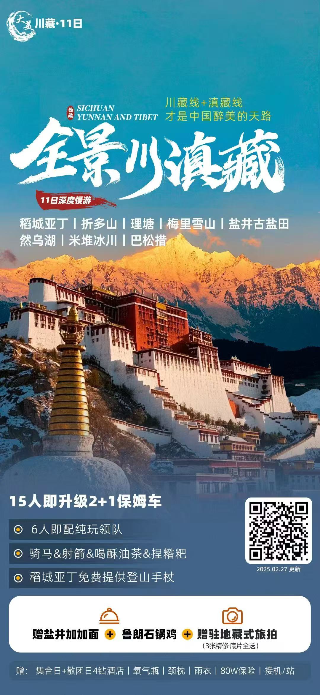 【大美川藏·11日】稻城亚丁+理塘+梅里雪山+盐井古盐田+然乌湖+米堆冰川+巴松措深度慢游