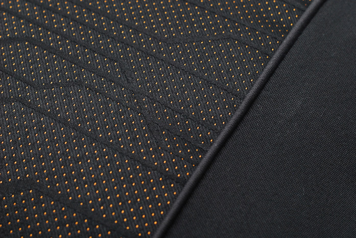 选用沉稳大气的黑色面料为基色,跳跃的金色勾勒,雅致的轿厢氛围展现的淋漓尽致,灵动时尚。产品采用汽车内饰专用面料,此面料广泛应用于汽车织物座椅,水洗、日晒色牢度、抗静电等指标均达到汽车行业标准。