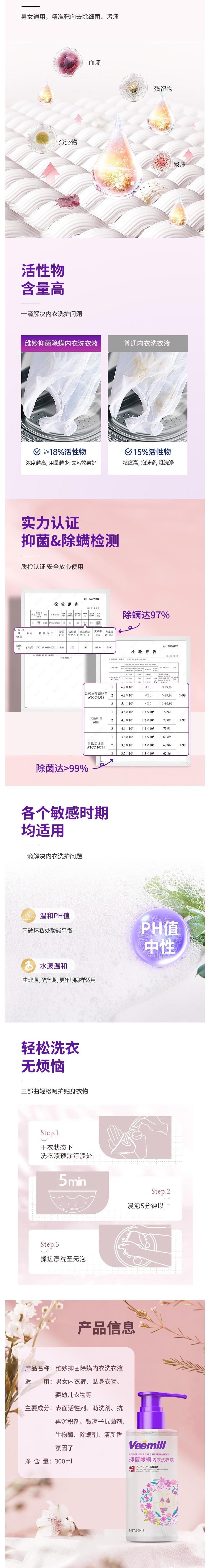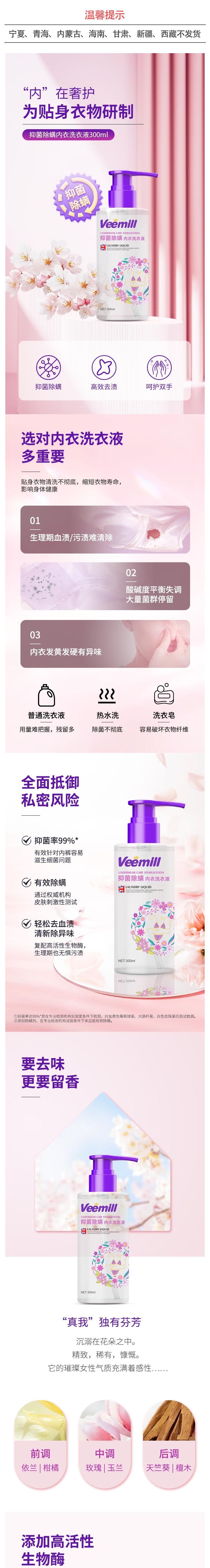 Veemill维妙 抑菌除螨祛黄祛血渍内衣内裤洗衣液300ml*2瓶 01Veemill001Z