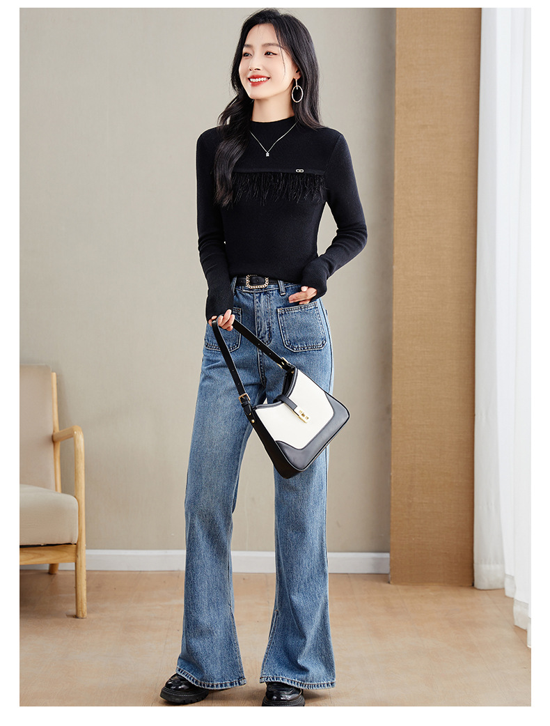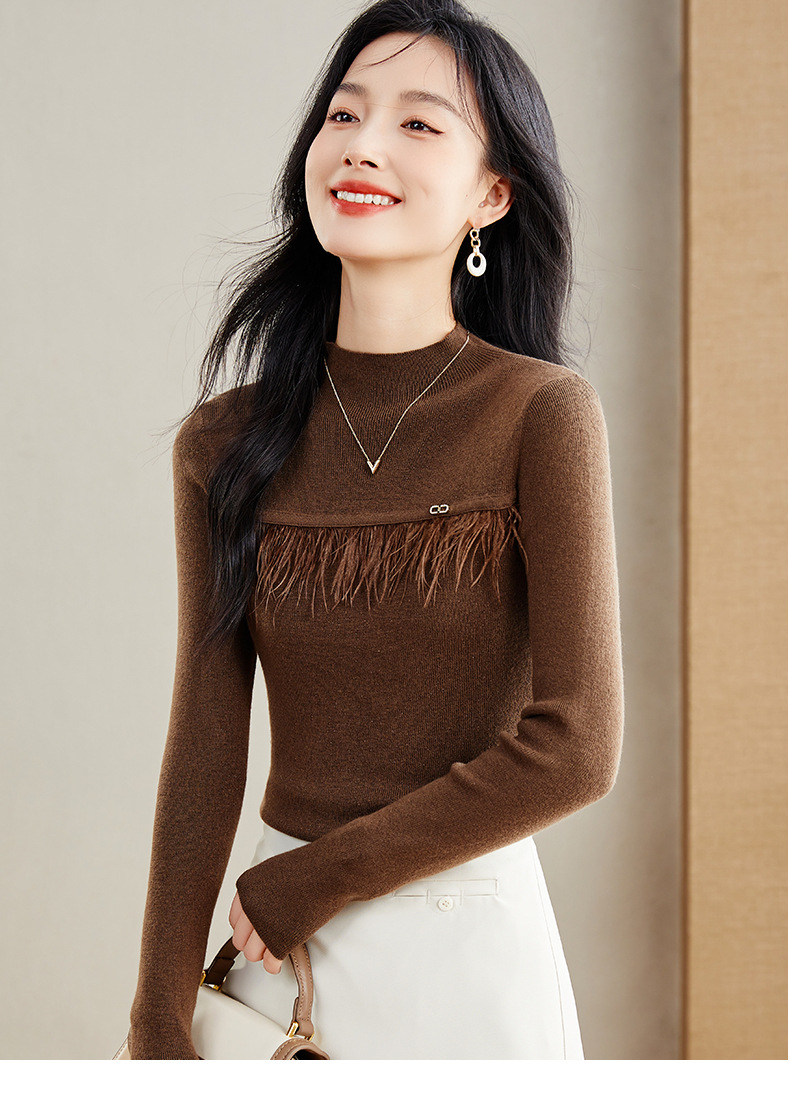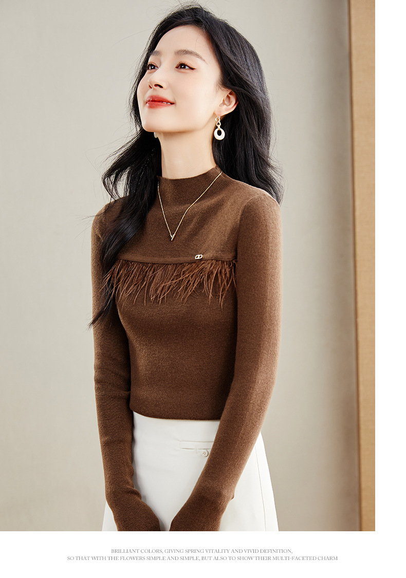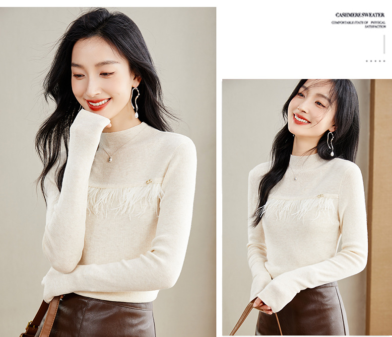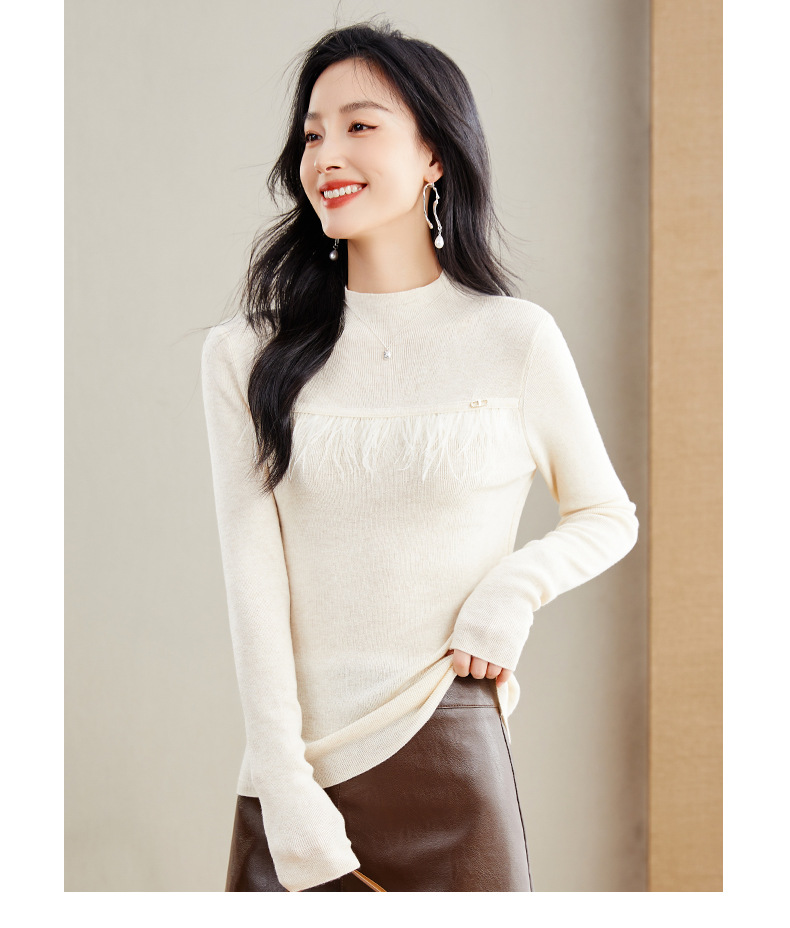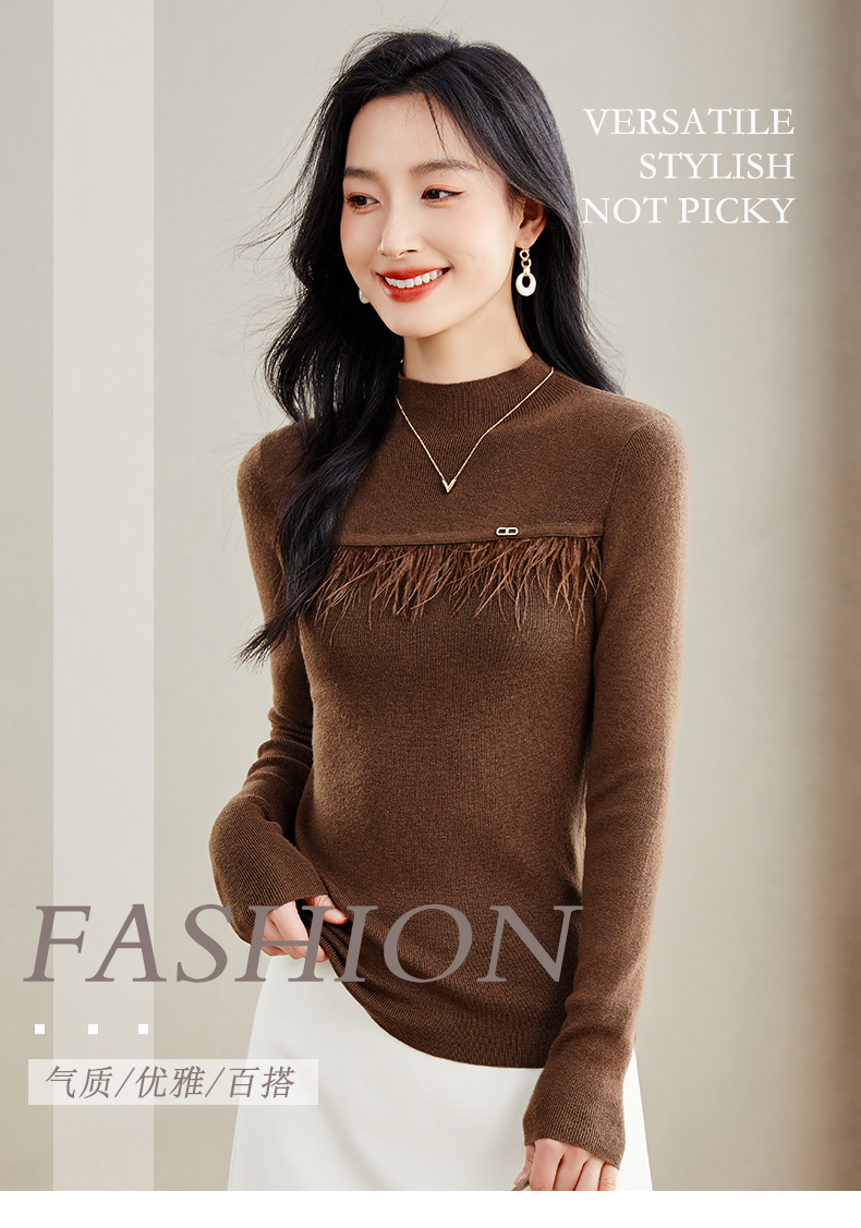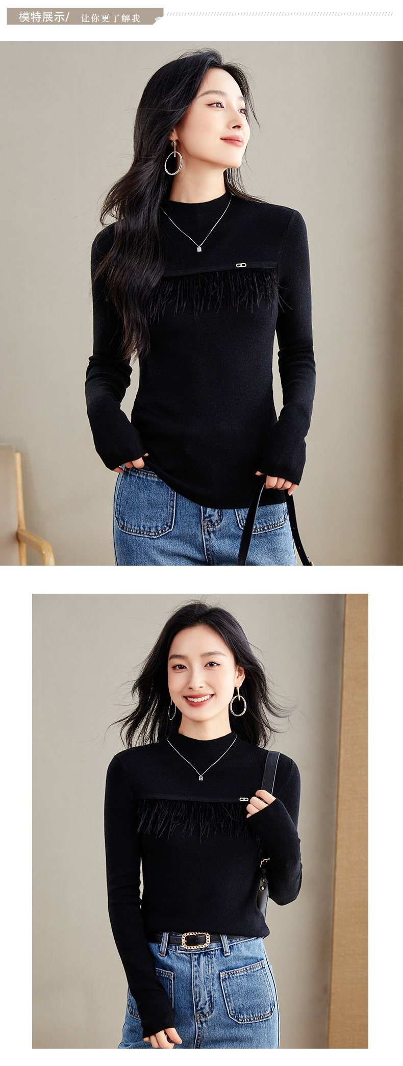 秋冬设计感上衣,新款洋气半高领修身气质内搭打底衫长袖t恤衫CC-J288