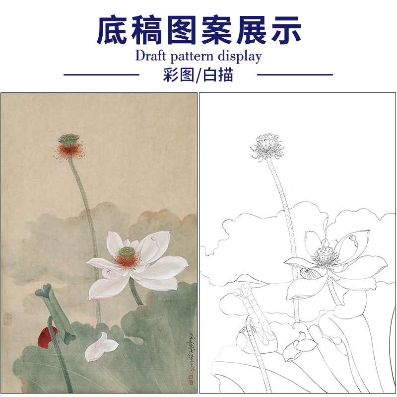 任重花鸟工笔画白描底稿《芙渠图》荷花临摹勾线高清打印稿RD34