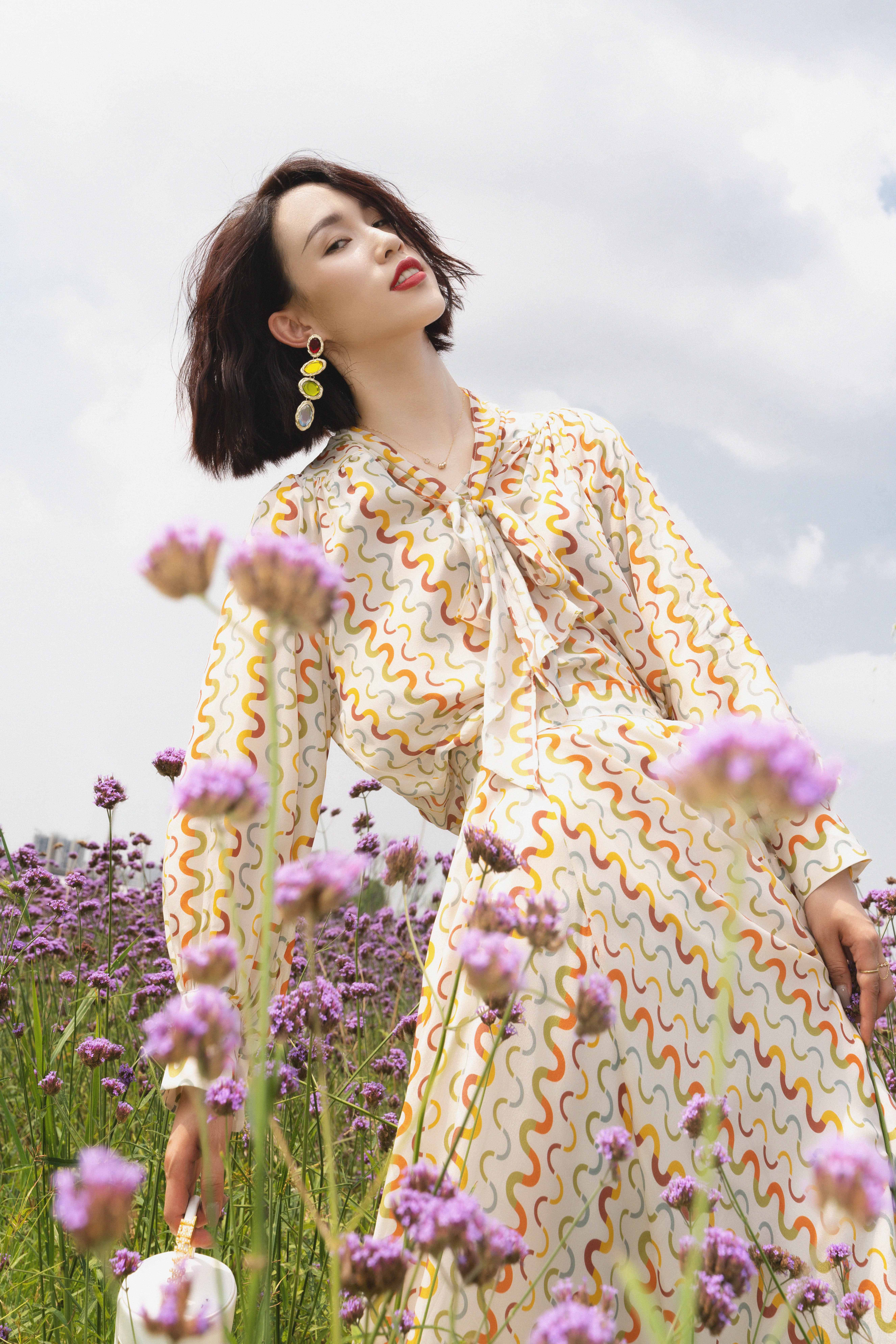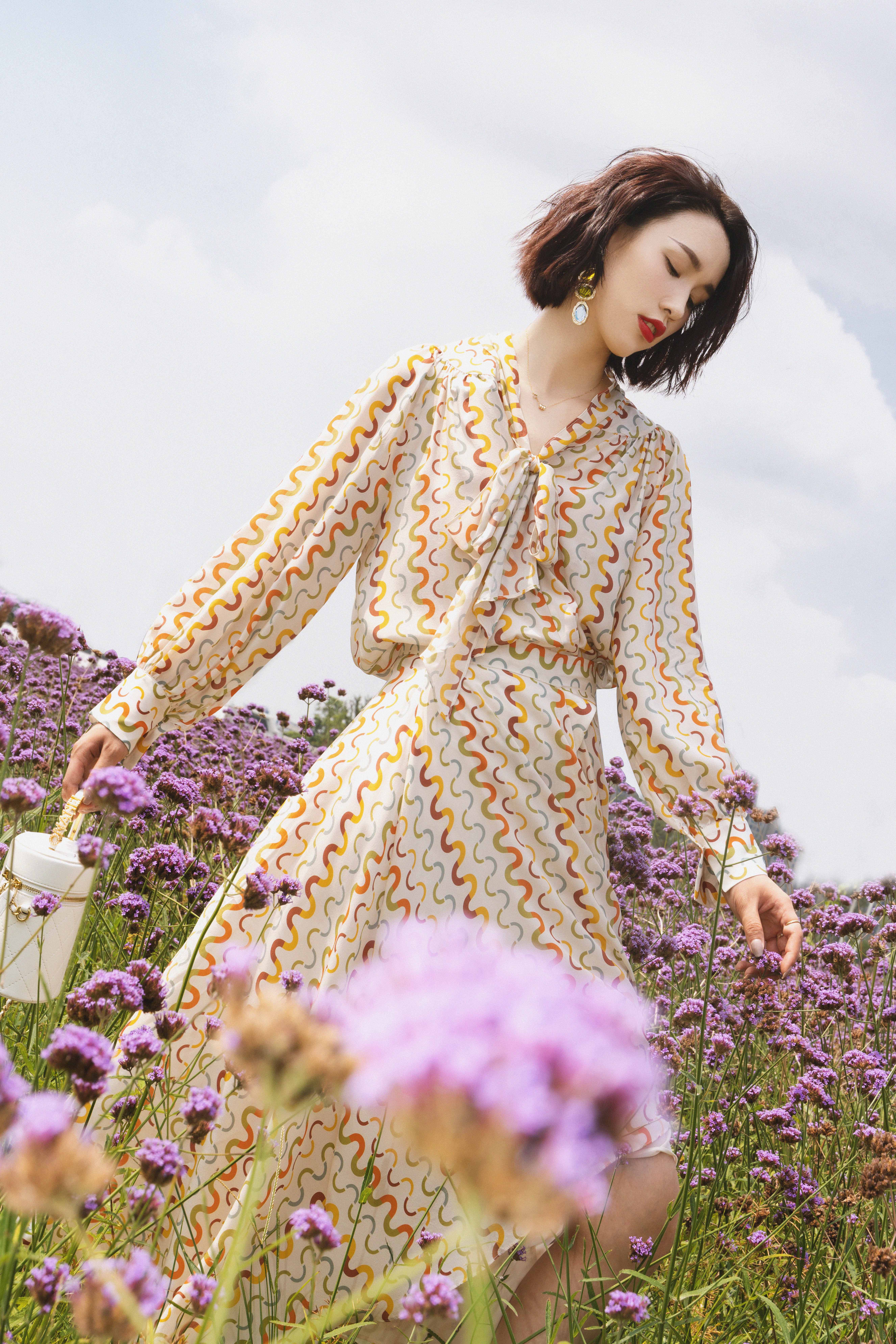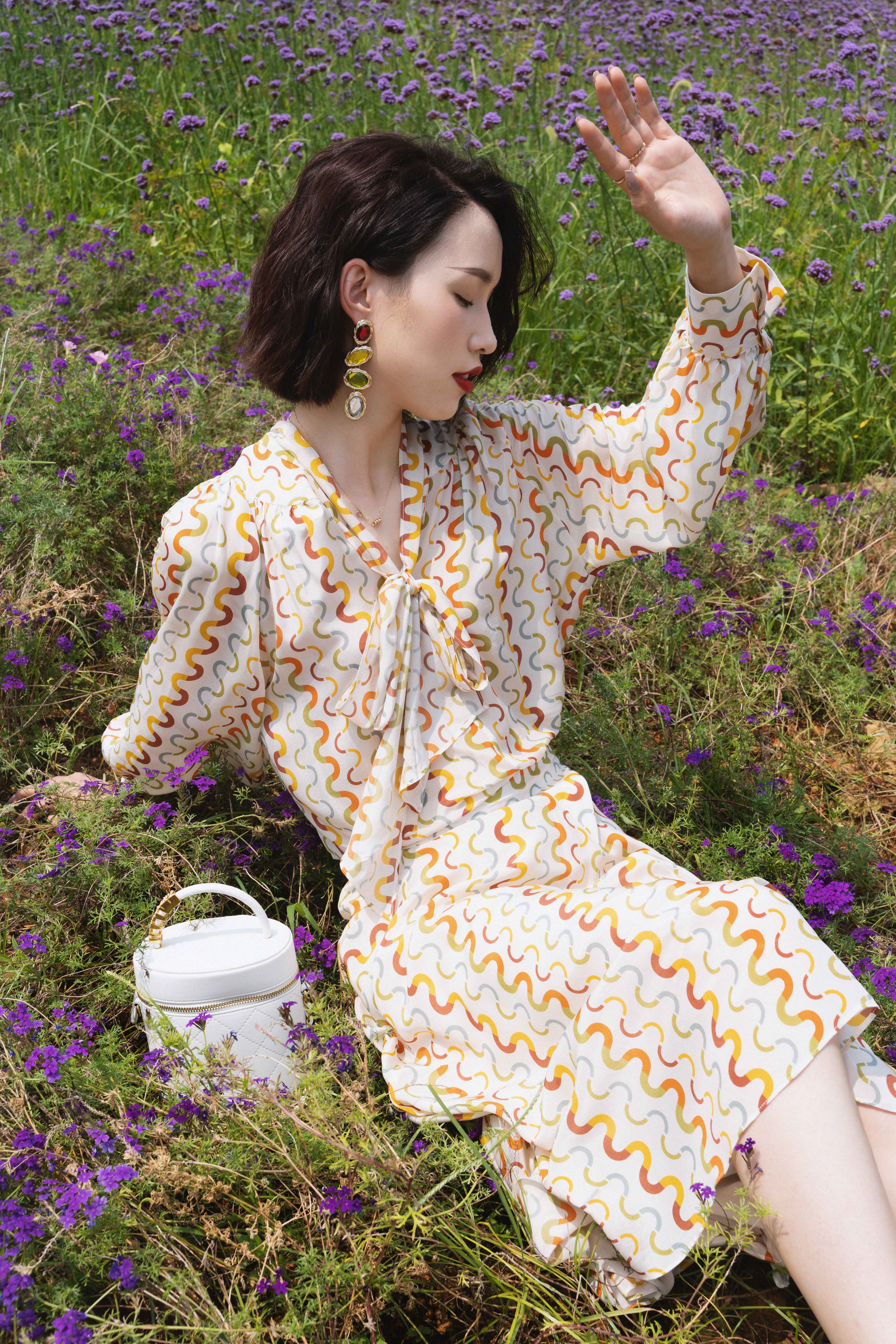 【波浪纹真丝衬衫】臣禾【100%真丝】长袖真丝飘带印花衬衣K212051004