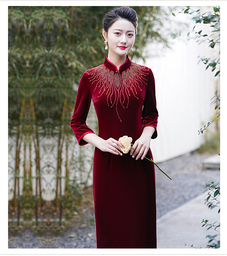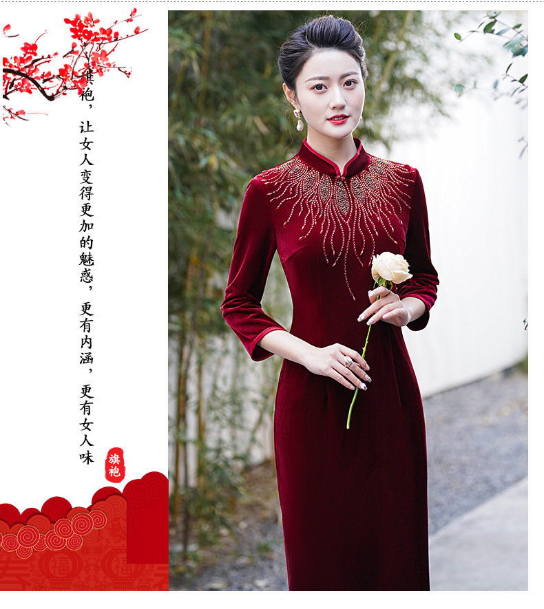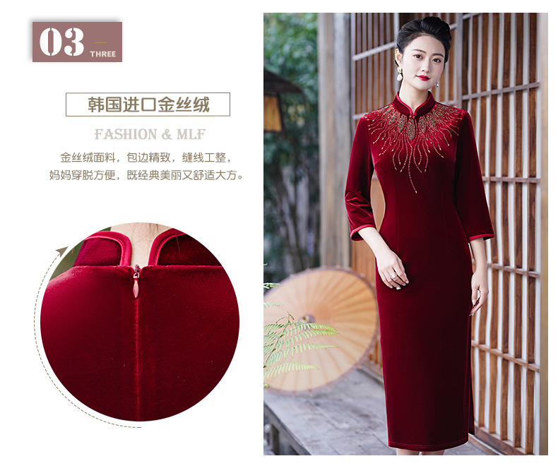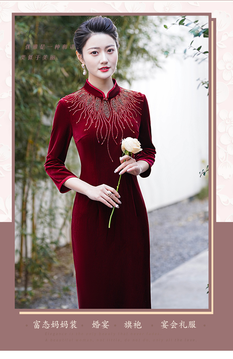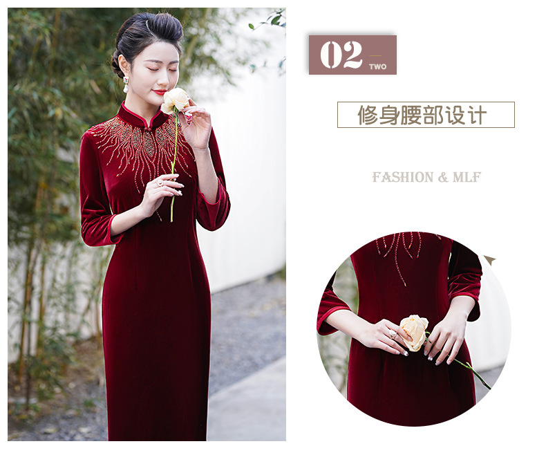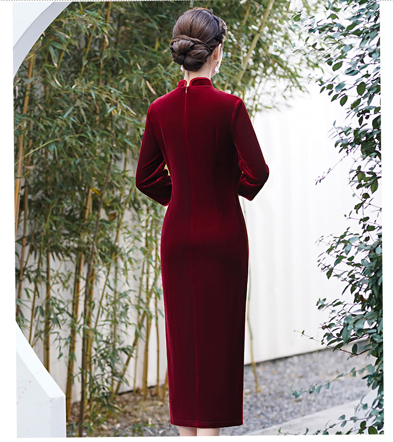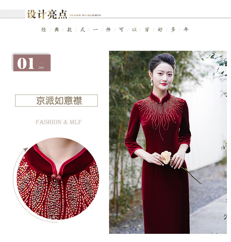 MLY秋冬琵琶襟旗袍金丝绒中长款天鹅绒金貂绒立领
