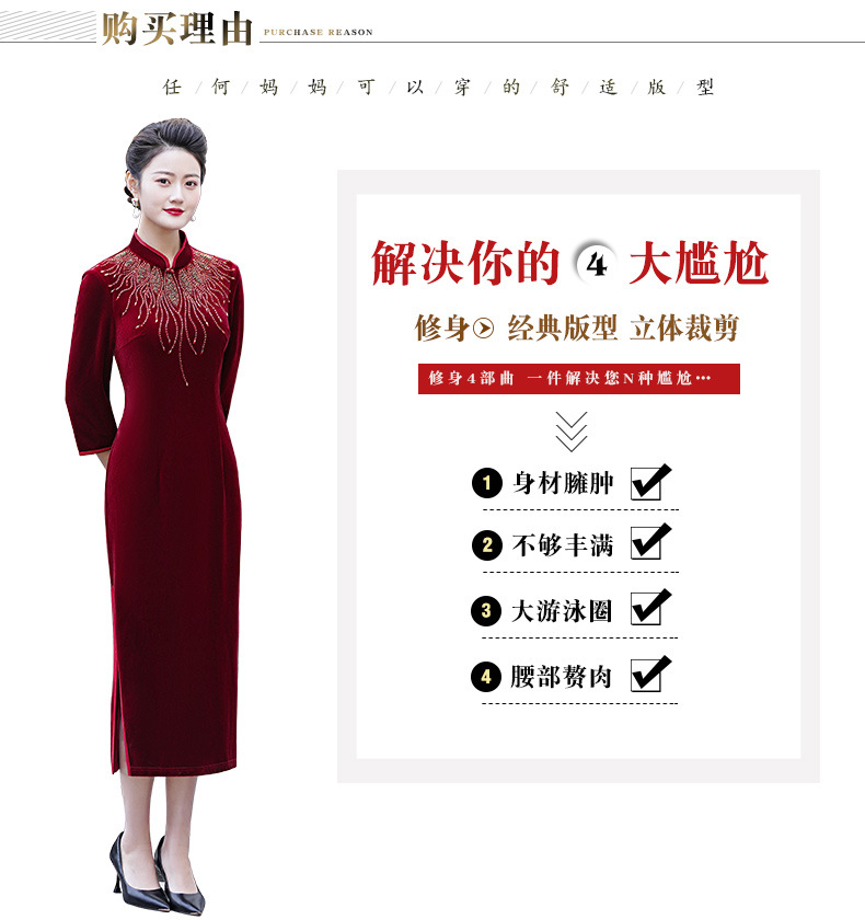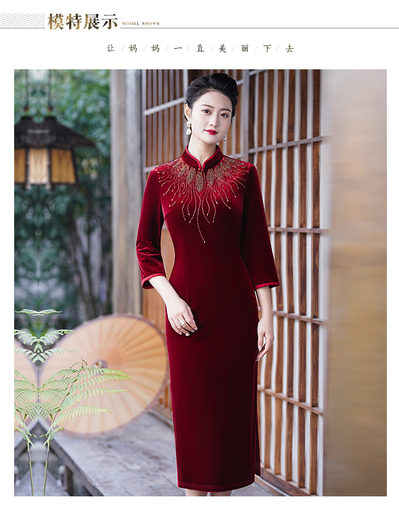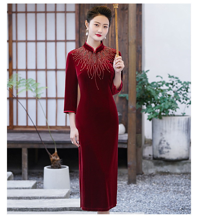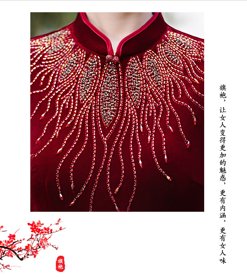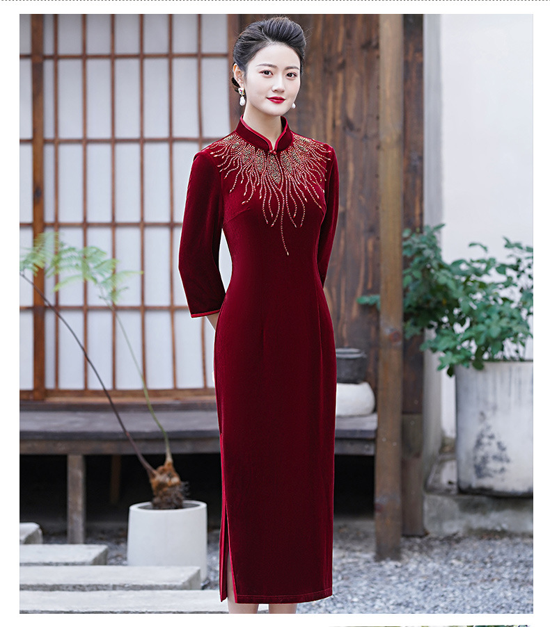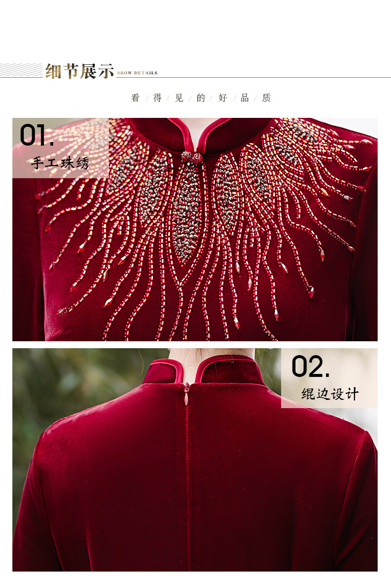 MLY秋冬琵琶襟旗袍金丝绒中长款天鹅绒金貂绒立领