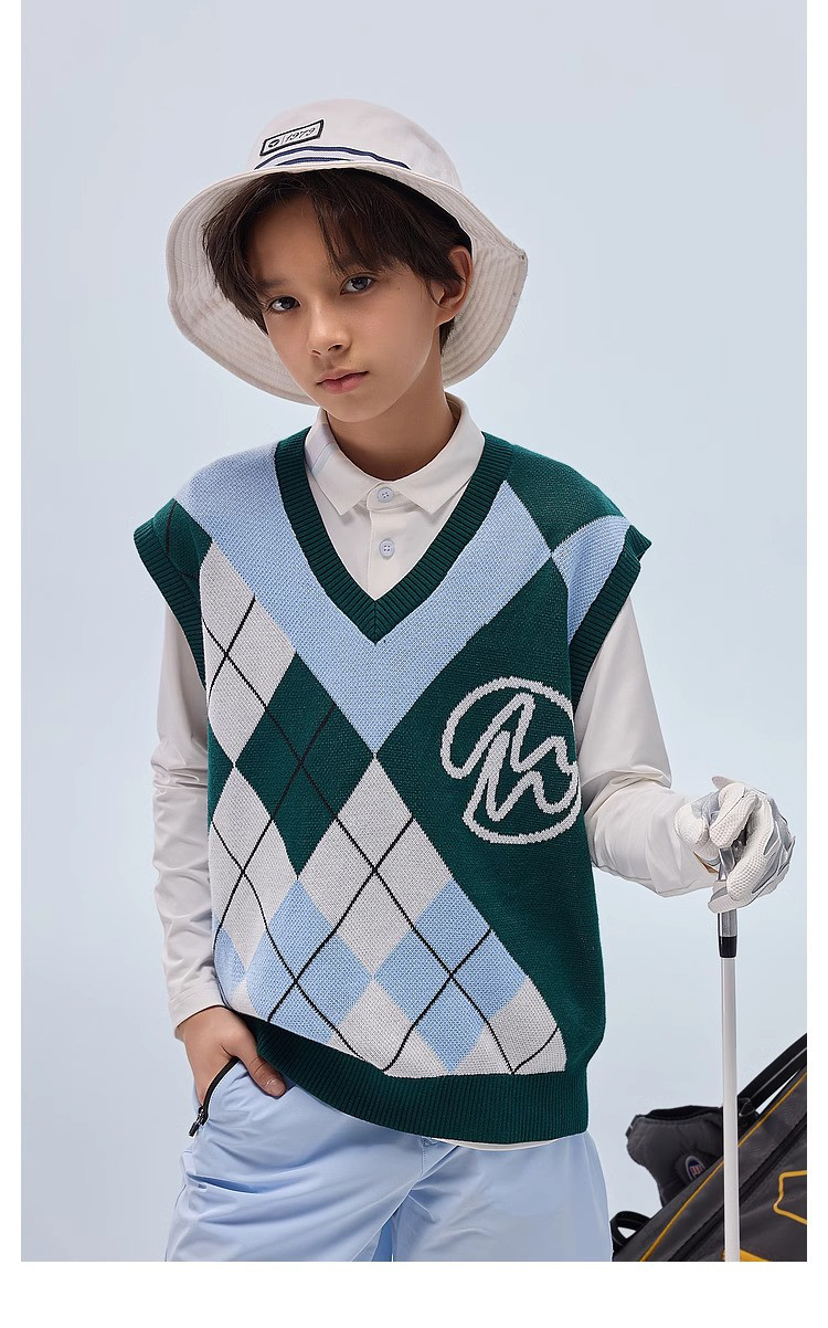 【MQD】【高尔夫】童装男女童毛织运动马甲秋新款儿童保暖舒适背心