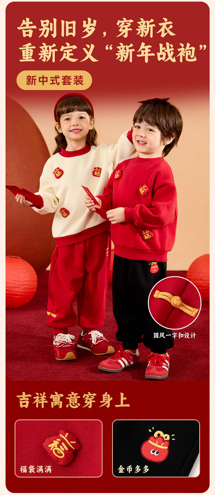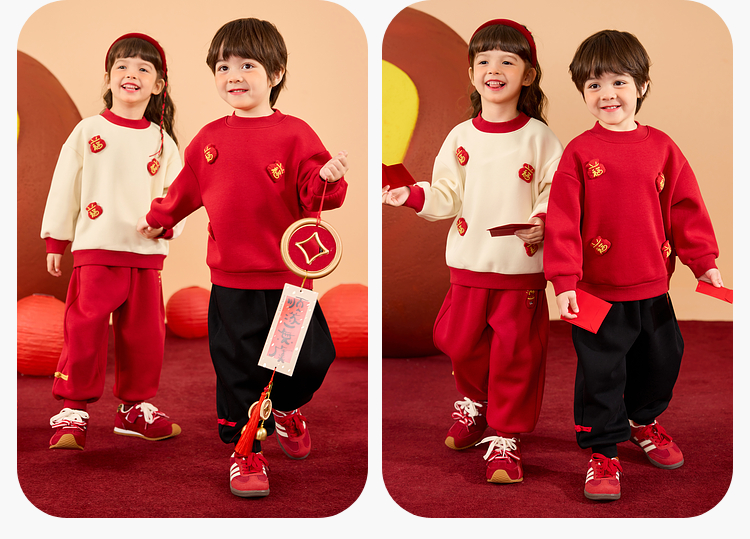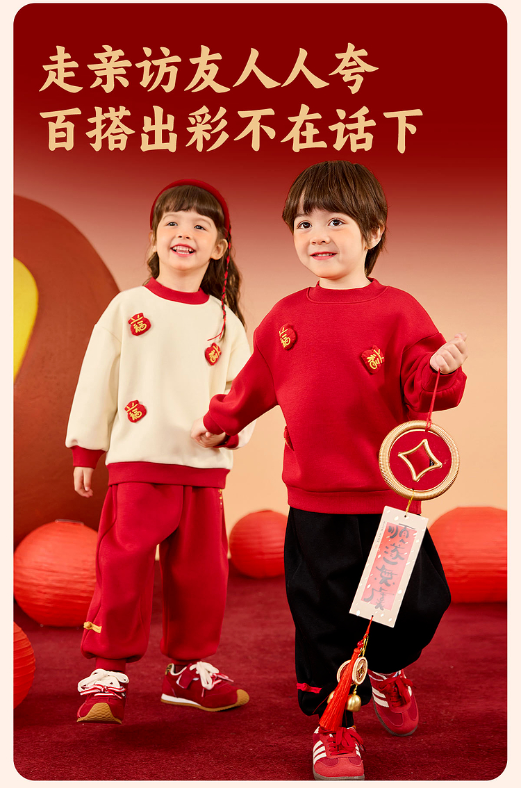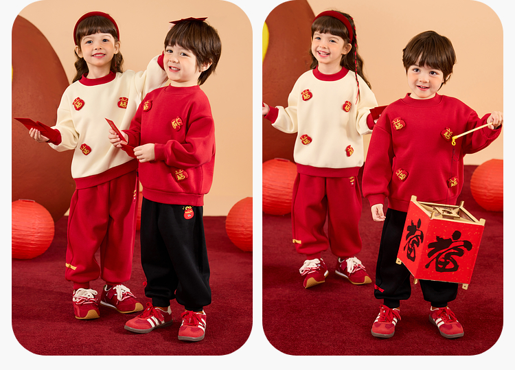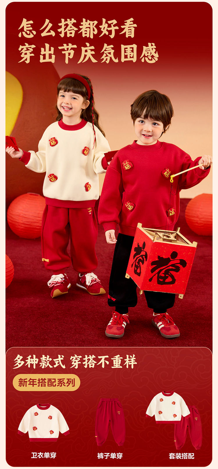 嘟嘟家儿童拜年服宝宝冬季过年套装男童女童喜庆衣服婴儿新年童装
