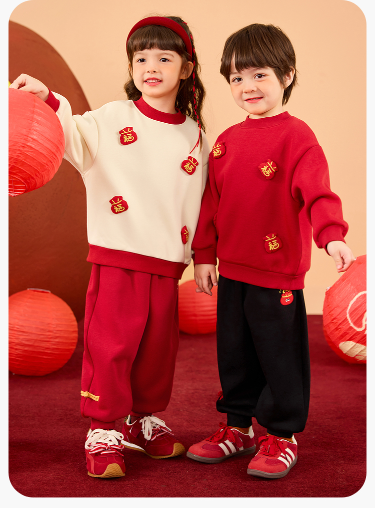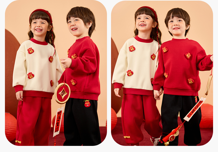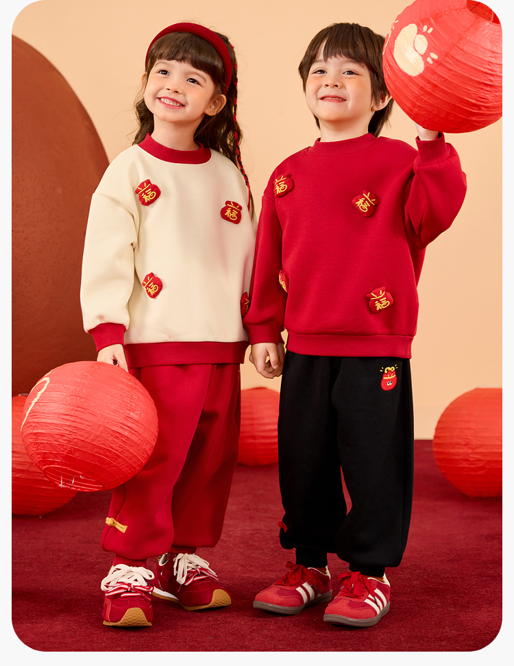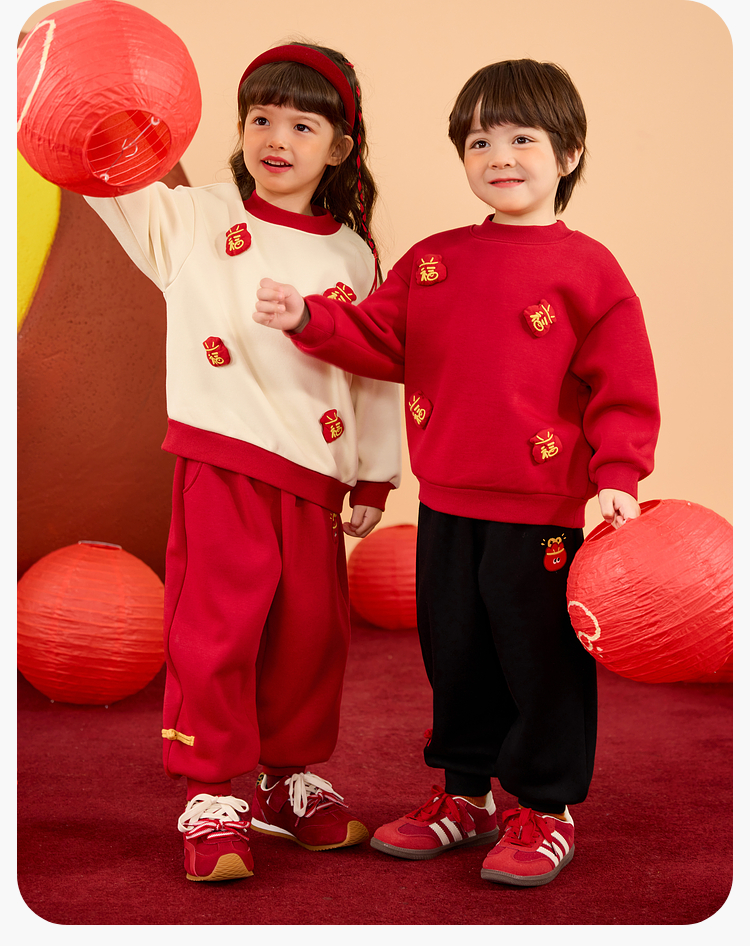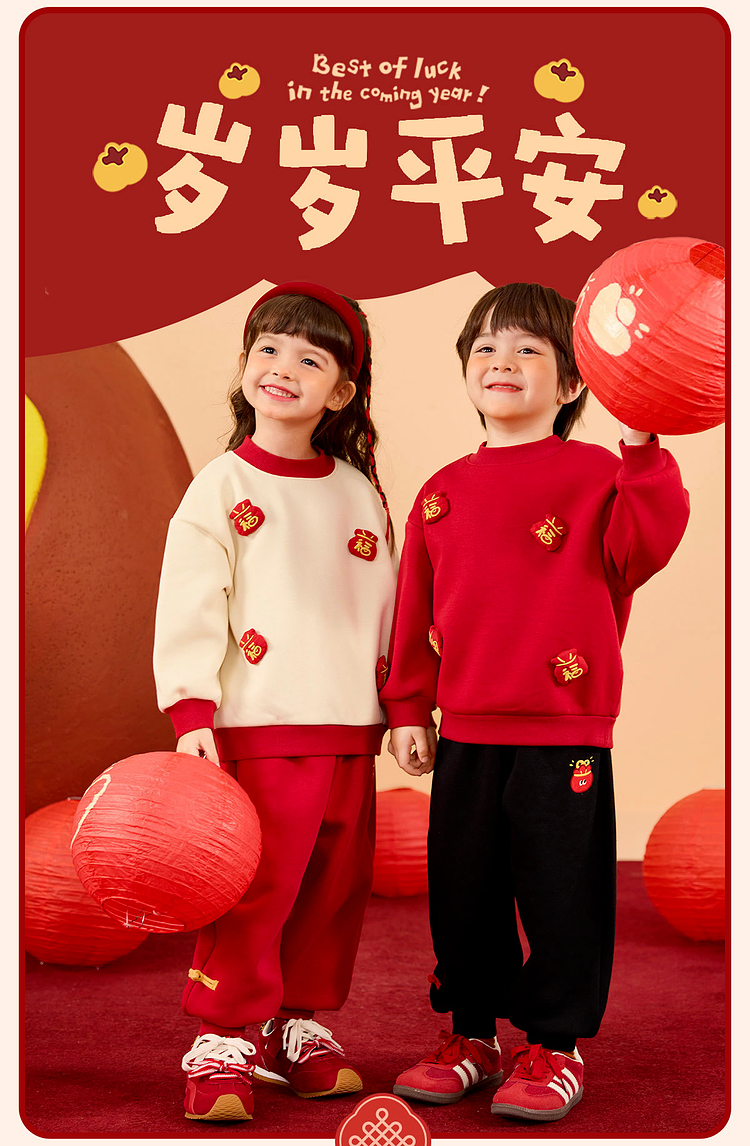 嘟嘟家儿童拜年服宝宝冬季过年套装男童女童喜庆衣服婴儿新年童装