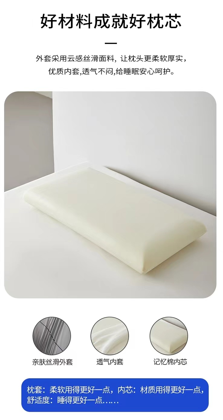 这款深睡枕的慢回弹包裹能给脖子减轻不少负担~