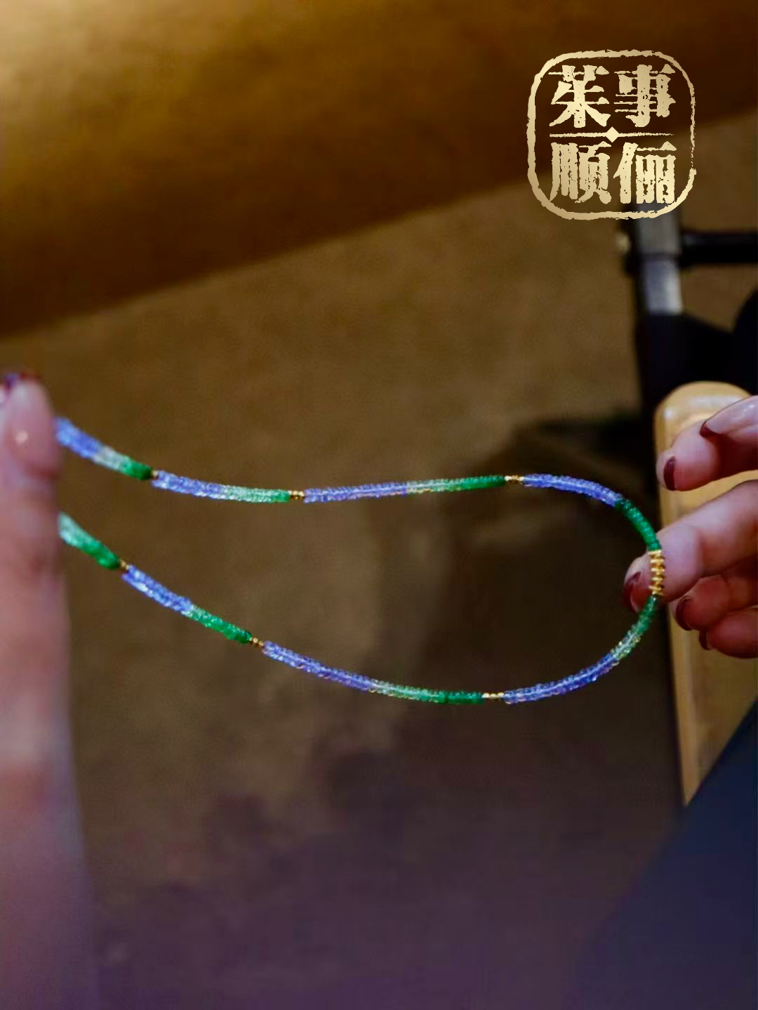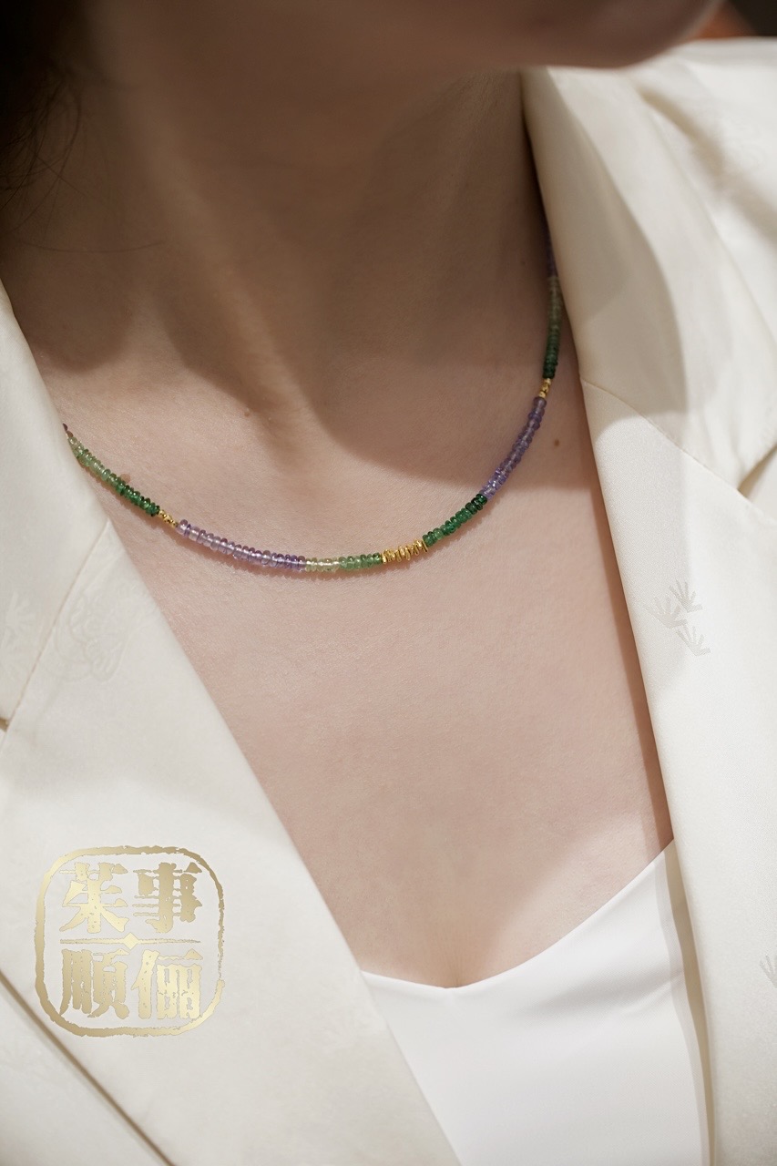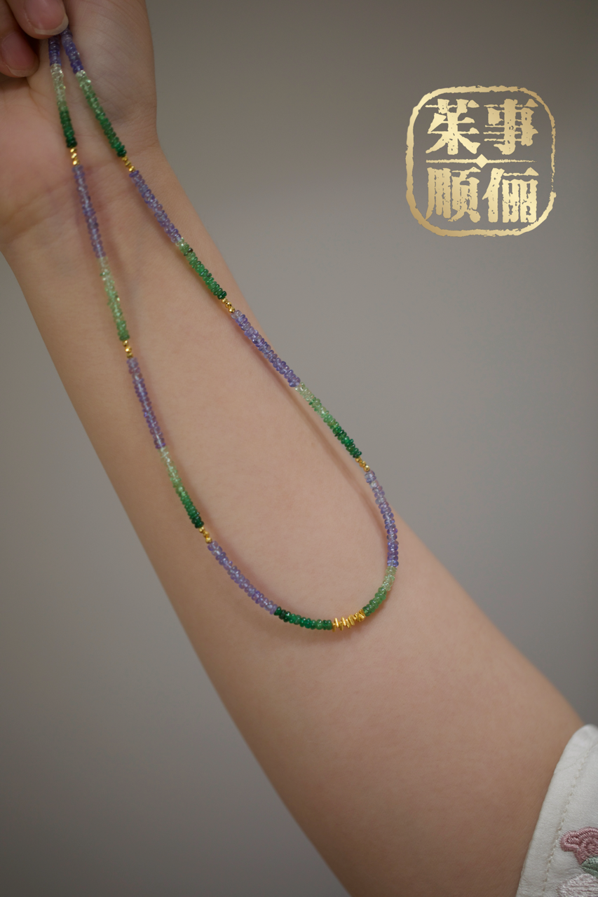 【茱事顺俪】18K黄金沙弗莱坦桑石项链
