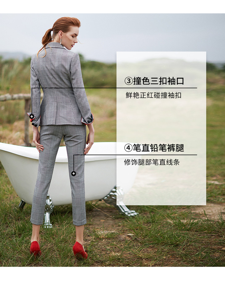IWY/灰色小西装西服套装女条纹格子韩版休闲职业装时尚CP9354