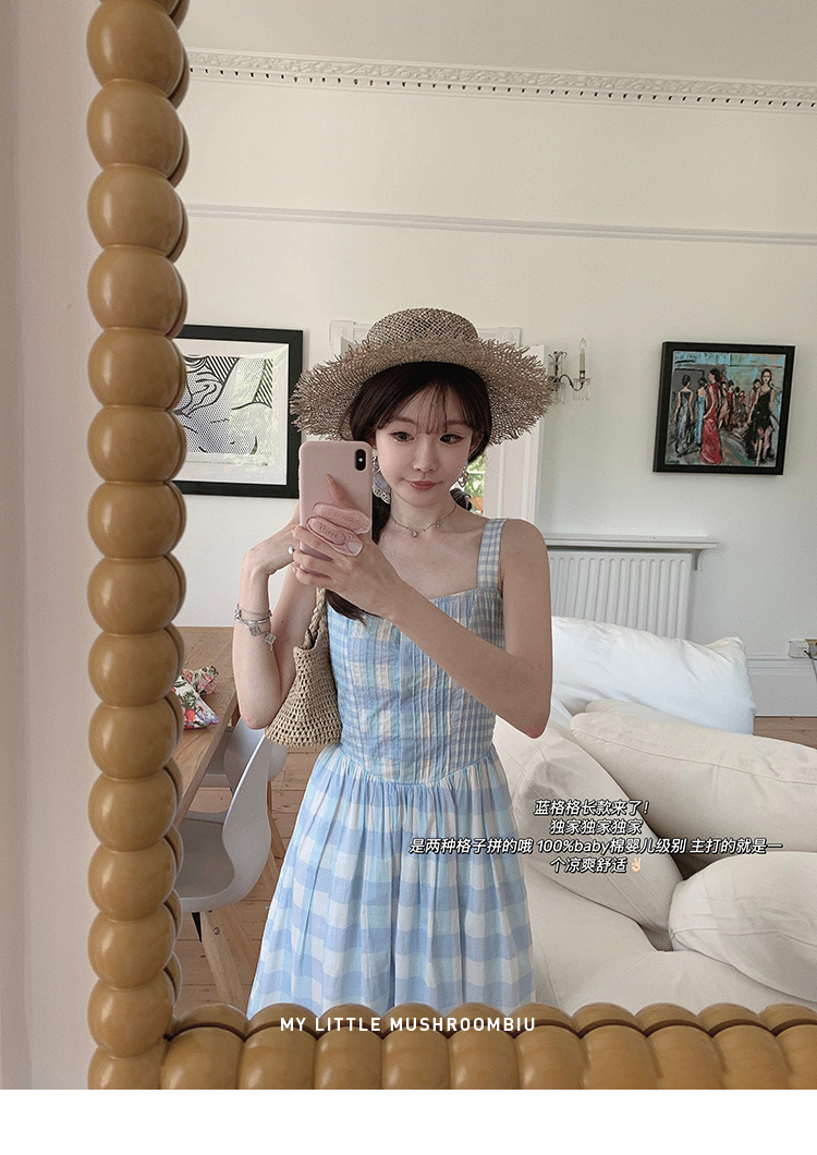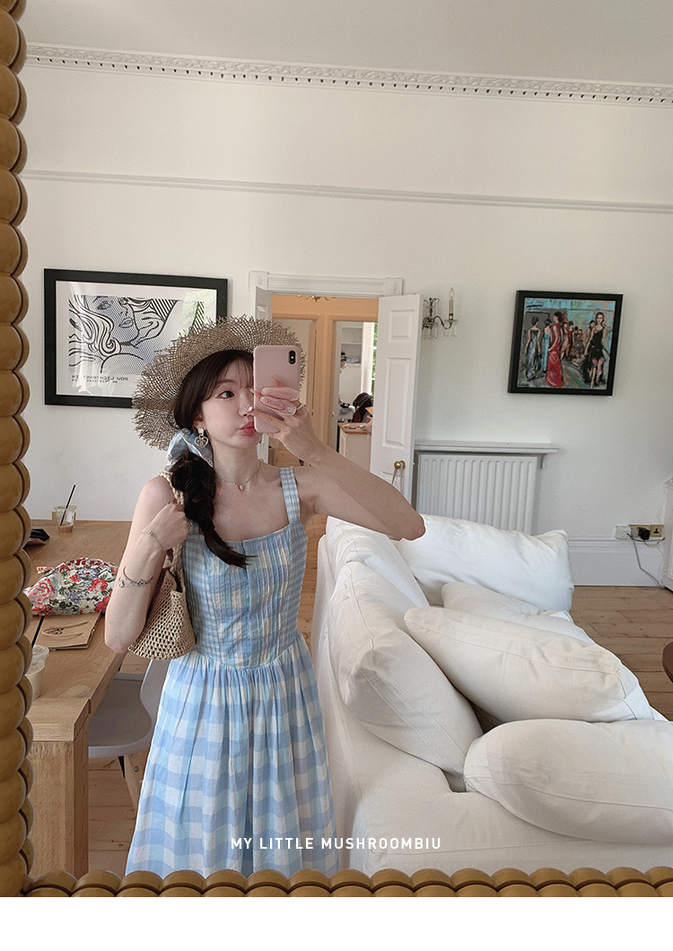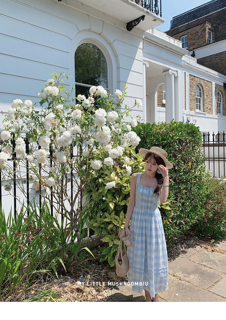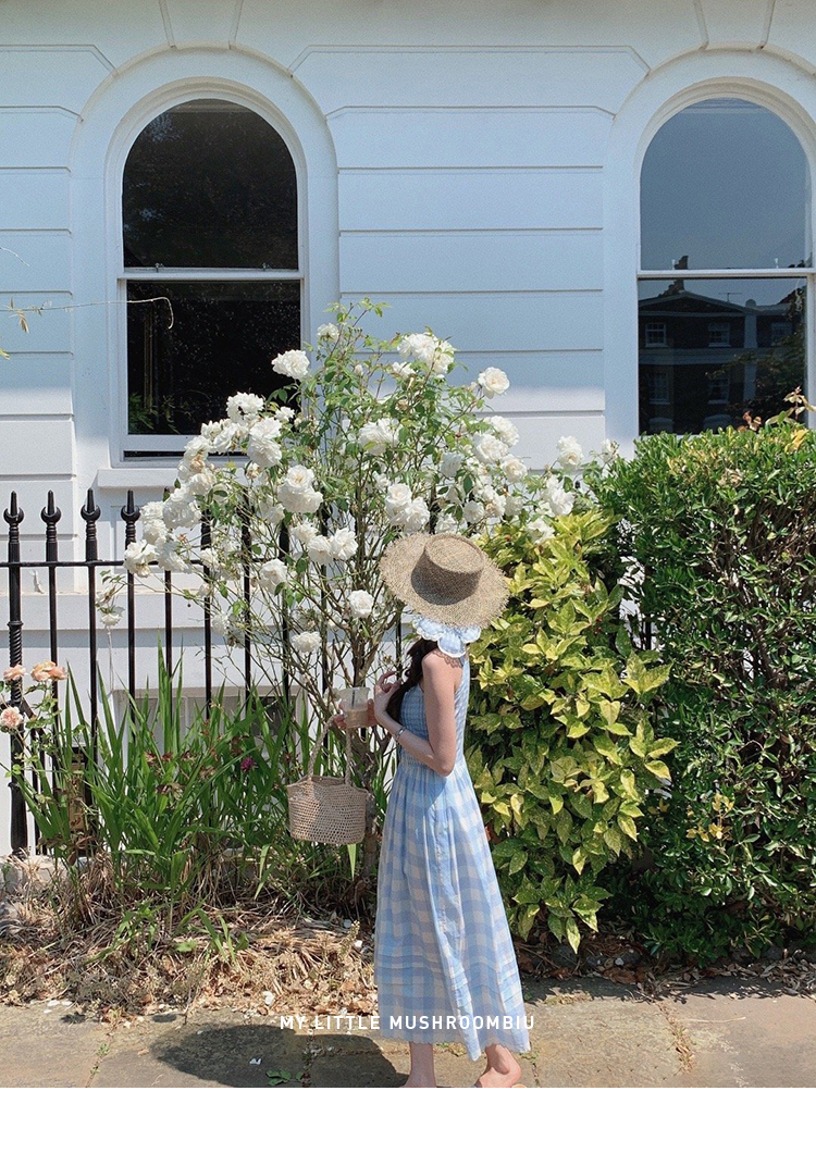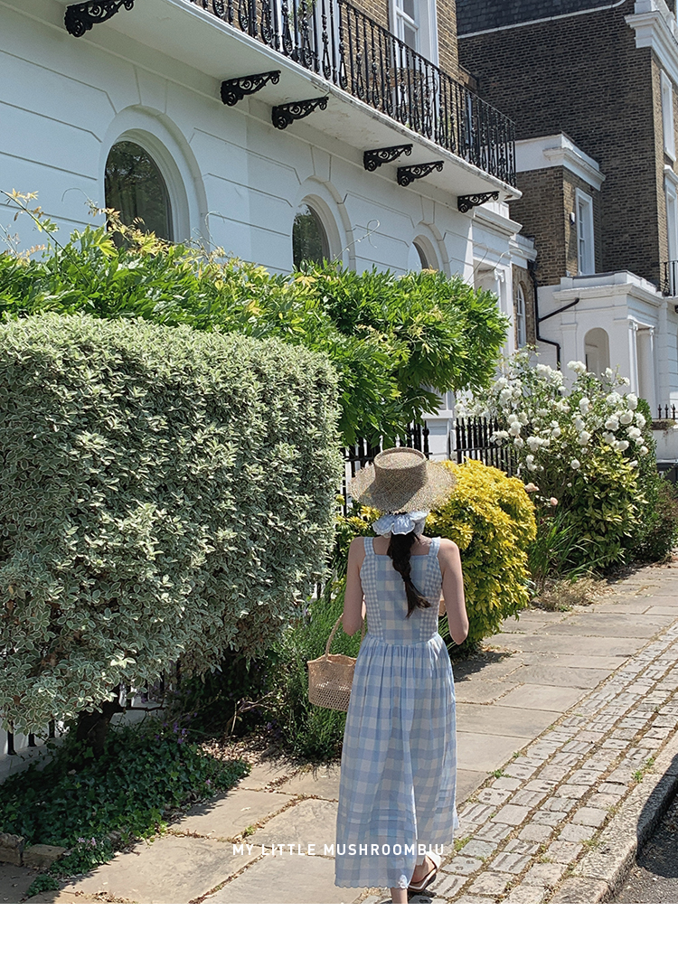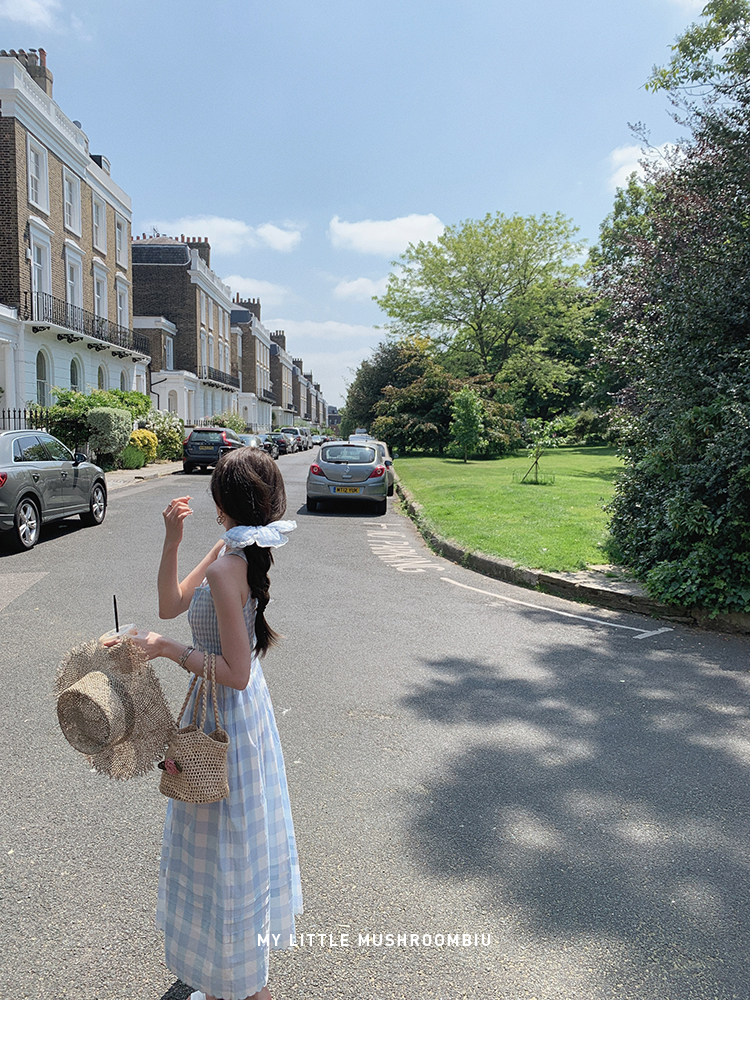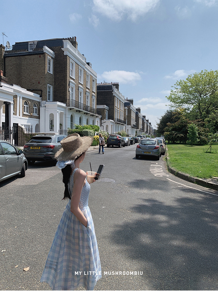 金蘑菇菇 伦敦花市 我爱蓝格格 / 小清新收腰格子背心裙