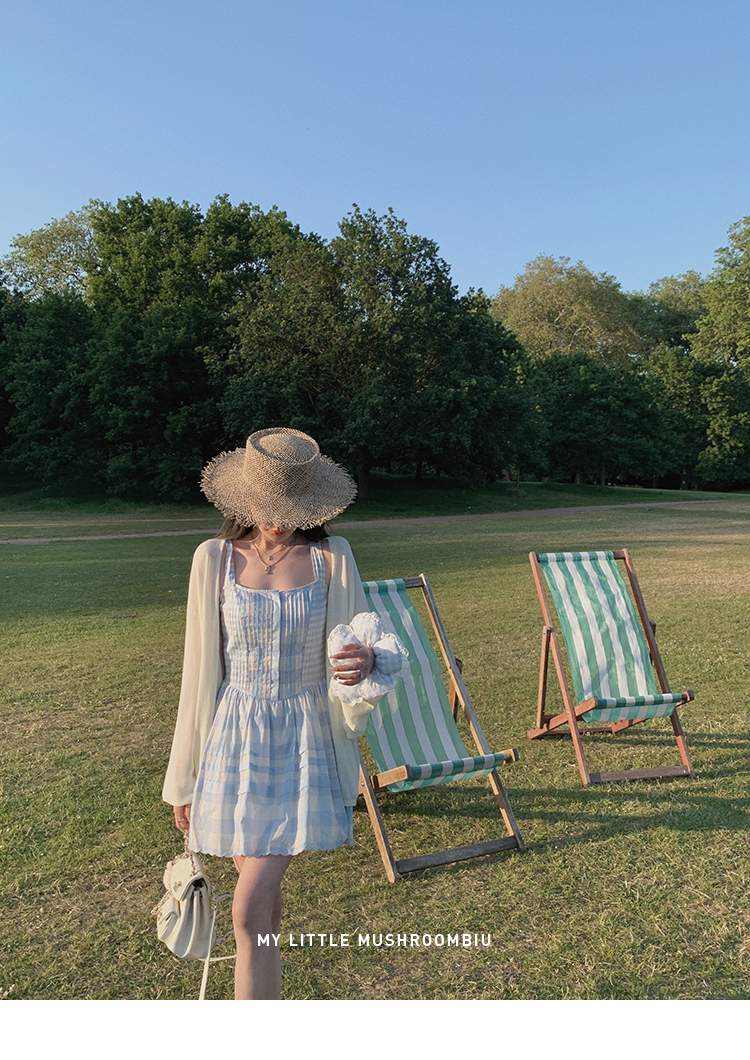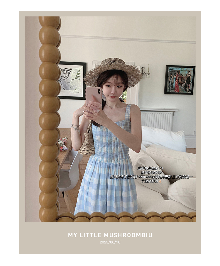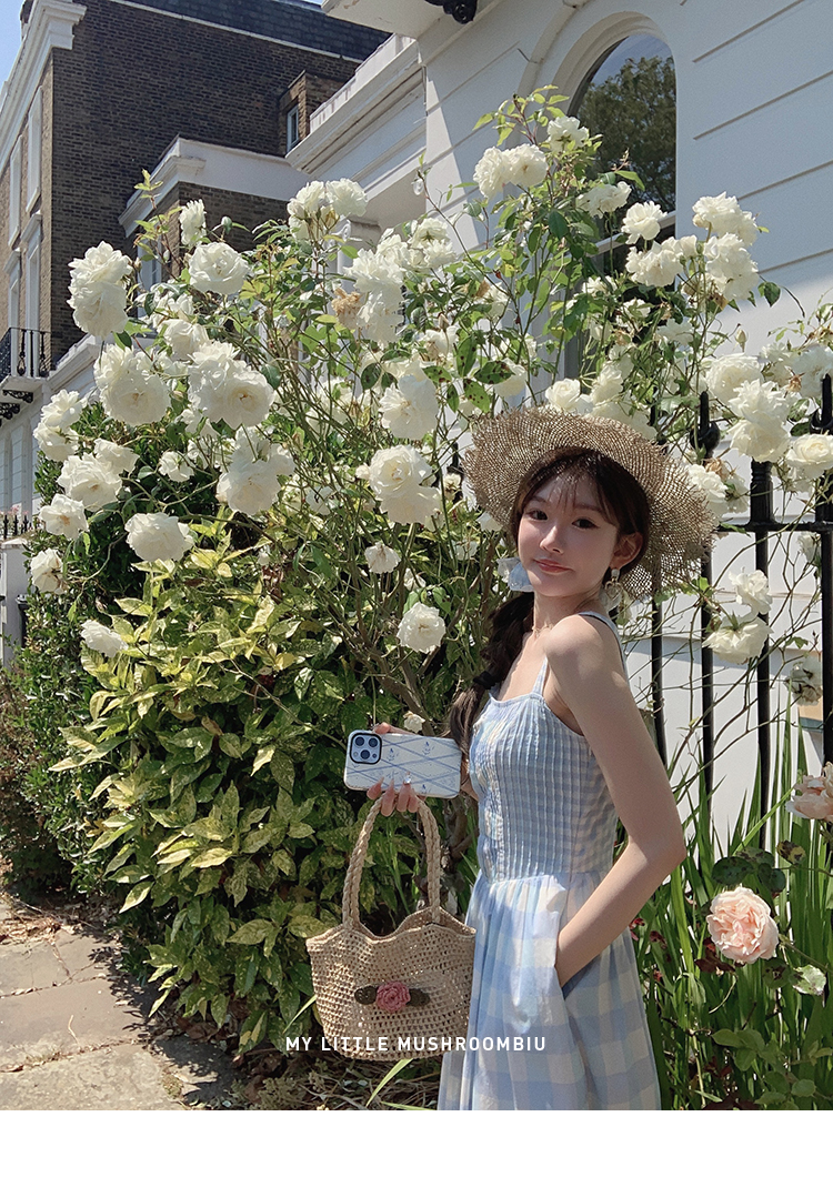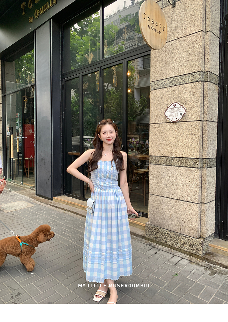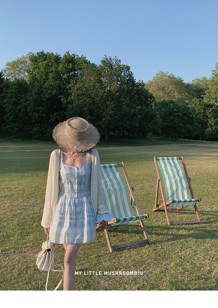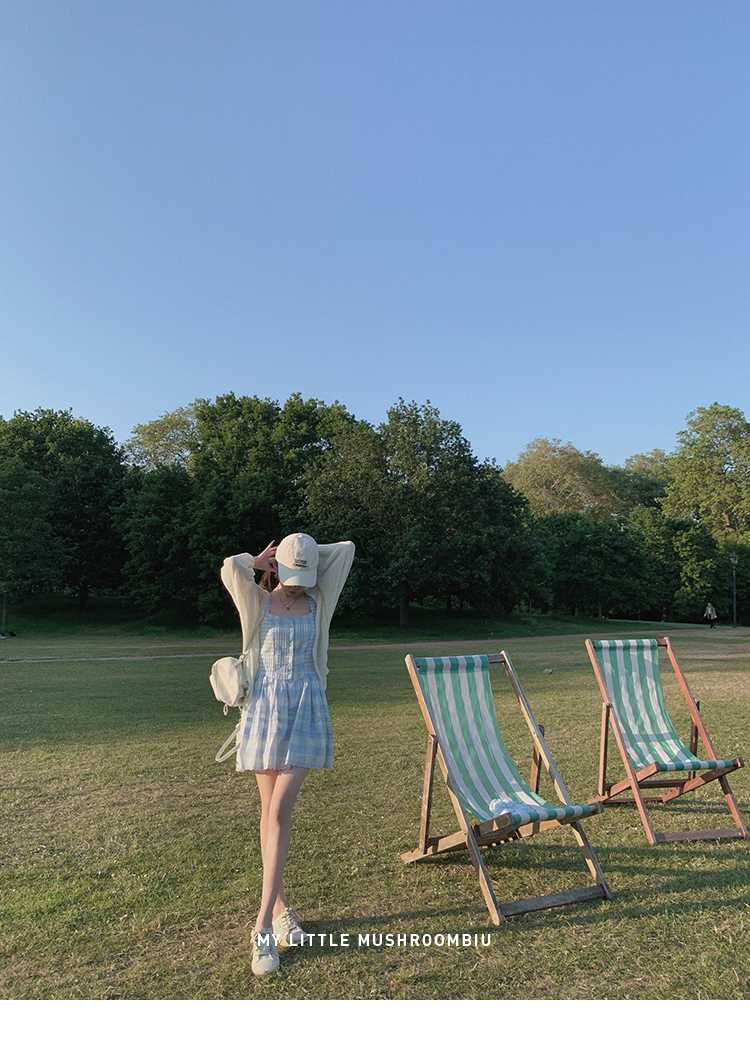 金蘑菇菇 伦敦花市 我爱蓝格格 / 小清新收腰格子背心裙