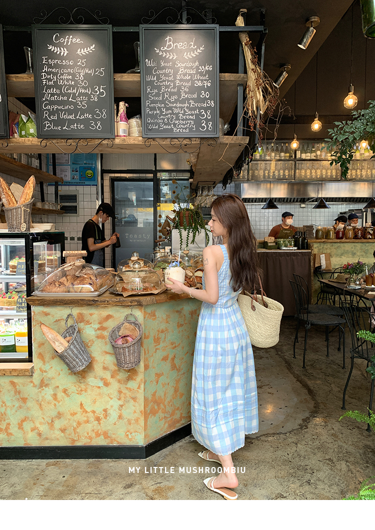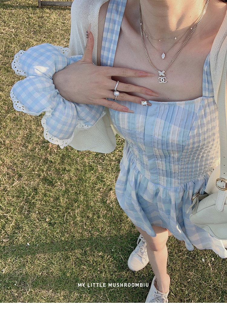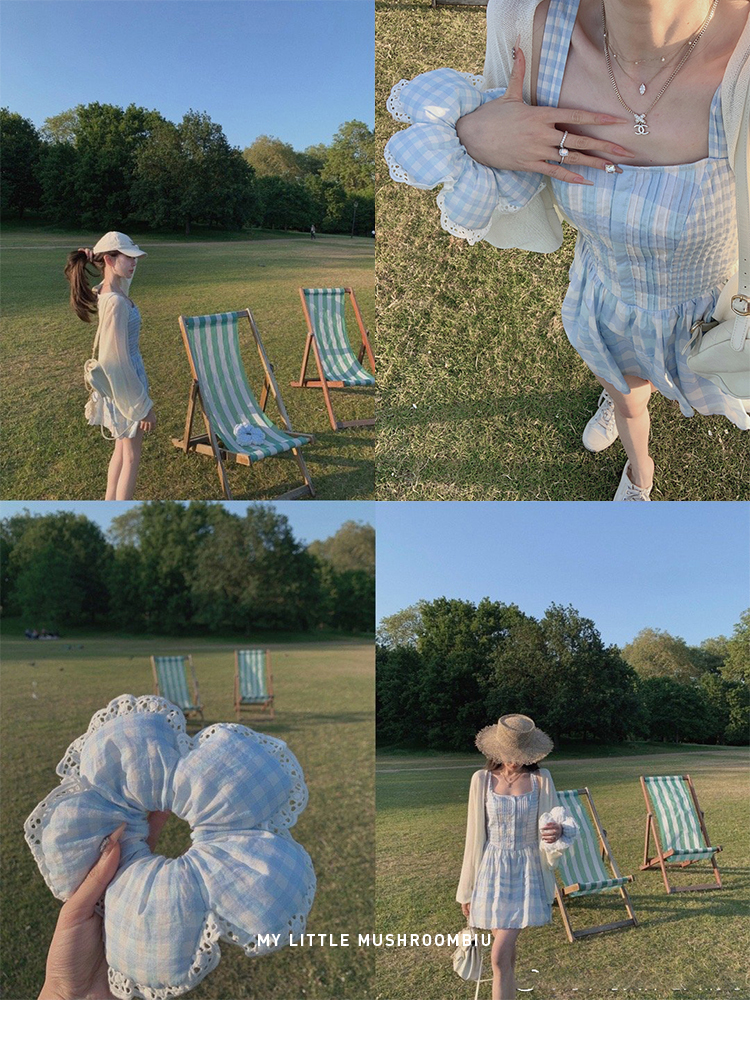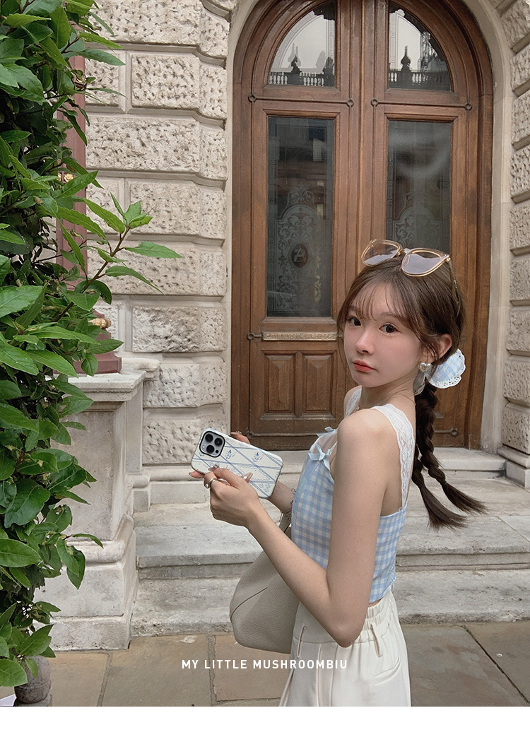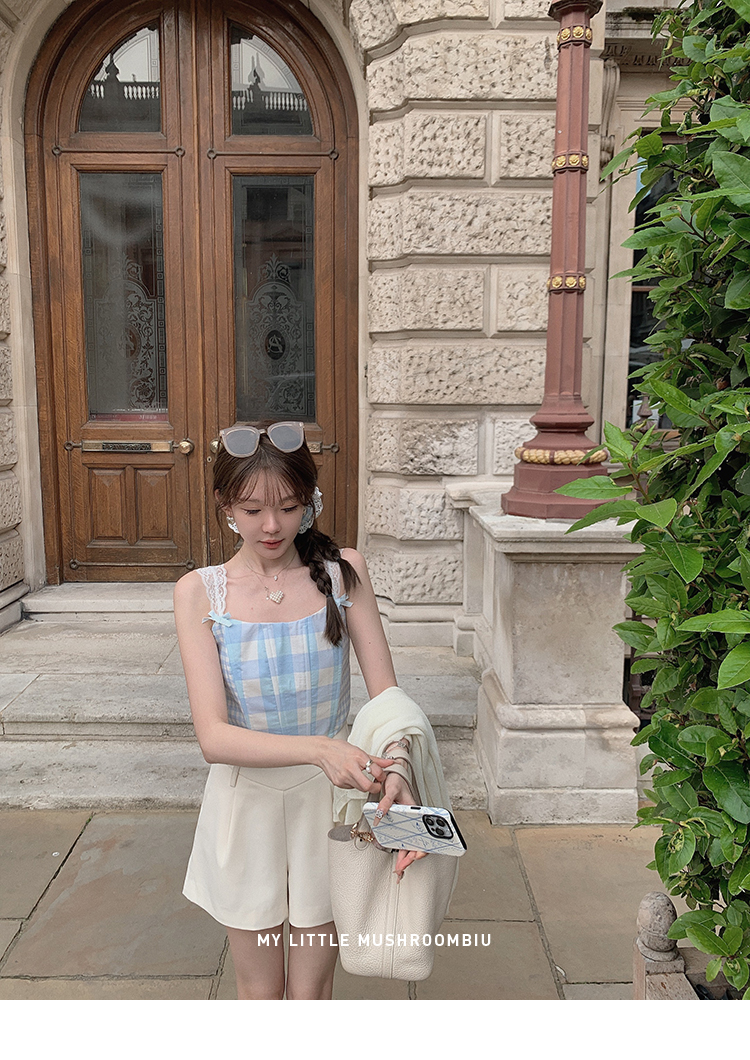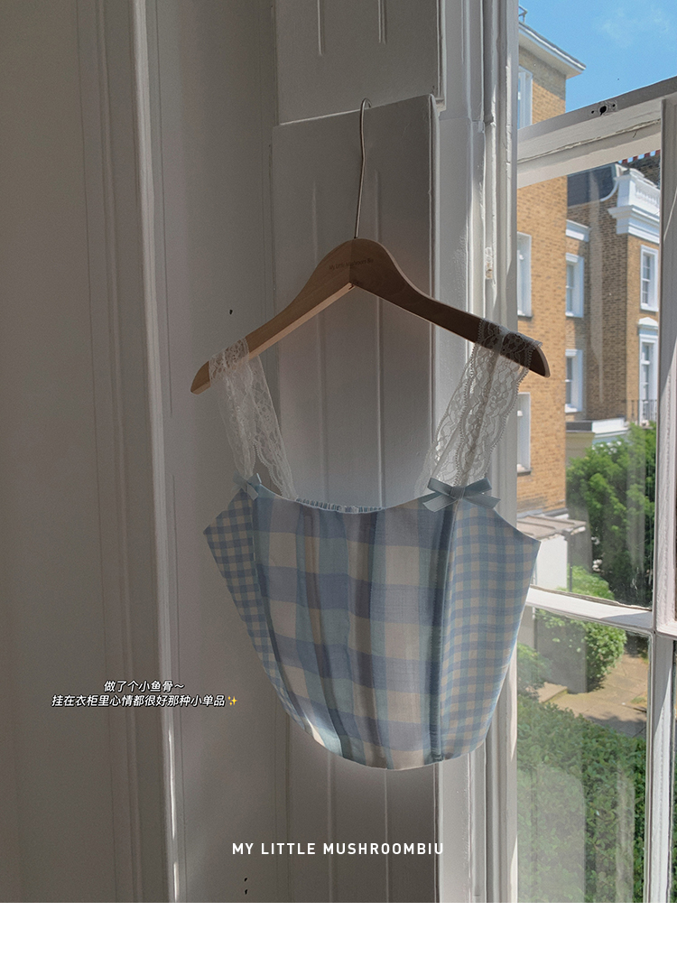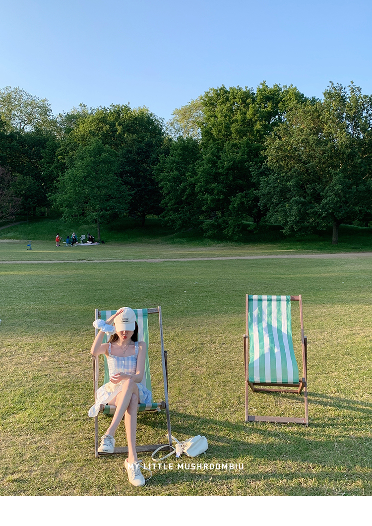 金蘑菇菇 伦敦花市 我爱蓝格格 / 小清新收腰格子背心裙