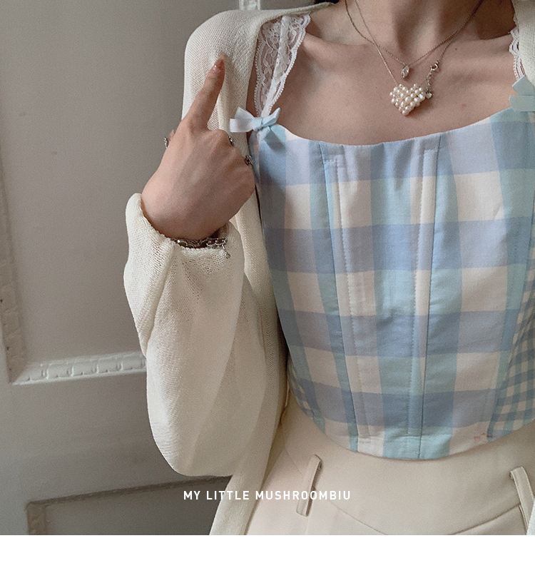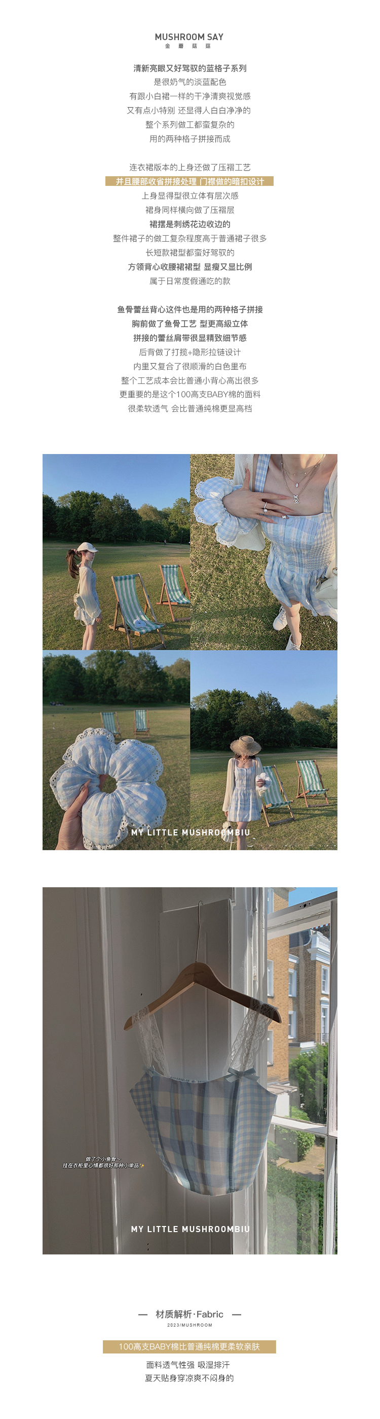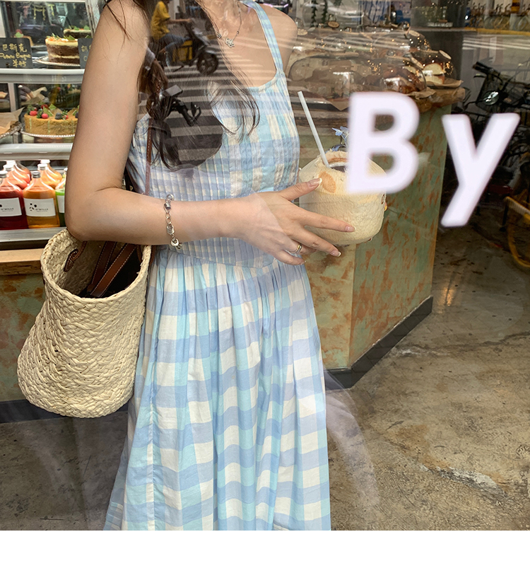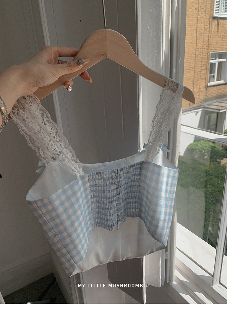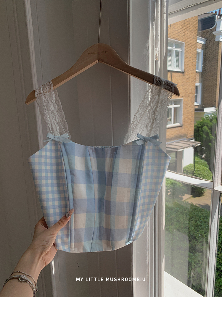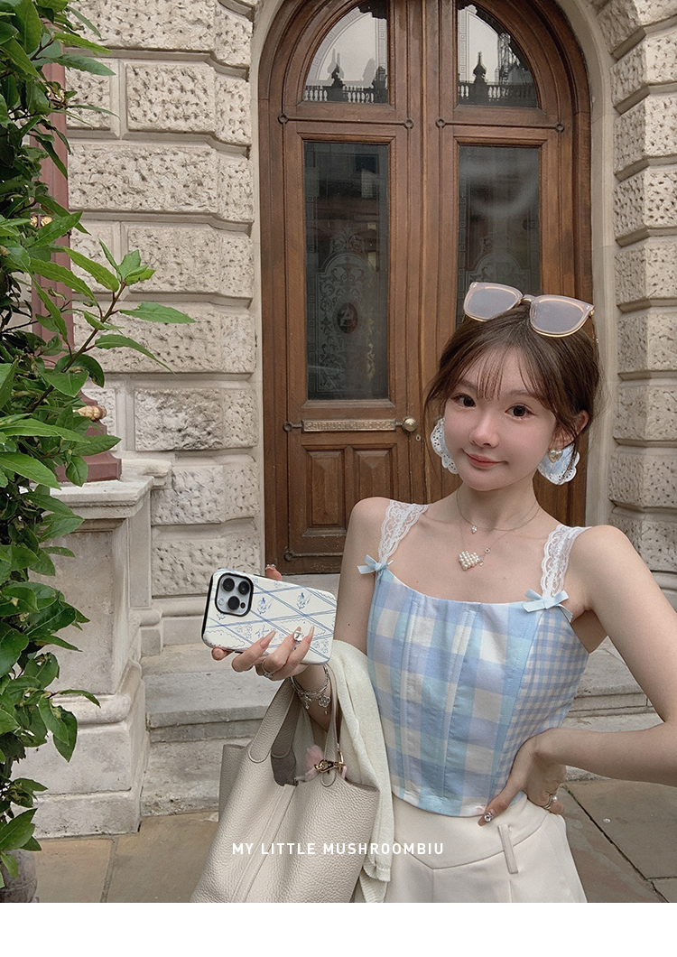 金蘑菇菇 伦敦花市 我爱蓝格格 / 小清新收腰格子背心裙