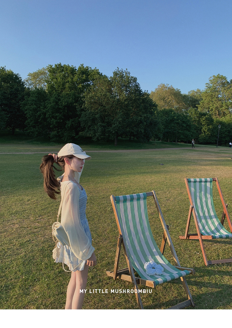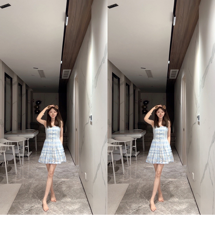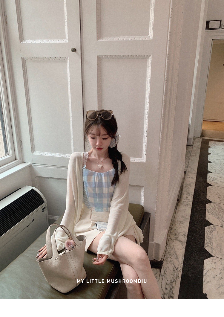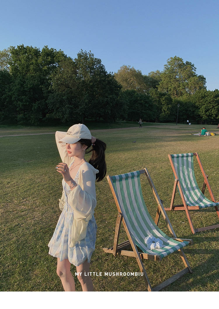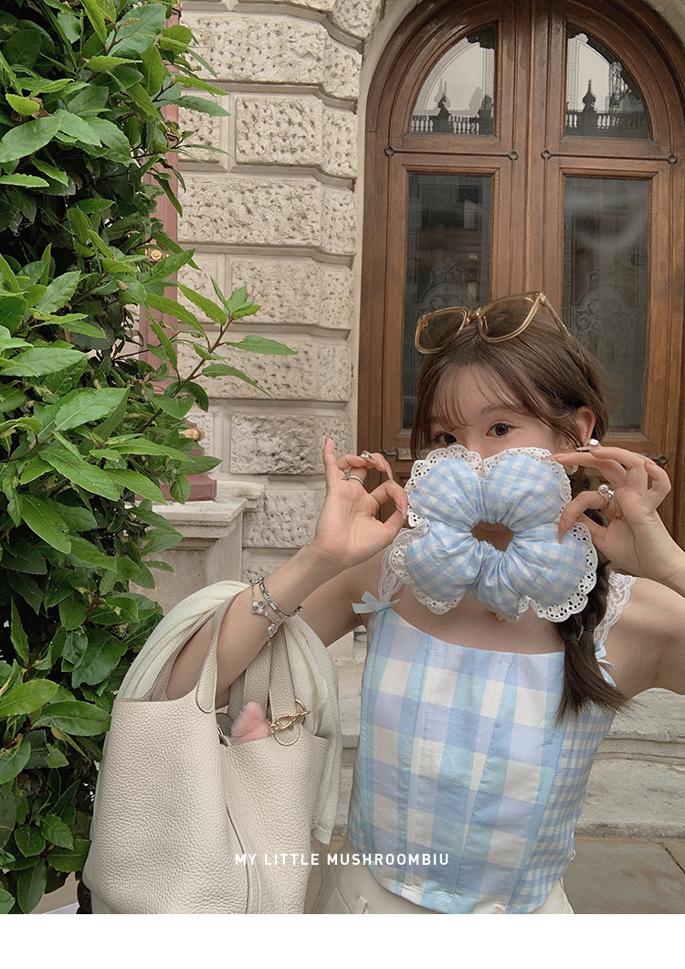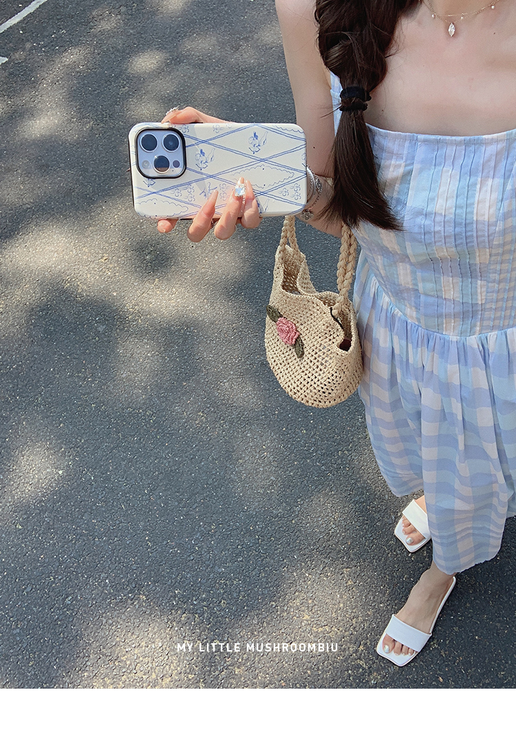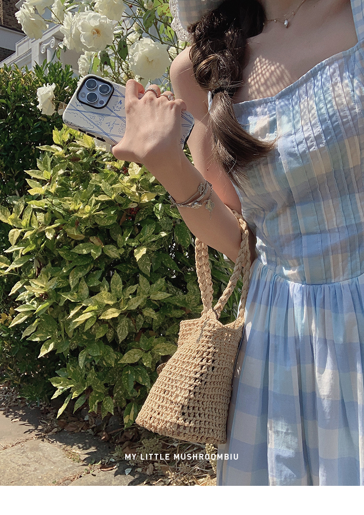 金蘑菇菇 伦敦花市 我爱蓝格格 / 小清新收腰格子背心裙