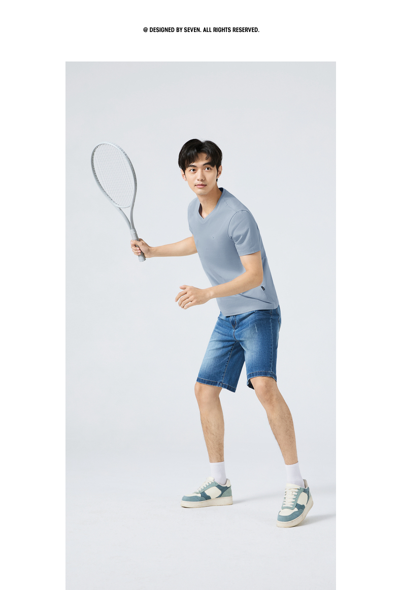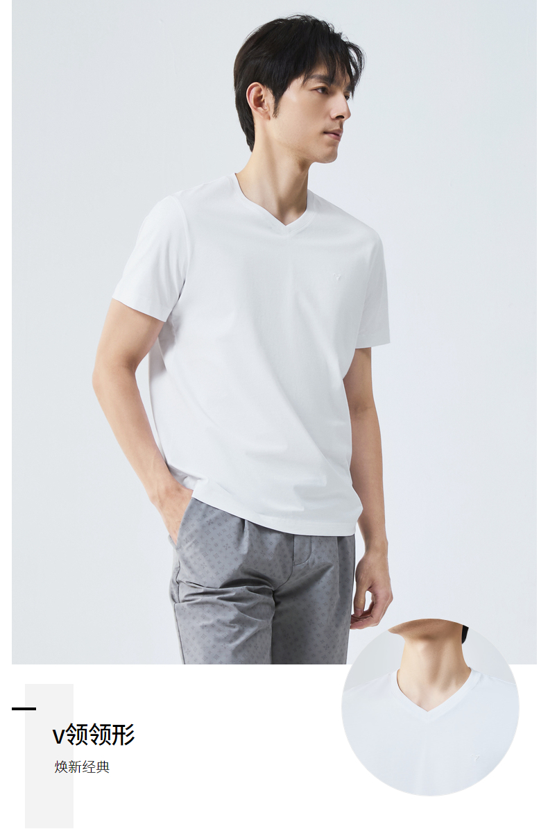 【速干】柒牌纯棉新疆棉短袖T恤男2025夏季新品时尚休闲V领体恤衫128T72810