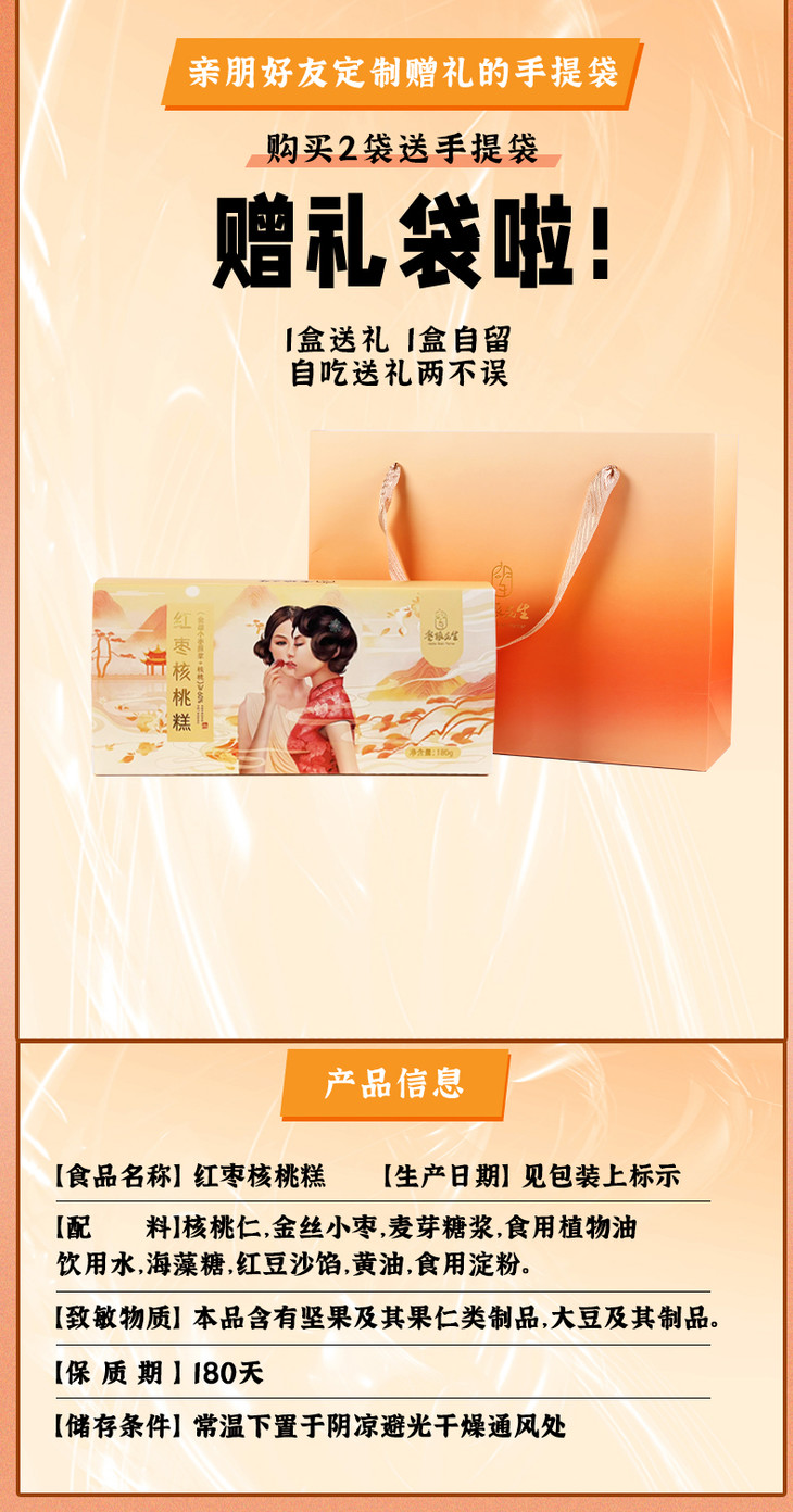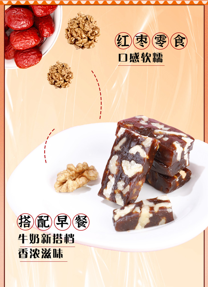 【下单即送手提袋!】枣粮先生红枣核桃糕 金丝小枣酥脆核桃 口感软糯 香甜有嚼劲 将康养生小零食 送礼佳品 180g/盒