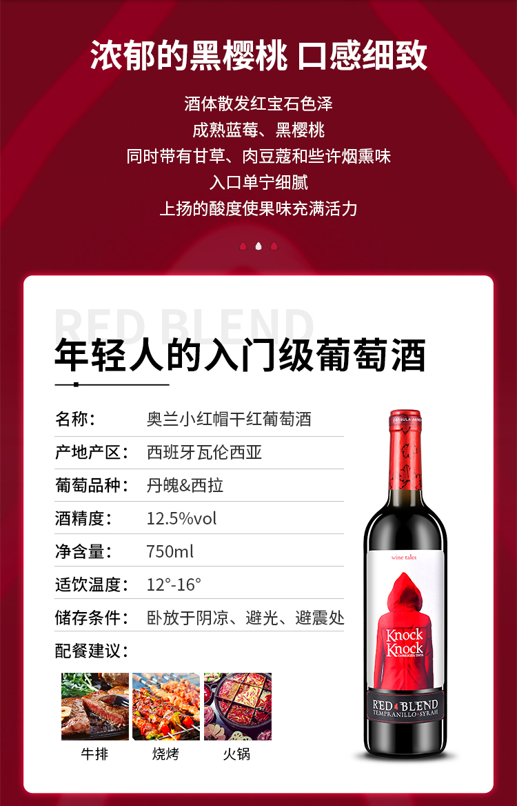 【整箱】奥兰小红帽干红葡萄酒 西班牙原瓶进口 750ml 12.5%vol