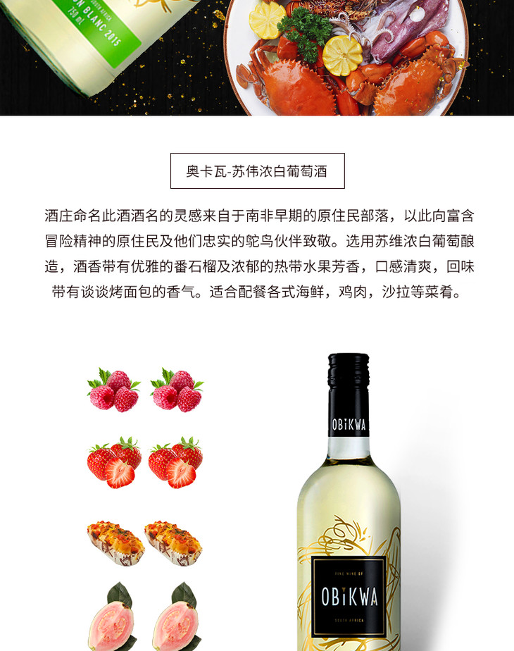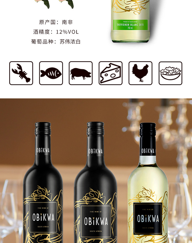 南非原瓶进口干白 奥卡瓦-苏伟浓白葡萄酒 Obikwa - Sauvignon Blanc 750ml【2016】