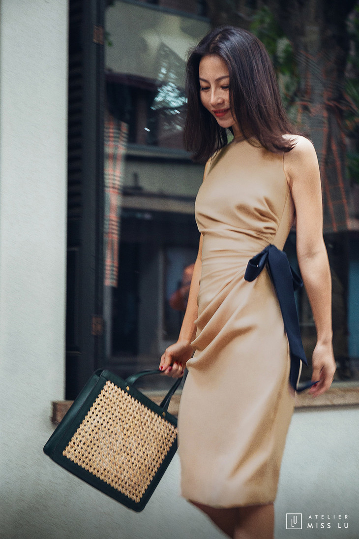 AtelierMissLu / Lyda-驼色立裁腰间系带连身裙