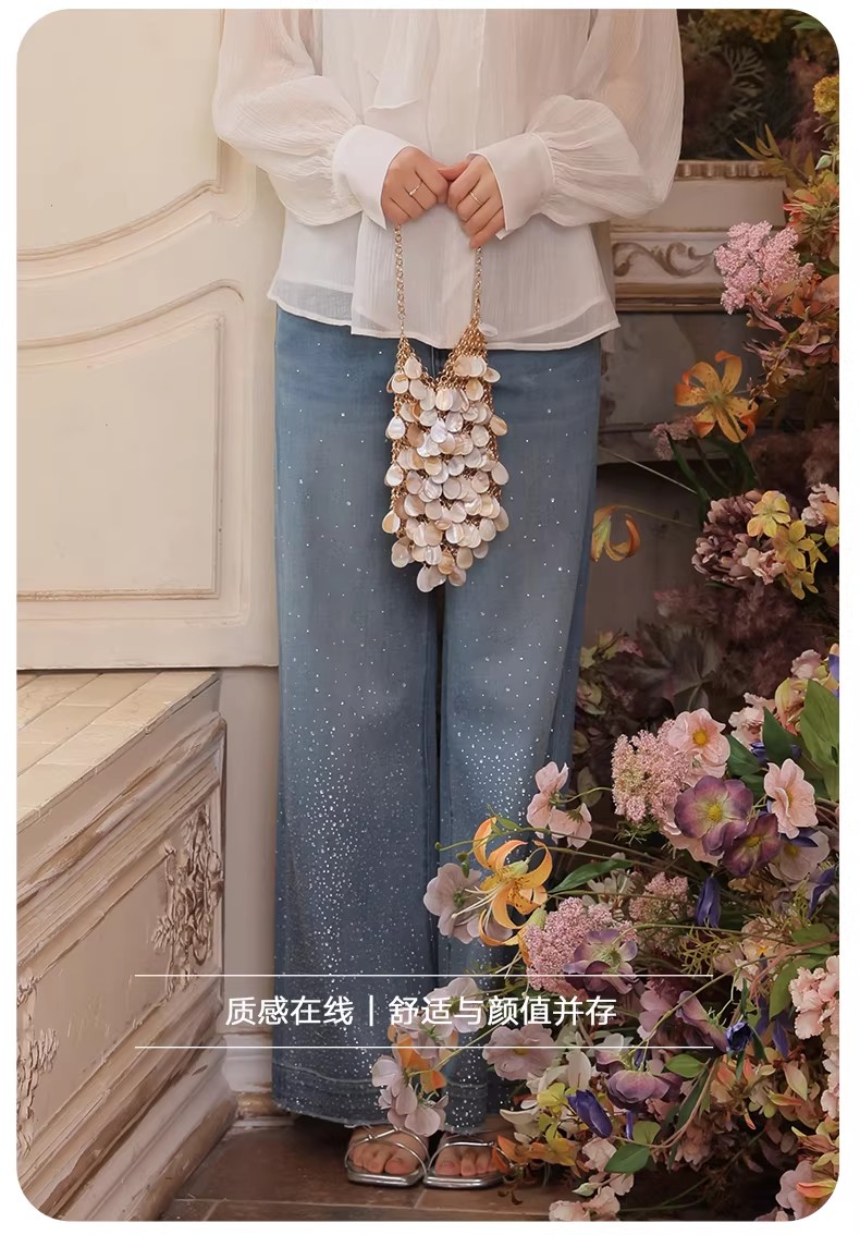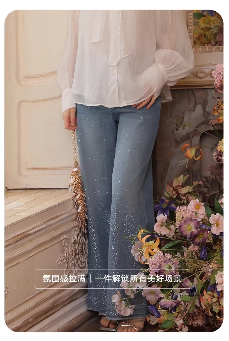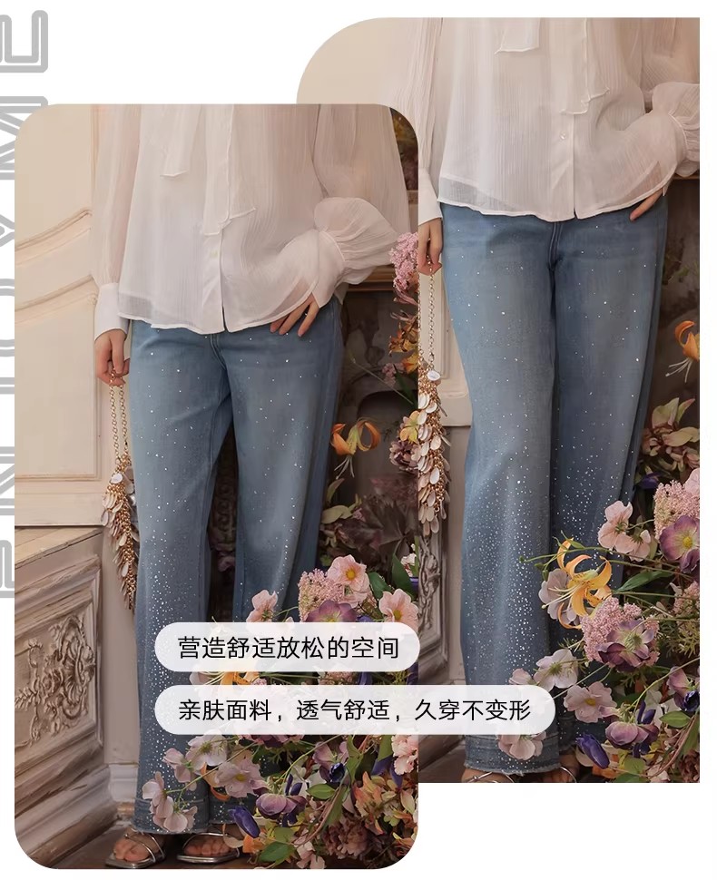 【门店同款】ENJOY春季满天星烫钻筒喇裤 170393273