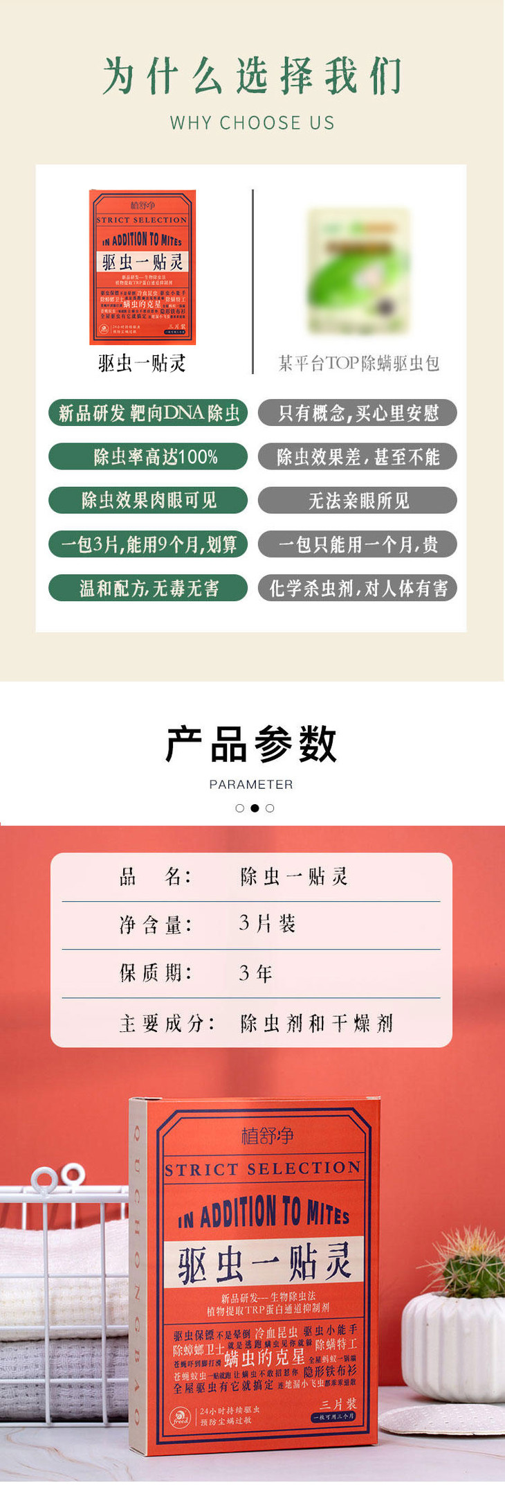 【买2送1另加送测螨剂1盒】全新升级 除螨贴 驱虫灵 无毒无害 温和配方源头长效除螨 呵护家人健康 全屋可用 一片能用3个月