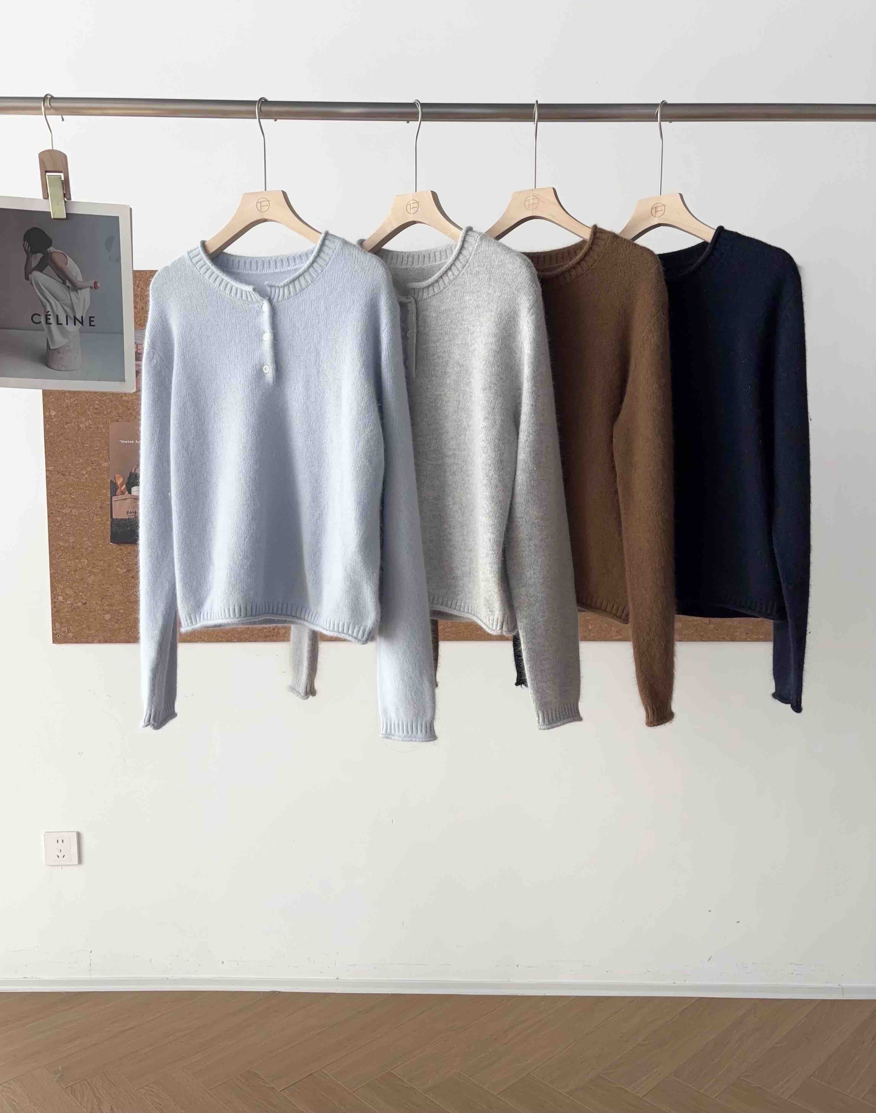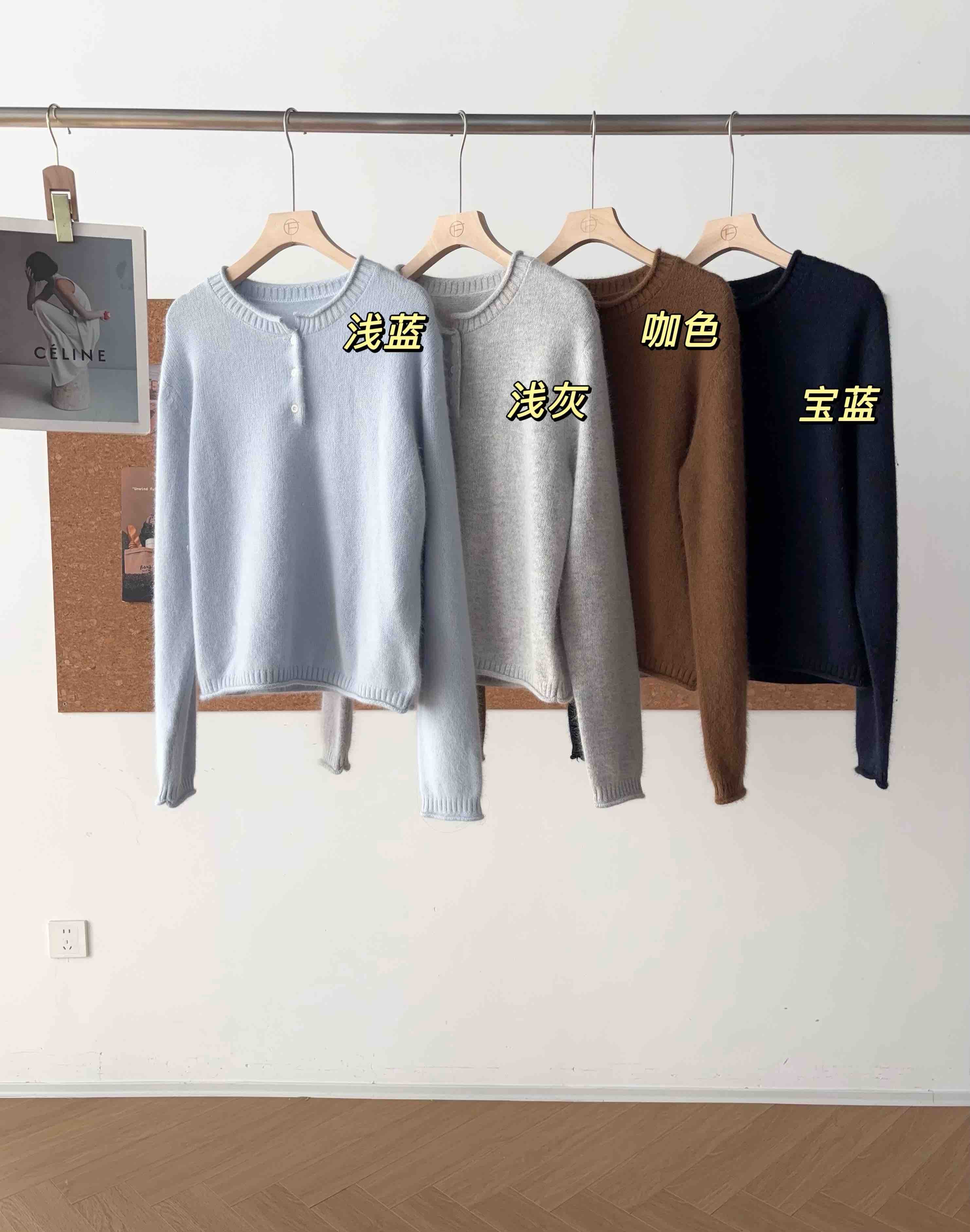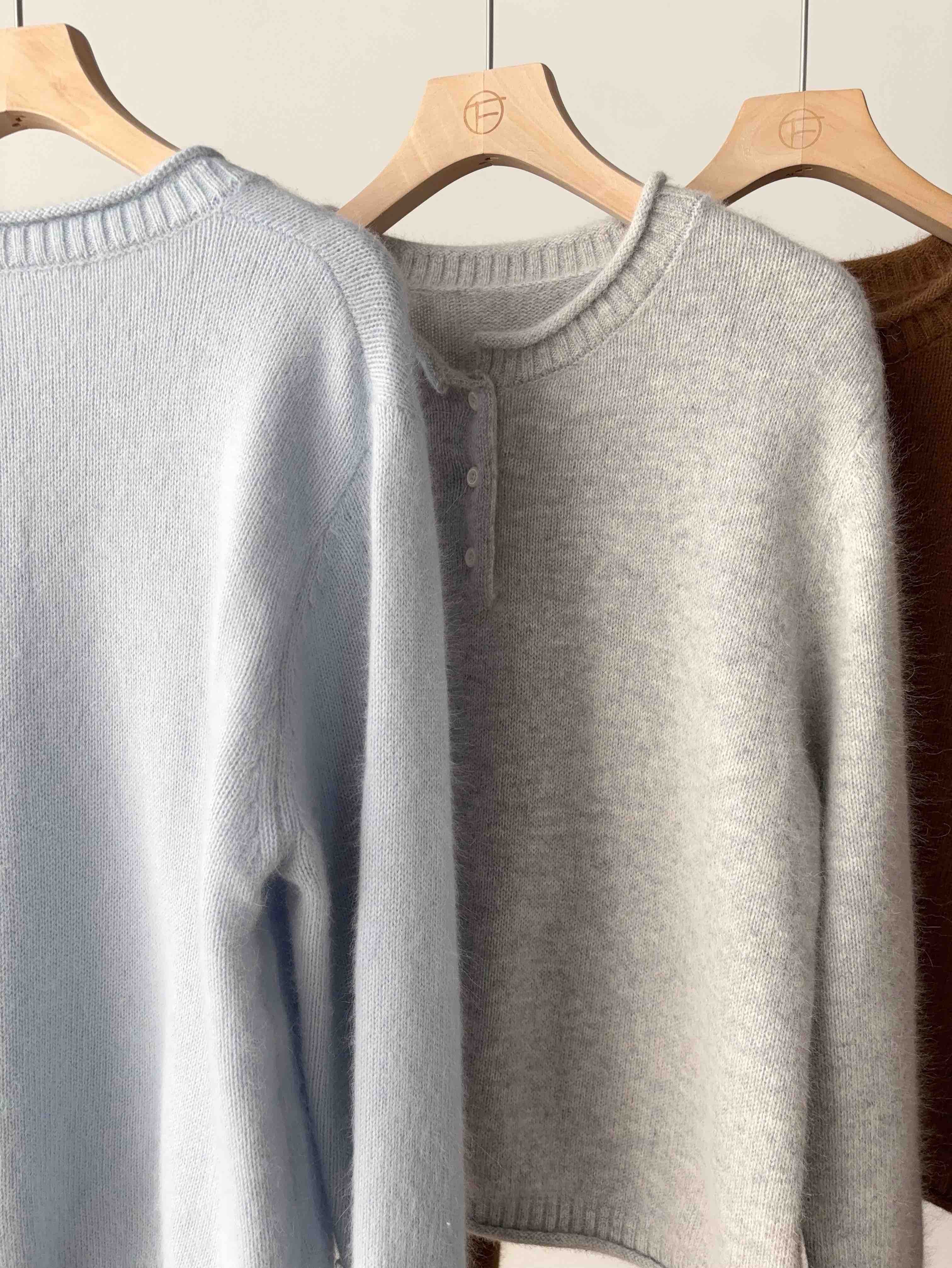 【产品名称】拉毛羊绒亨利领羊毛衫