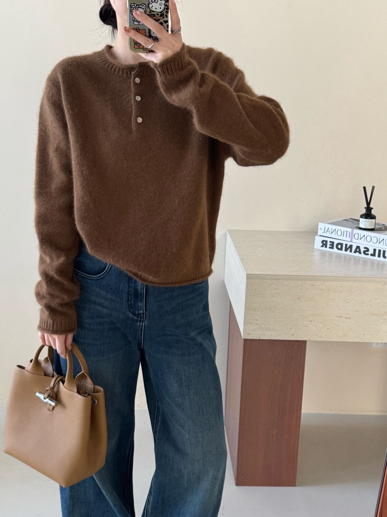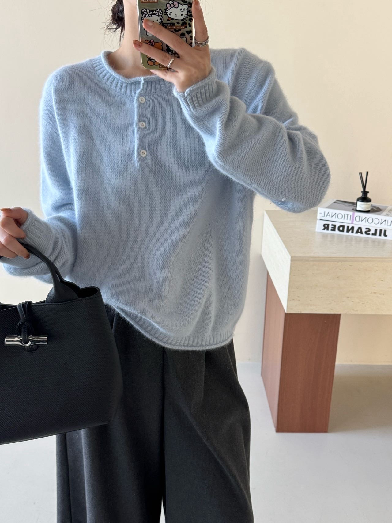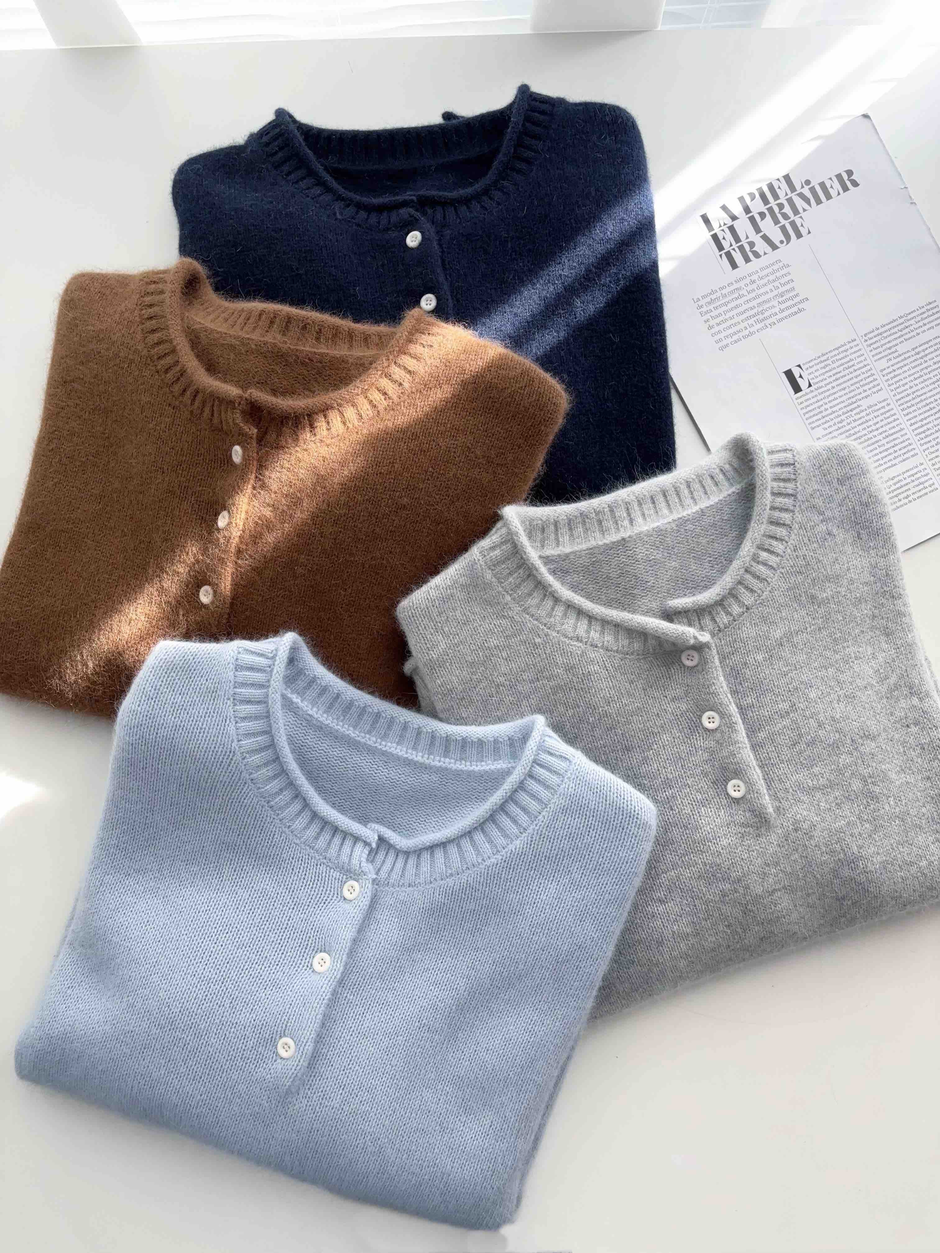 【产品名称】拉毛羊绒亨利领羊毛衫