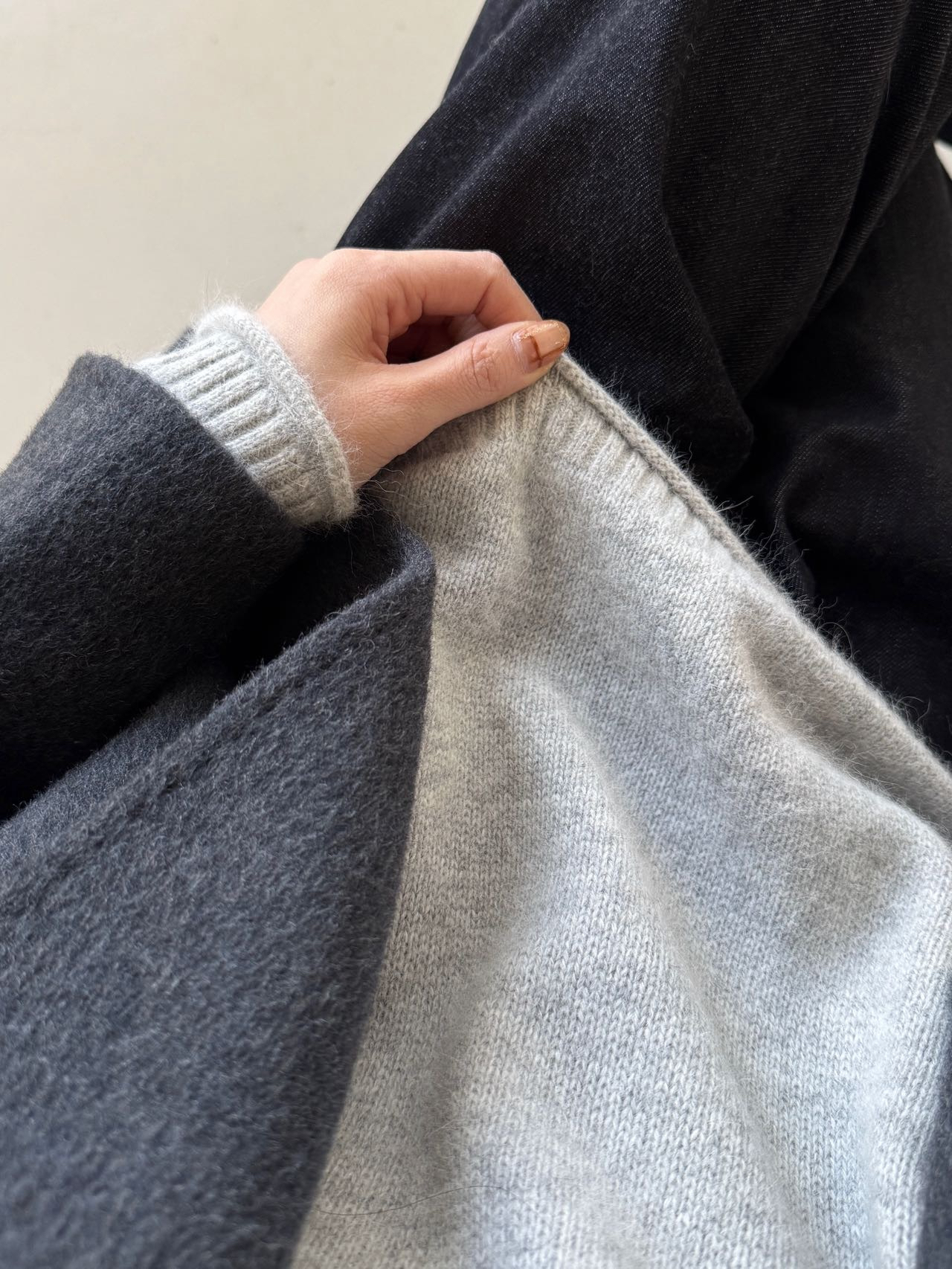 温馨提示: 这个拉毛材质均会有掉毛的现象,不建议跟深色衣服一起穿!
