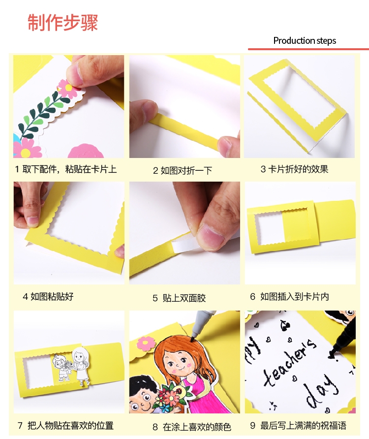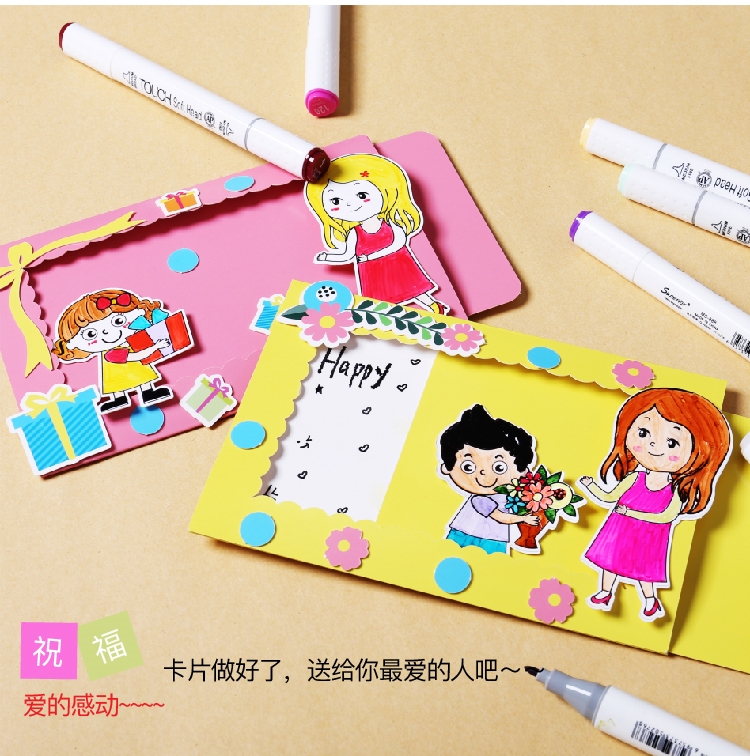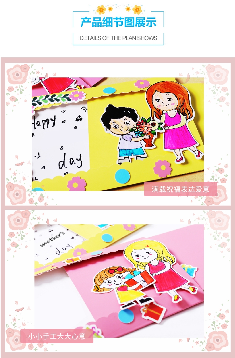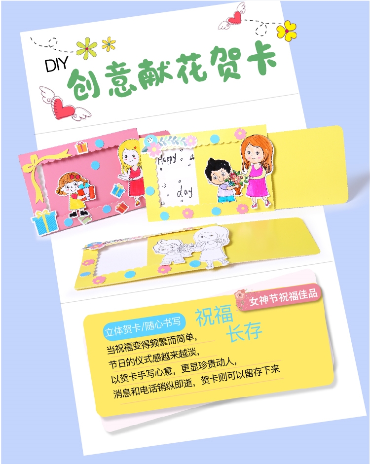 38妇女节手工创意献花贺卡抽拉式贺卡幼儿园益智立体3d贺卡儿童