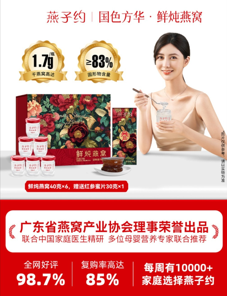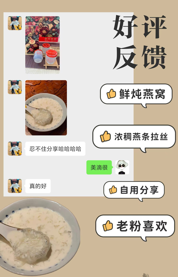 🌟把好的东西,送给爱的人! “鲜炖燕窝,每一口都是‘冻龄密码’! EGF+燕窝酸双效抗老,喝出透亮水光肌!”