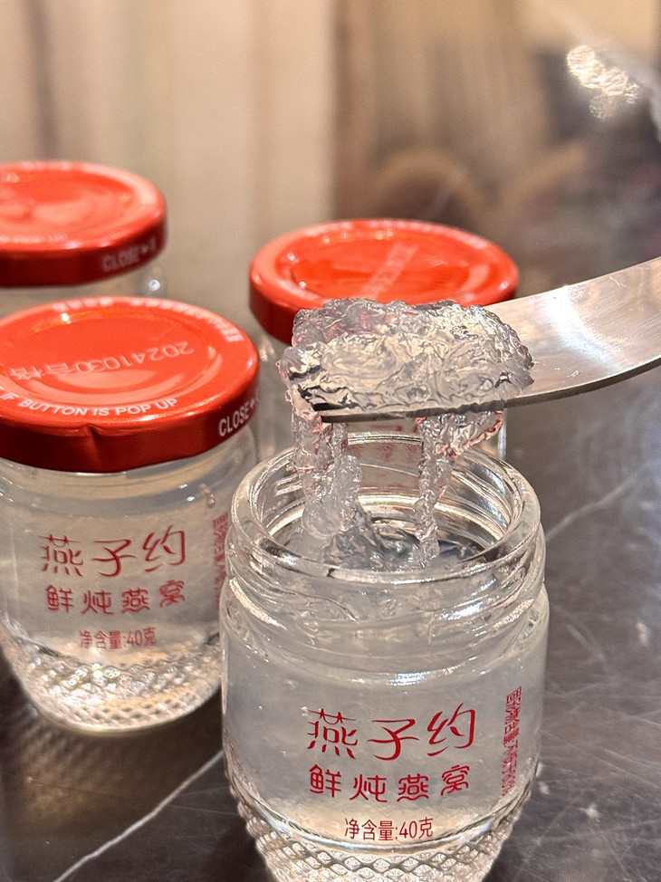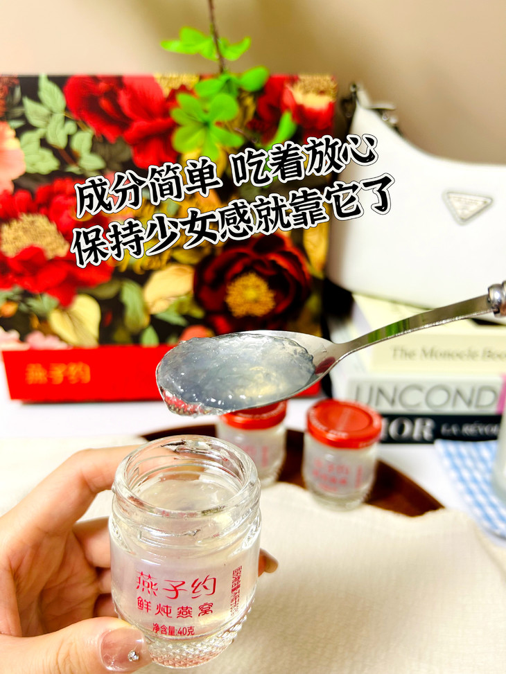 【燕子约鲜炖燕窝】 采用专利炖煮工艺 最大的保留燕窝的营养成分 口感滑嫩爽口,方便快捷,开瓶即食! 入口Q弹饱满,口感醇厚 料真的很足❗️❗️好好吃❗️一口一口停不下来❗️ 含糖量也很低,很淡很淡的甜味~