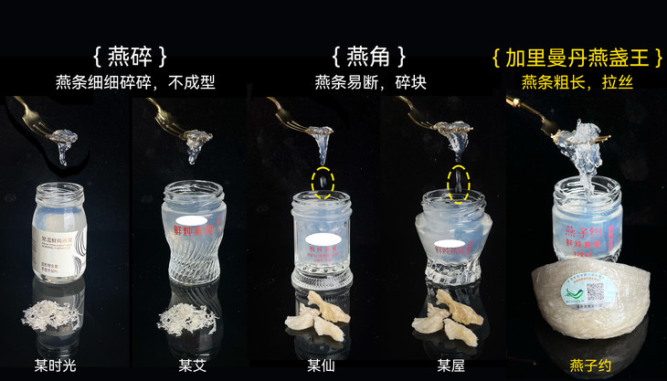 里面的燕条根根饱满,口感也QQ弹弹的。 这种完整的大燕条吃着更满足,而且我吃了这么长时间是从来没吃到过杂毛。 好评率接近100%~
