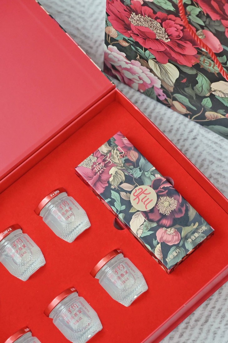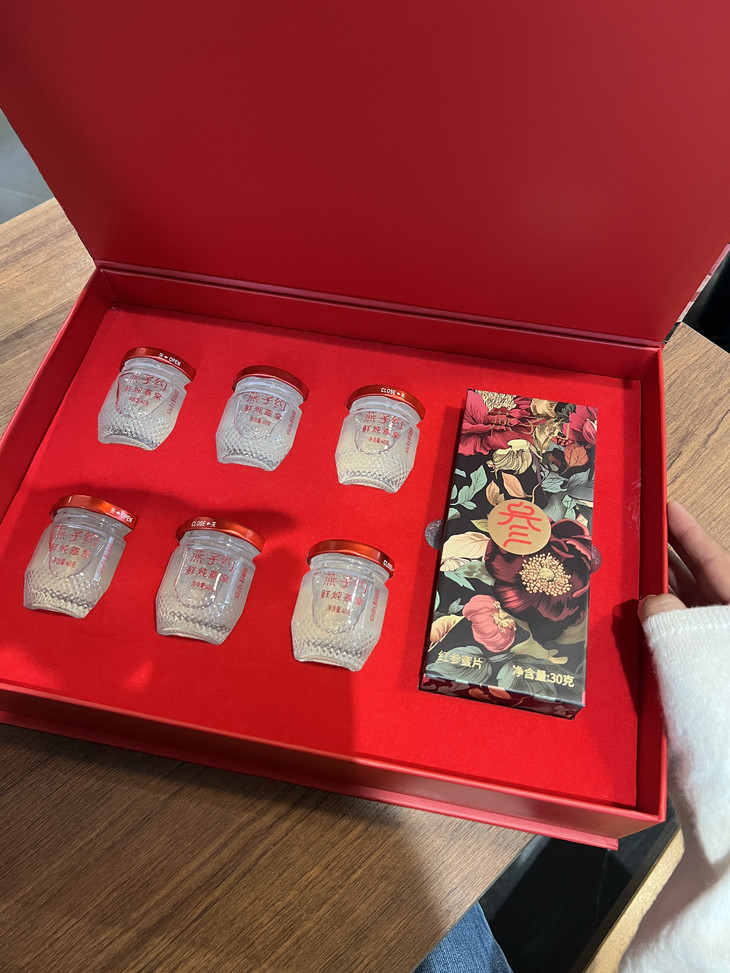 🔜一整盒:鲜炖燕窝(40gx6瓶)x红参蜜片(30gx1盒) 鲜炖燕窝搭配长白山红参蜜片,效果翻倍~ 送妈妈,送自己,越吃越年轻! 节日做为礼品送人,高端大气❗️