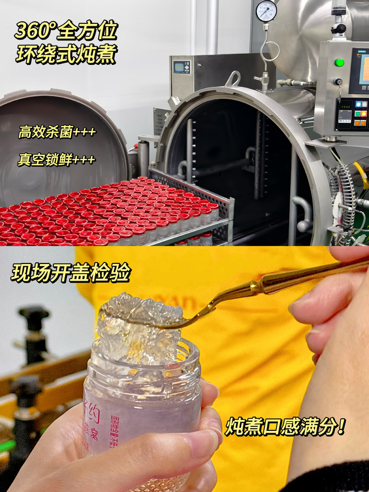 我们的常温鲜炖燕窝采用了先进的【360°环绕式温控 鲜炖工艺】, 核心在于水汽360°包裹式环绕着瓶身,在抽真空高压下,通过精准温控, 进行全方位锁鲜精炖。 在温控上,温度控制在0.1°C的精确范围内!