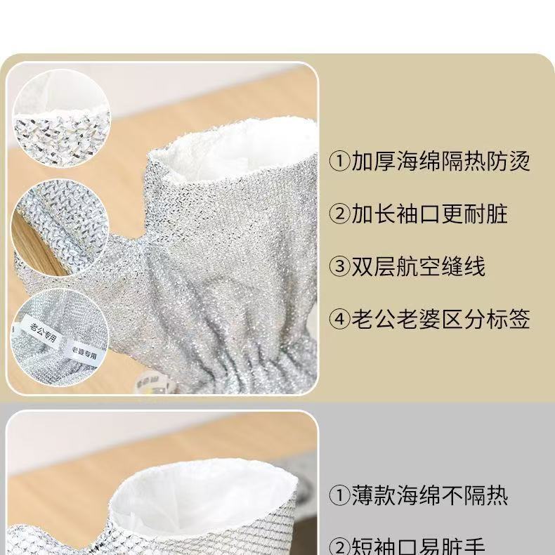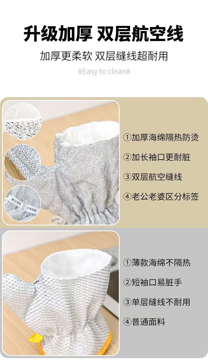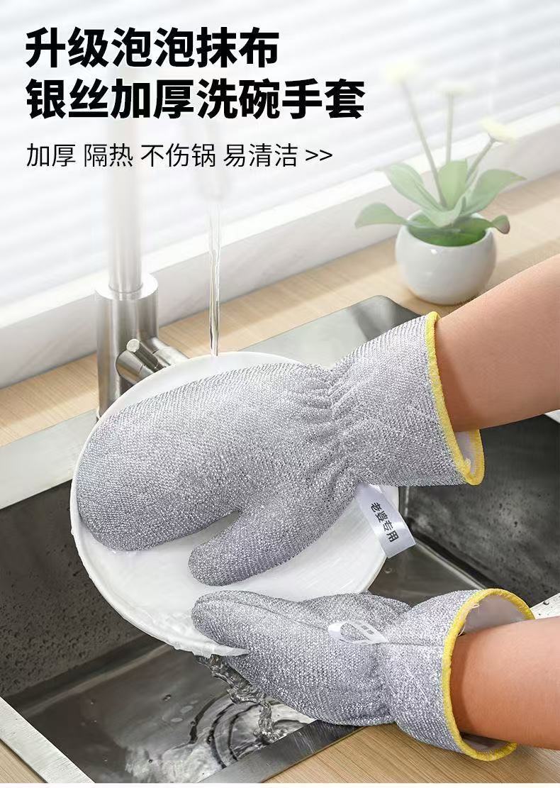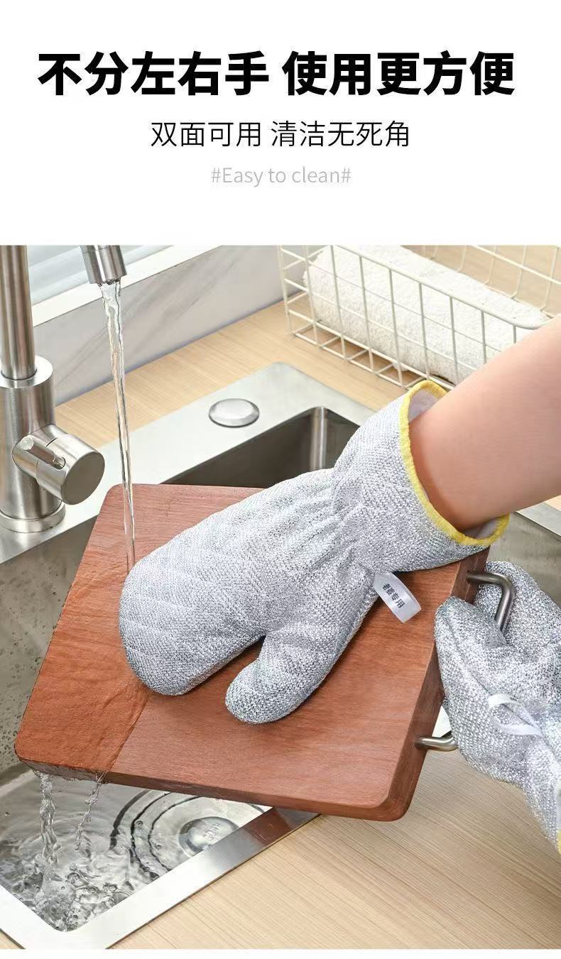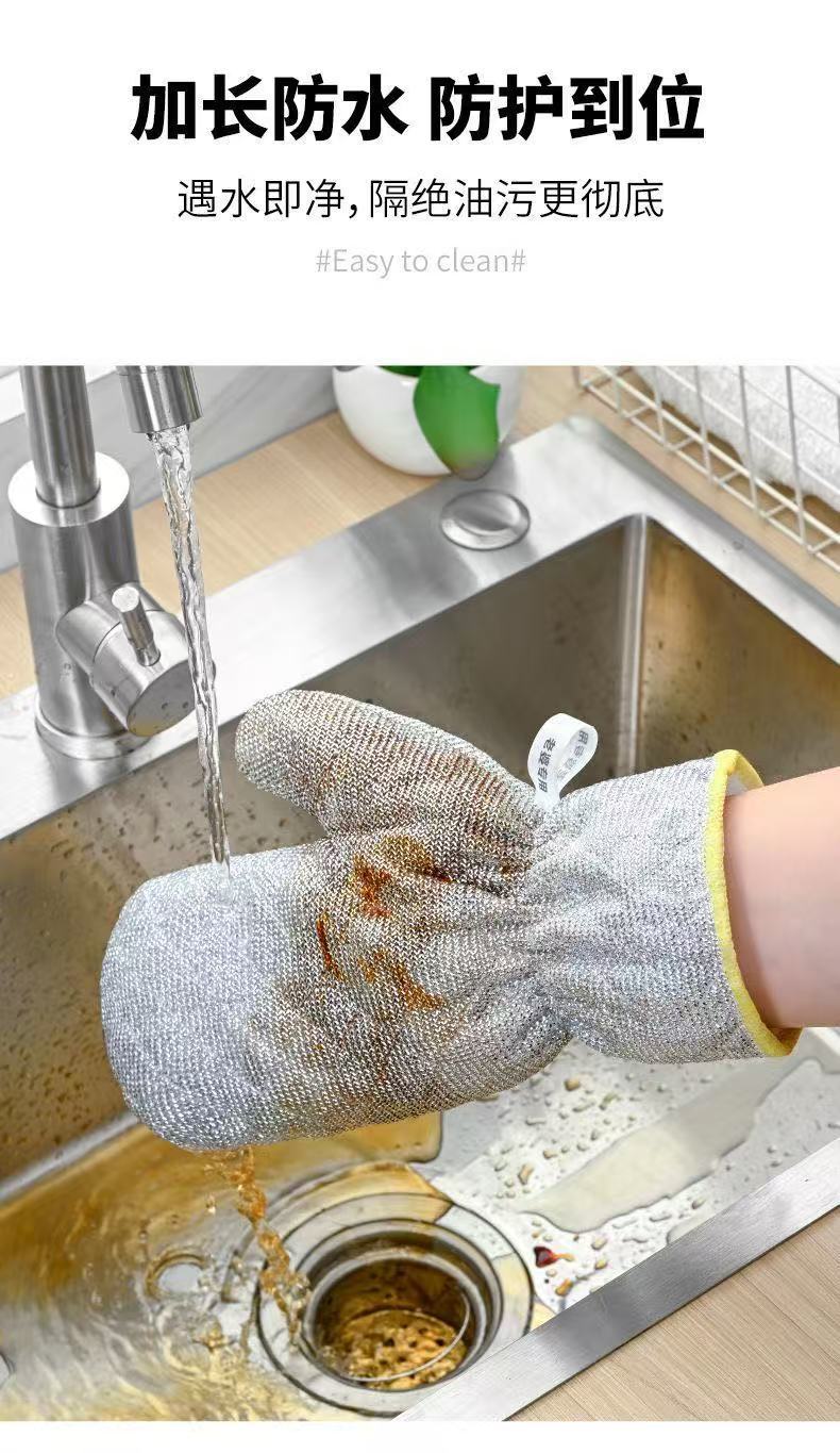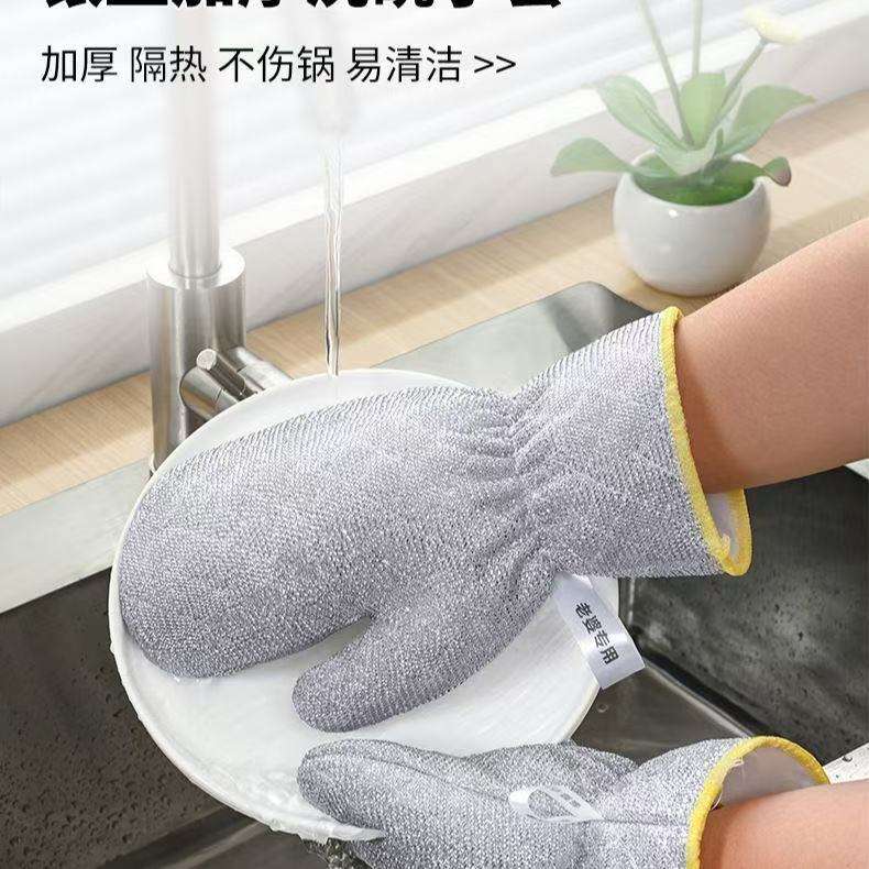 超值2件【有效去污❗️遇水即净】钢丝洗碗手套厨房专用清洁刷锅去污神器家用隔热防烫防水加厚手套。ja