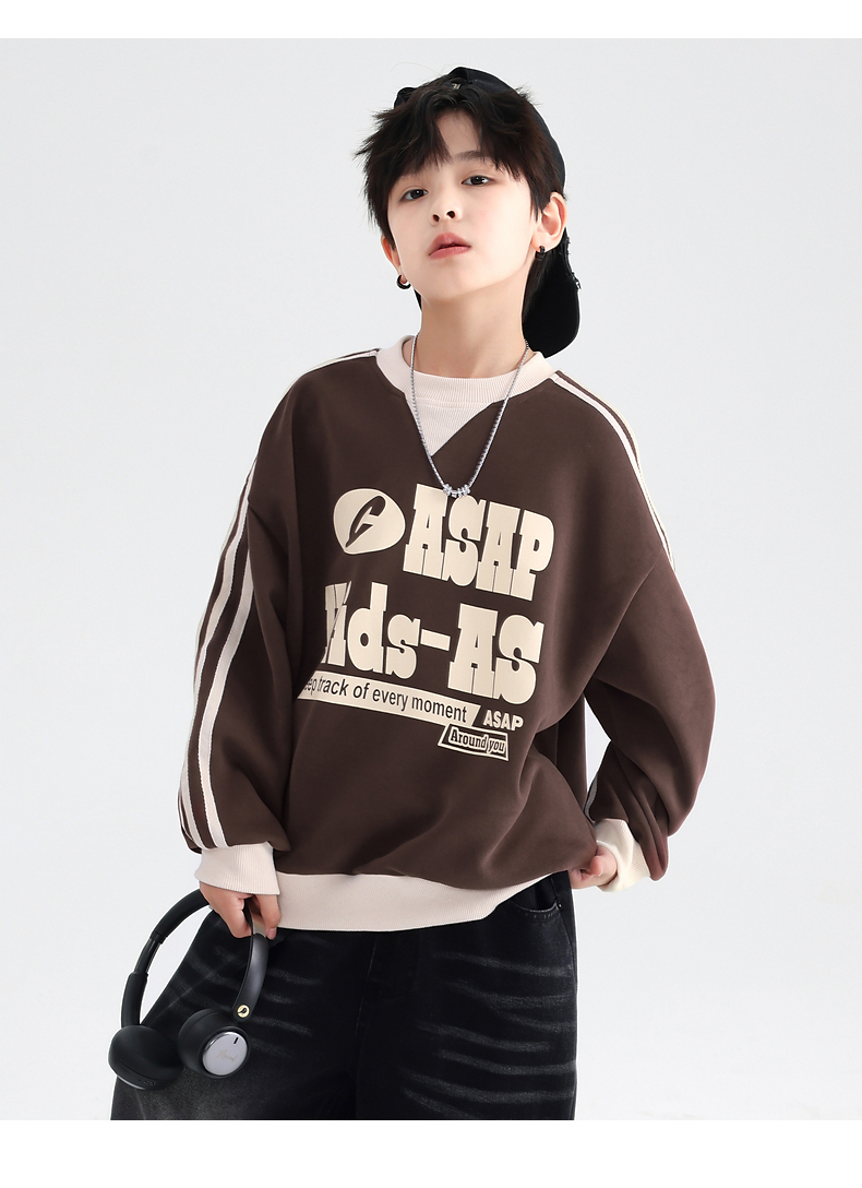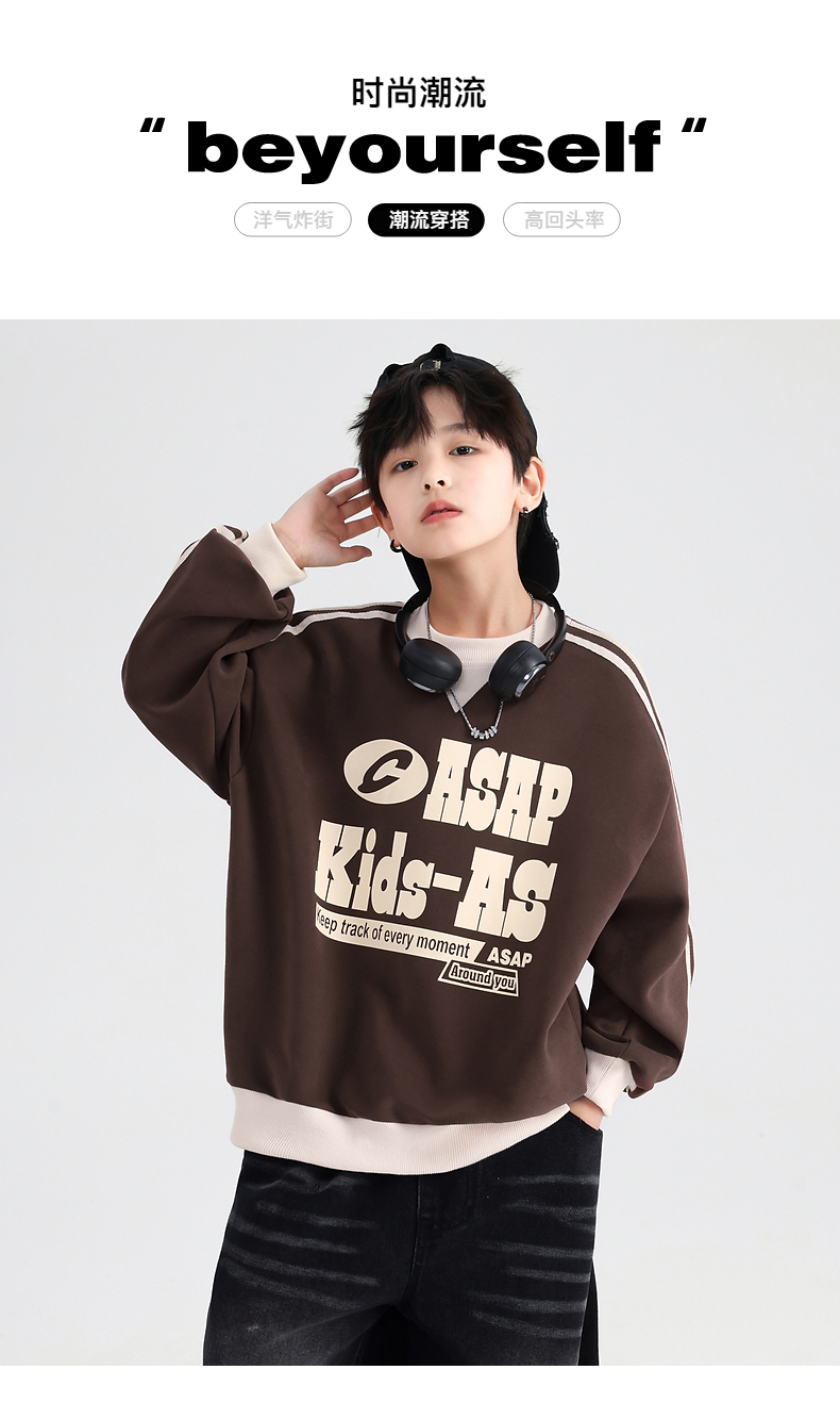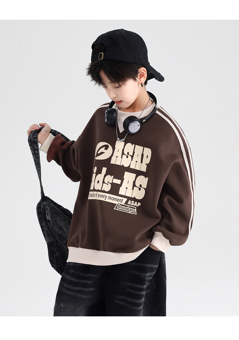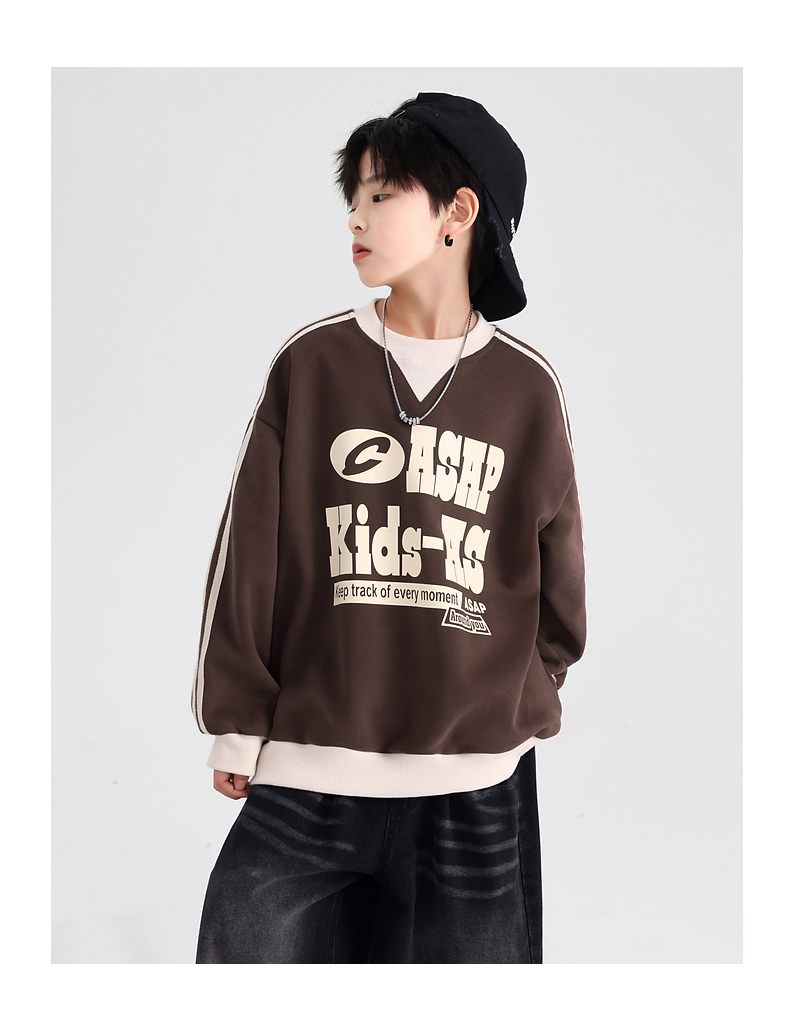 男童秋季韩范撞色美拉德运动卫衣2025新款青少年儿童男孩宽松上衣