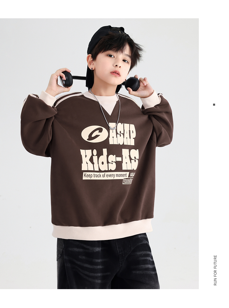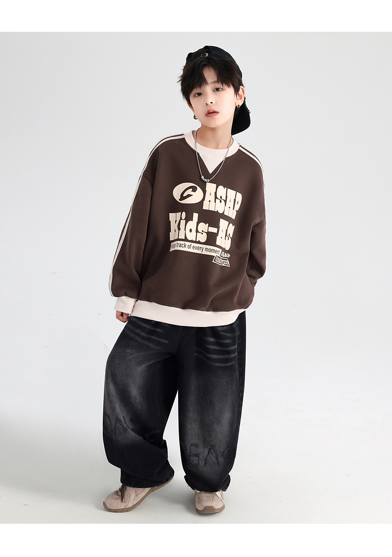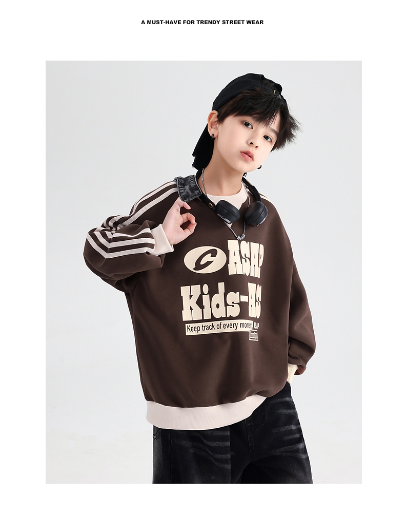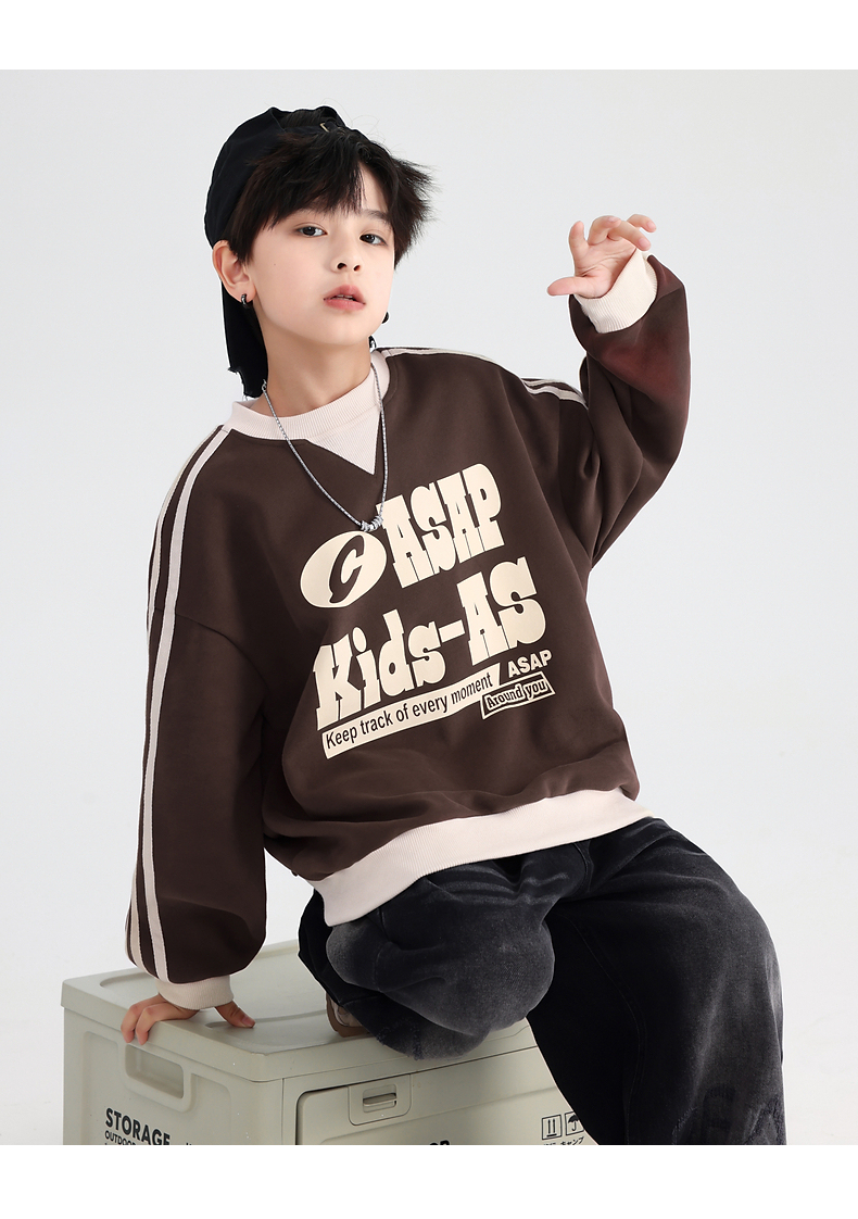 男童秋季韩范撞色美拉德运动卫衣2025新款青少年儿童男孩宽松上衣