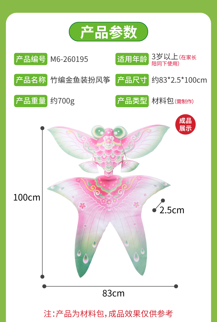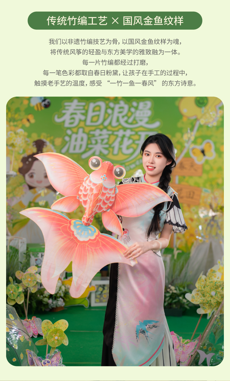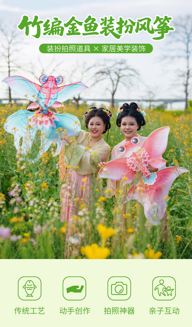 户外春天踏青竹编金鱼装扮风筝手工diy制作材料儿童纸鸢团建活动