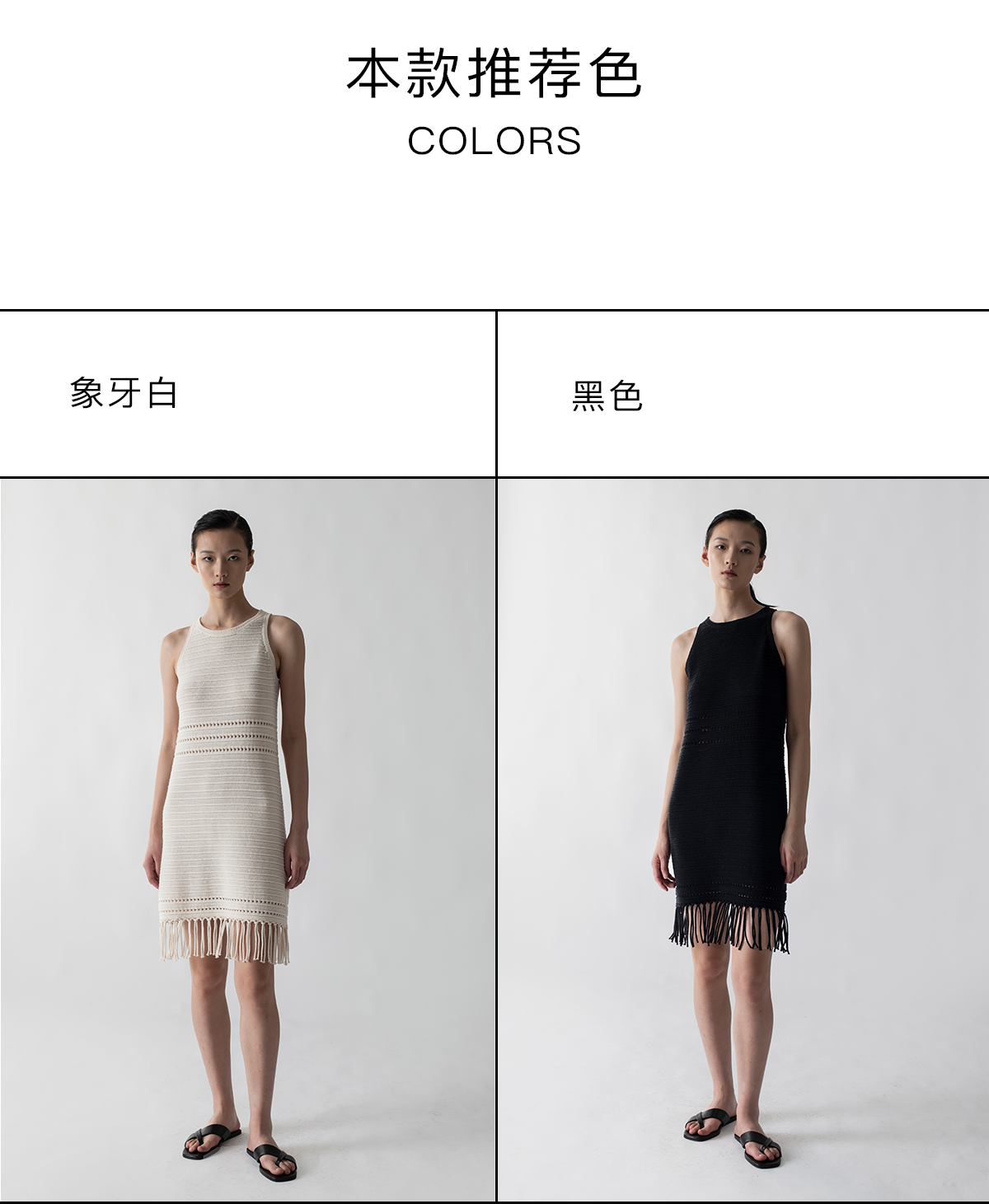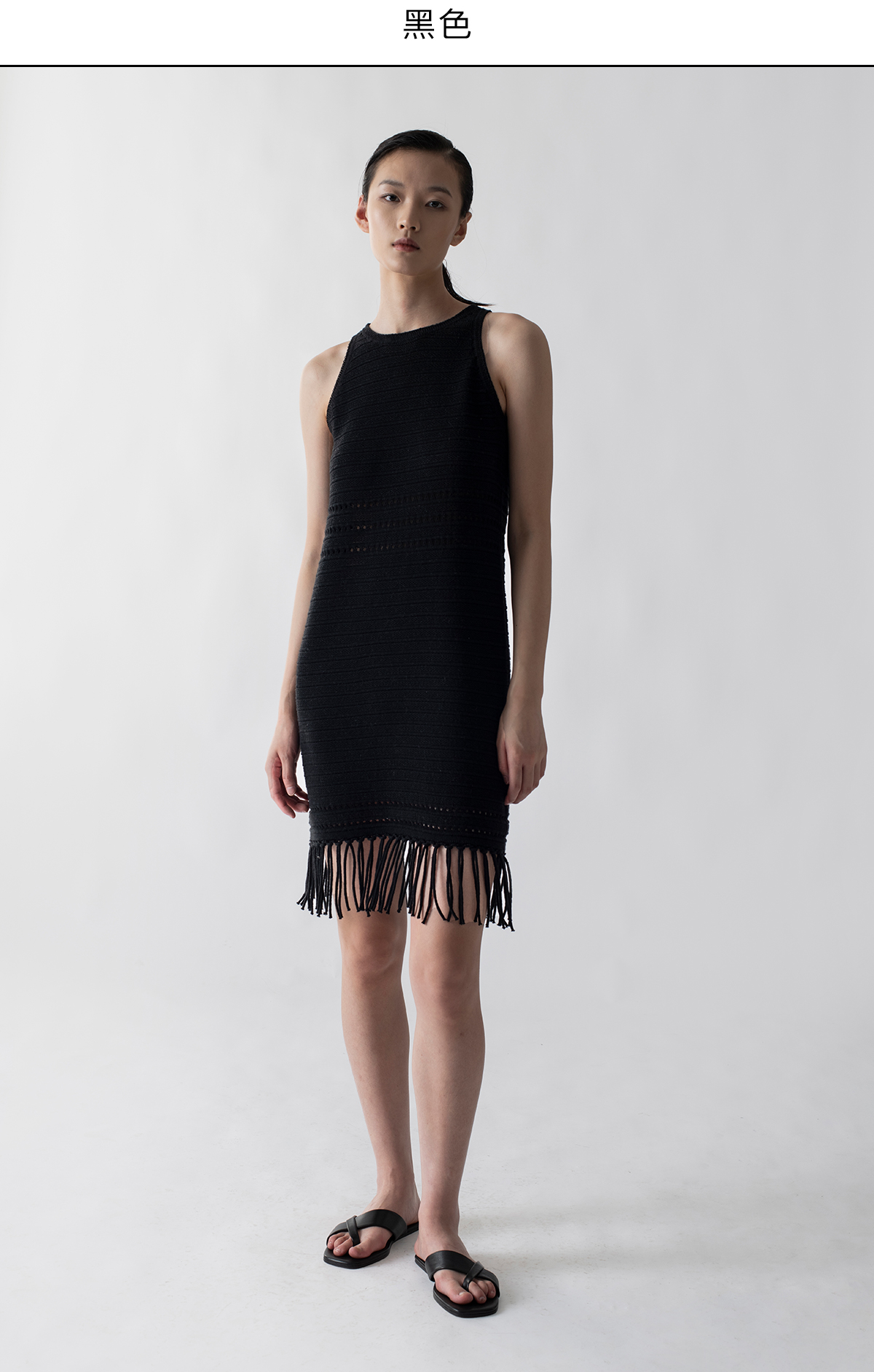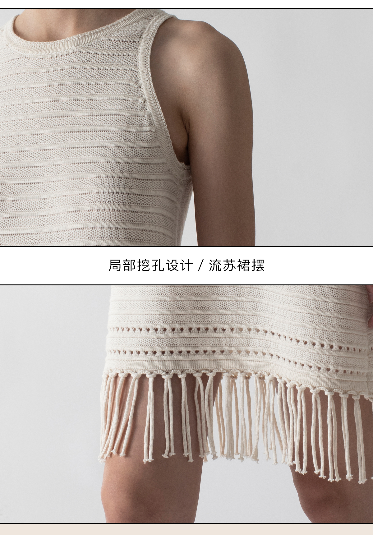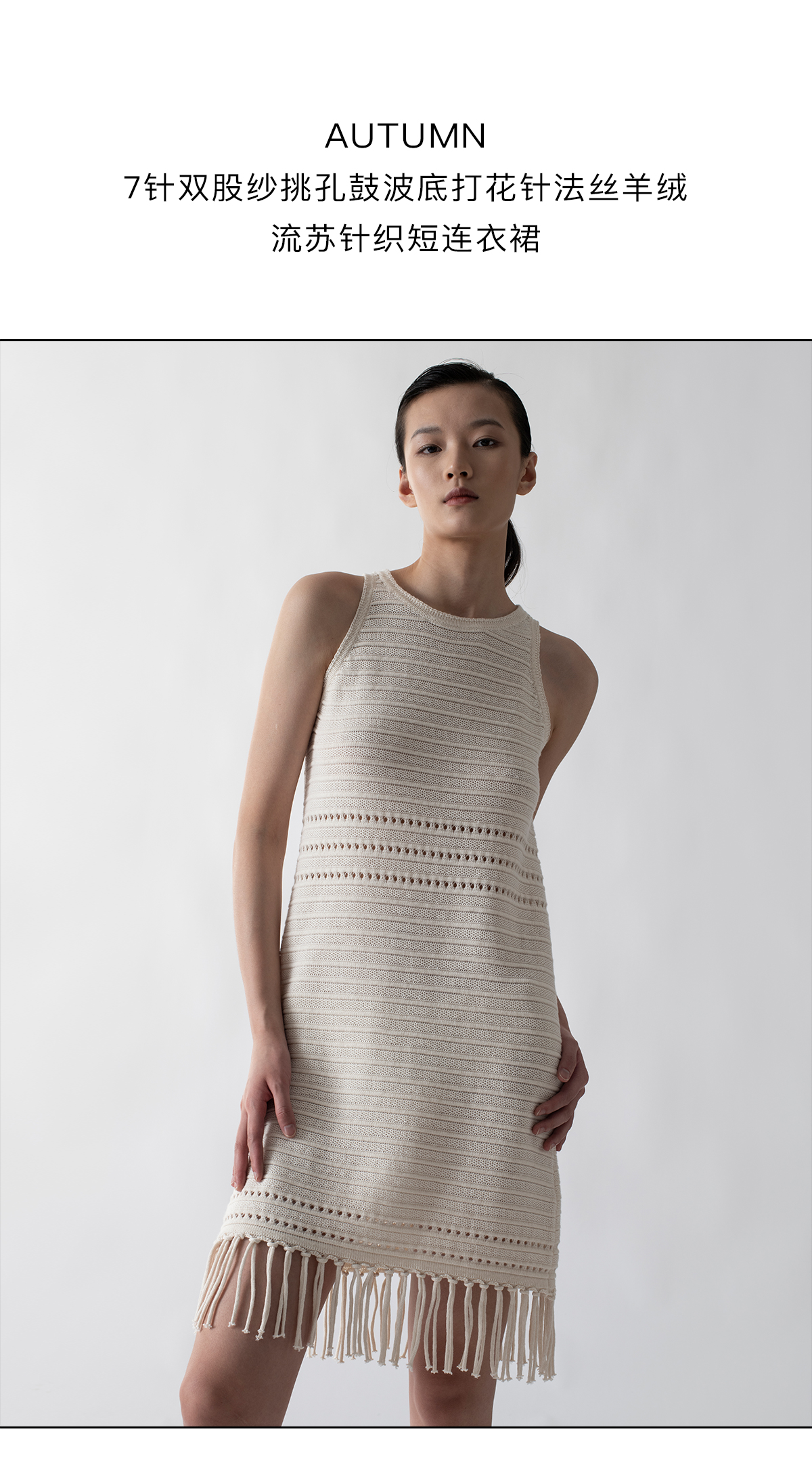 322工房手工流苏背心裙2022秋冬新款棉羊绒流苏针织镂空连衣裙女