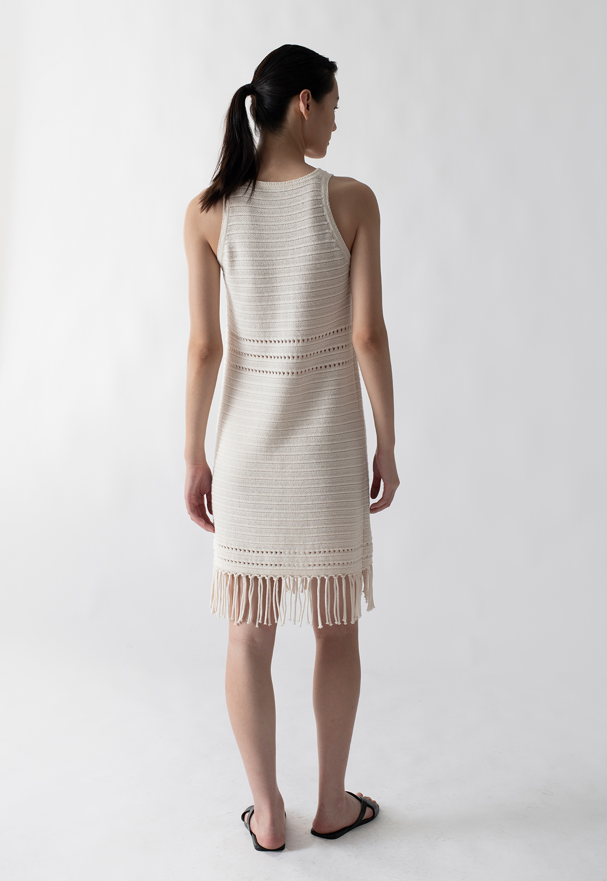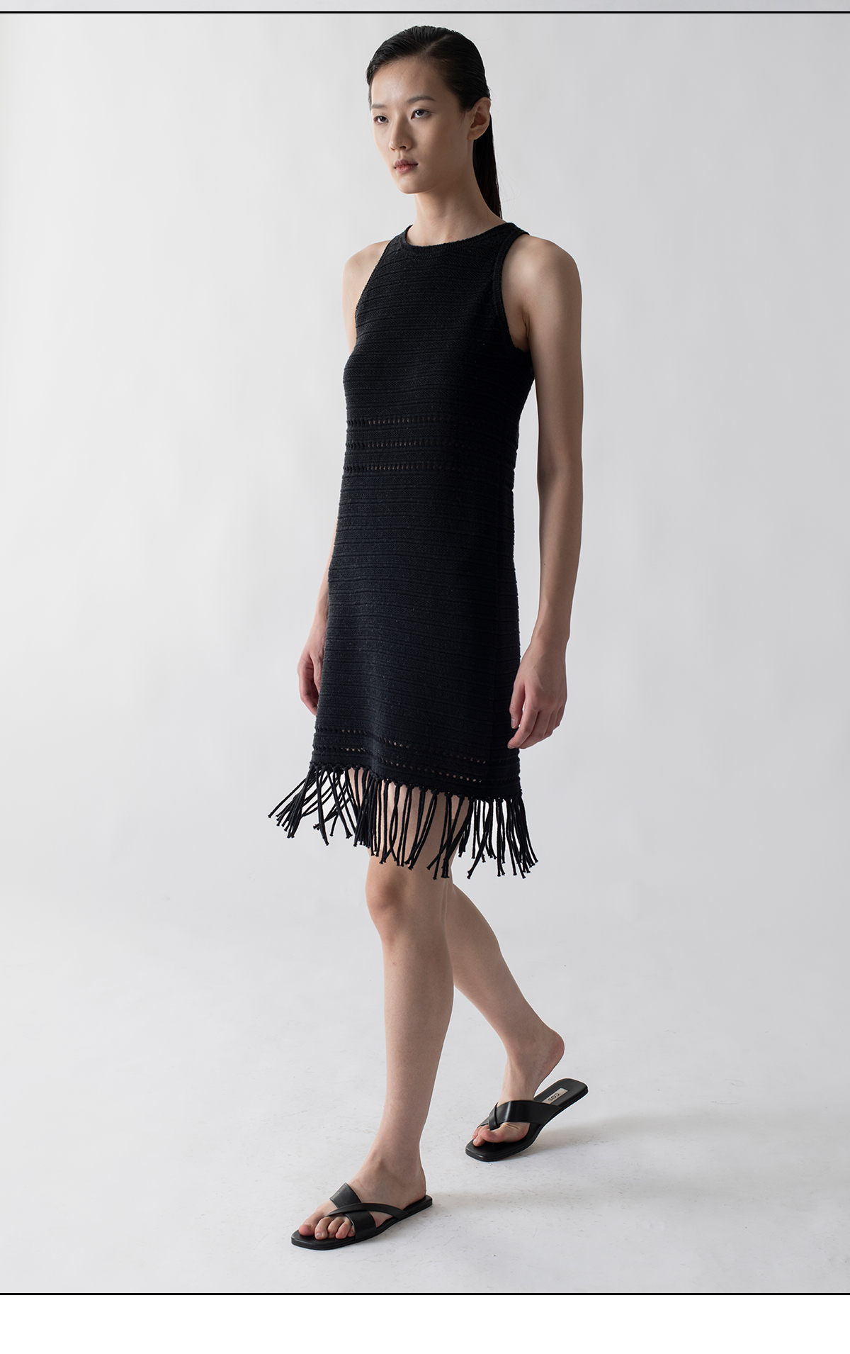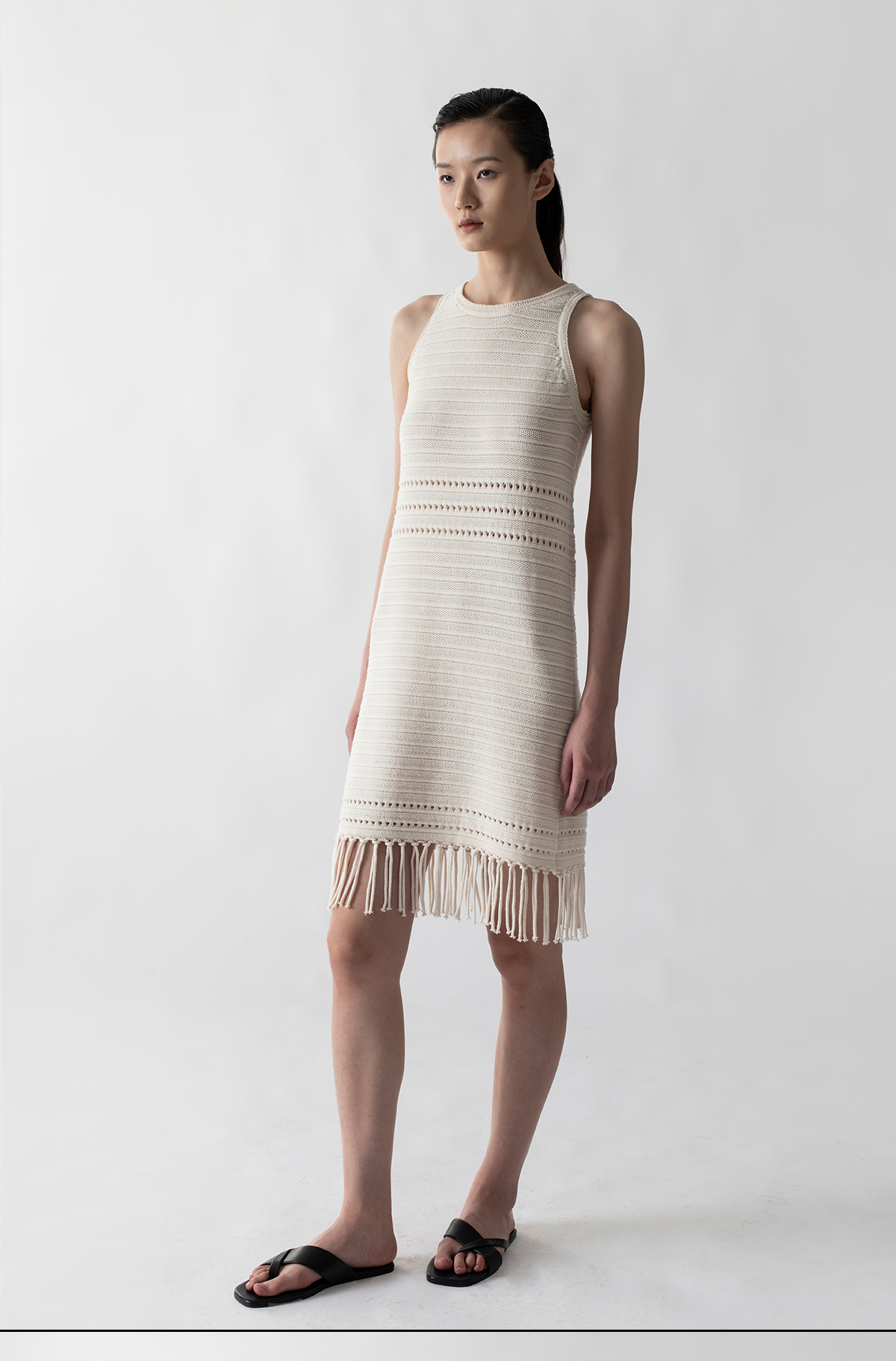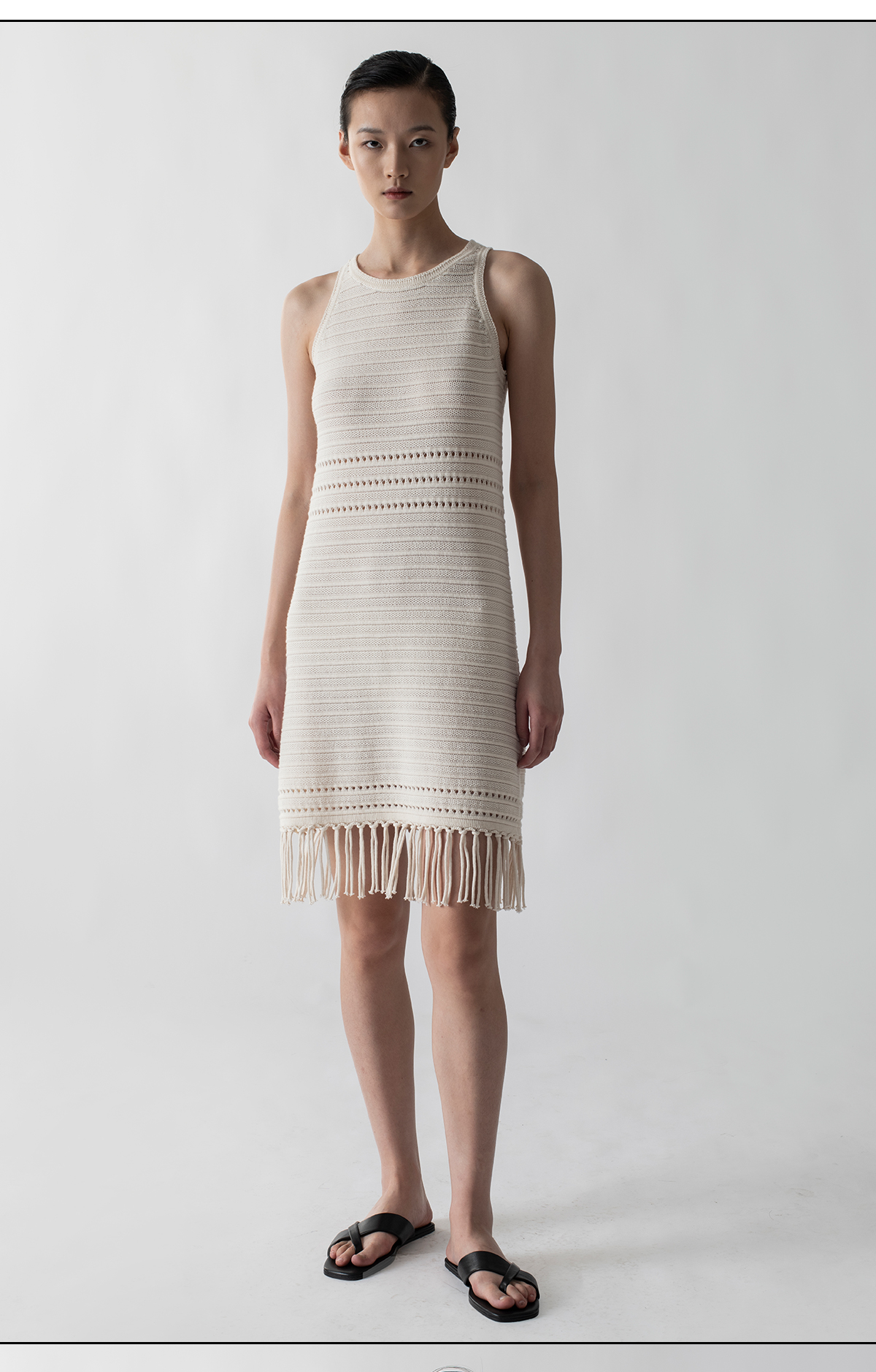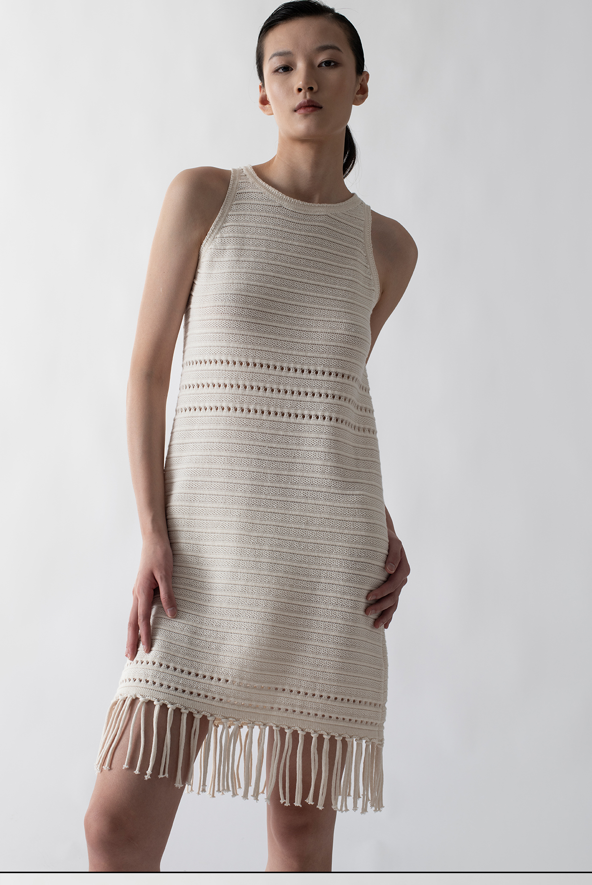 322工房手工流苏背心裙2022秋冬新款棉羊绒流苏针织镂空连衣裙女