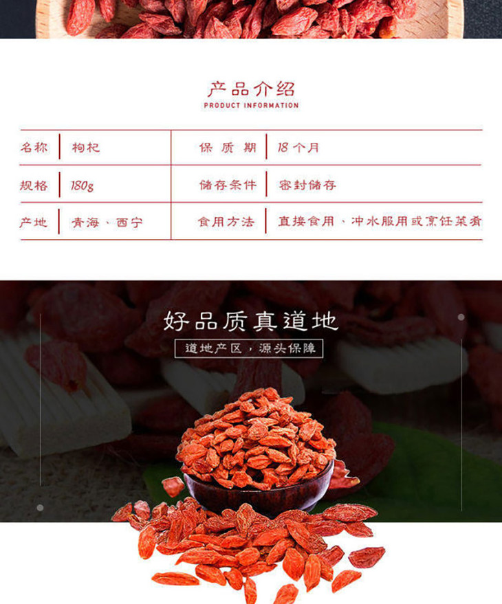 枸杞瓶装180克 源自青海道地产区 个大味甜