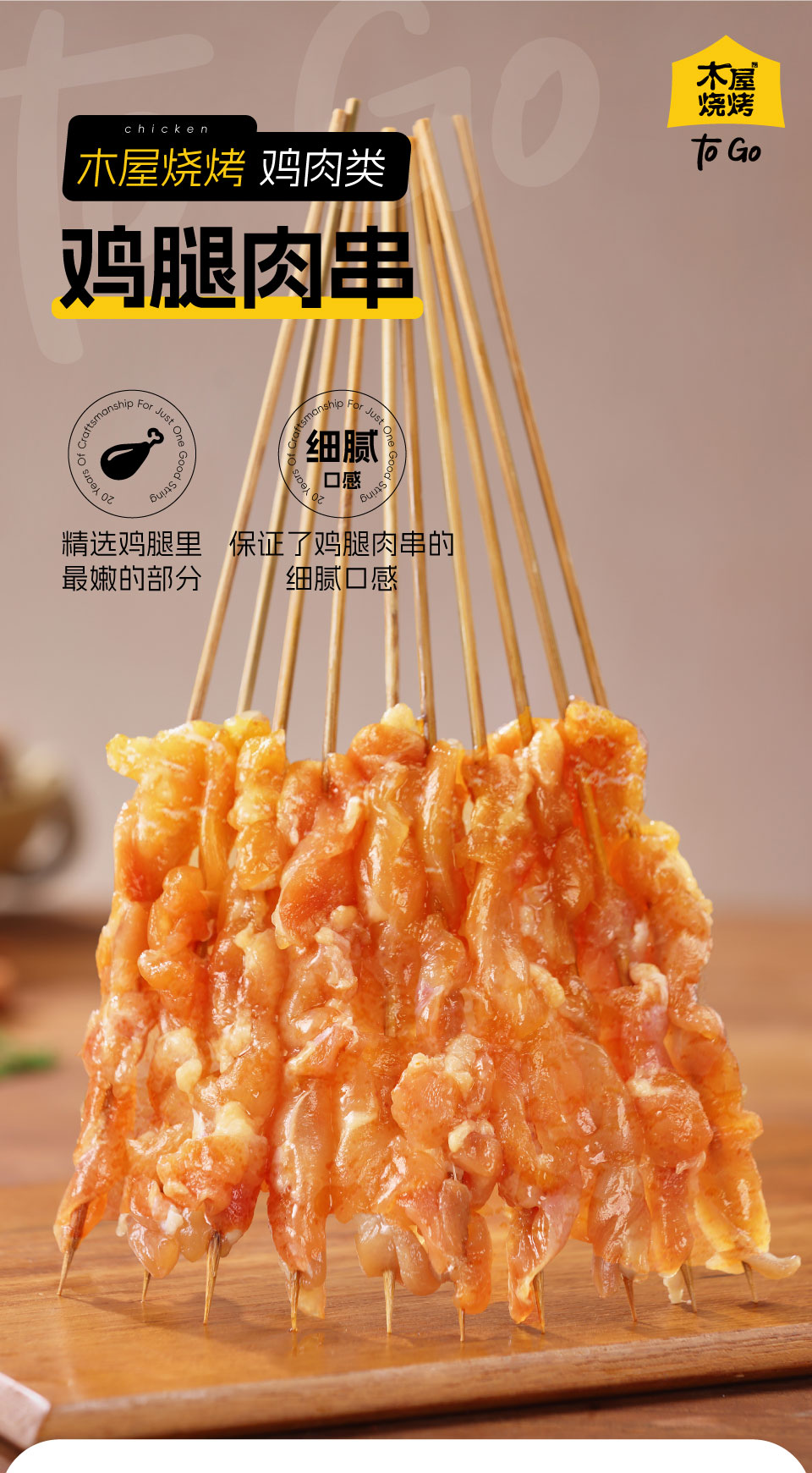 木屋鸡腿肉串(20串/约290克,半成品食材)
