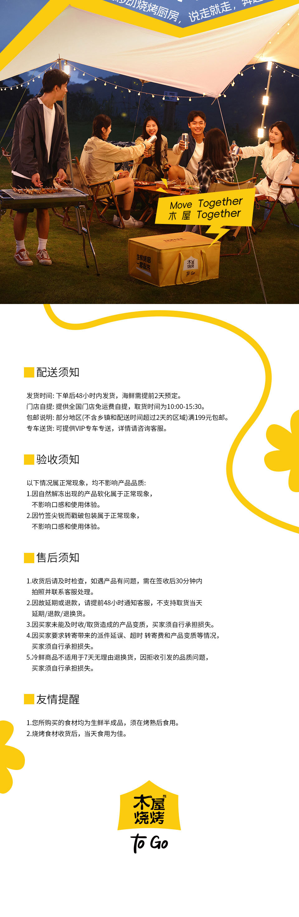 木屋烧烤半成品套装,一键下单,使命必达。 -全国300家门店支持次日到店自提 -全国顺丰包邮,当日下单,次日顺丰送货上门(部分区域除外,实际以顺丰时效为准)