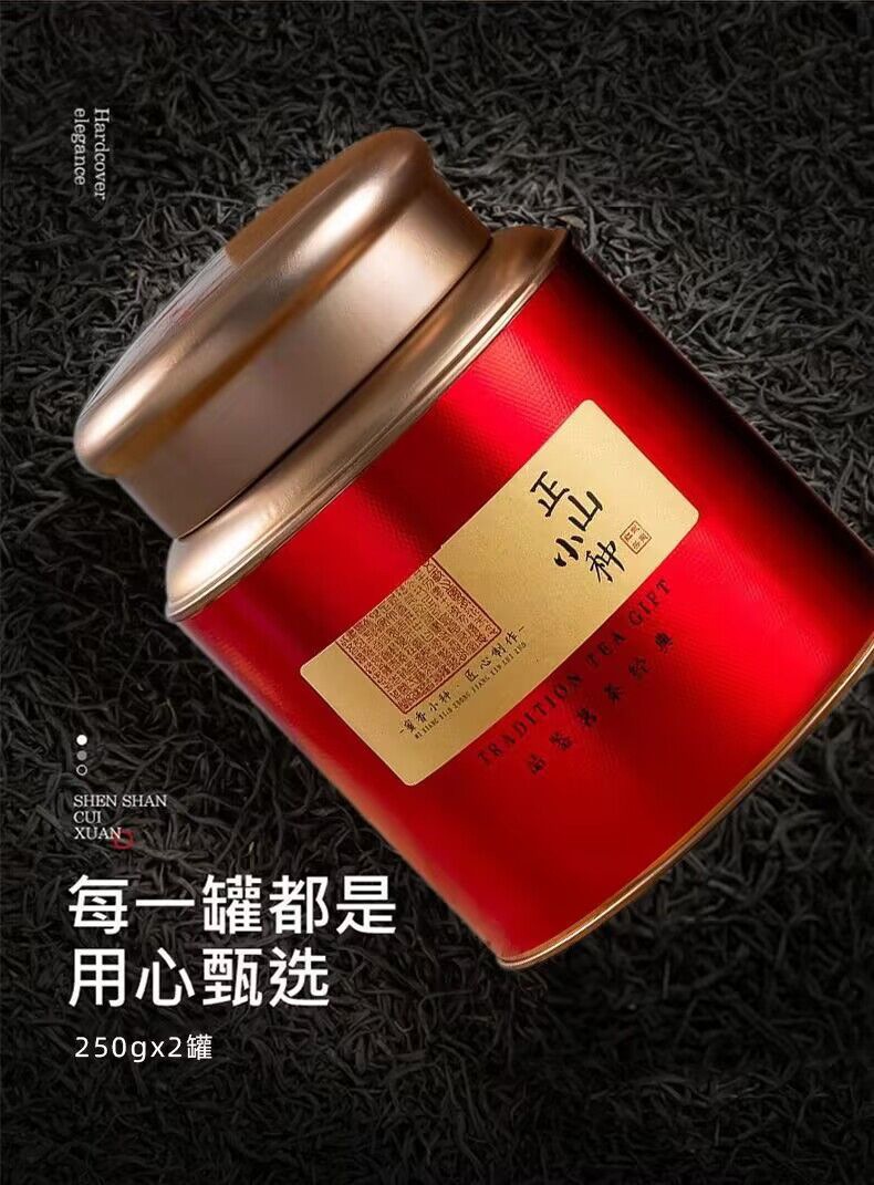 【源于正统❗️武夷山正山小种】一年一采只取头春嫩叶,无任何添加野长嫩叶,外形条索肥实色泽乌润,茶汤色泽金黄蜜香馥郁,茶叶浓香型红茶500g礼盒罐装QQ