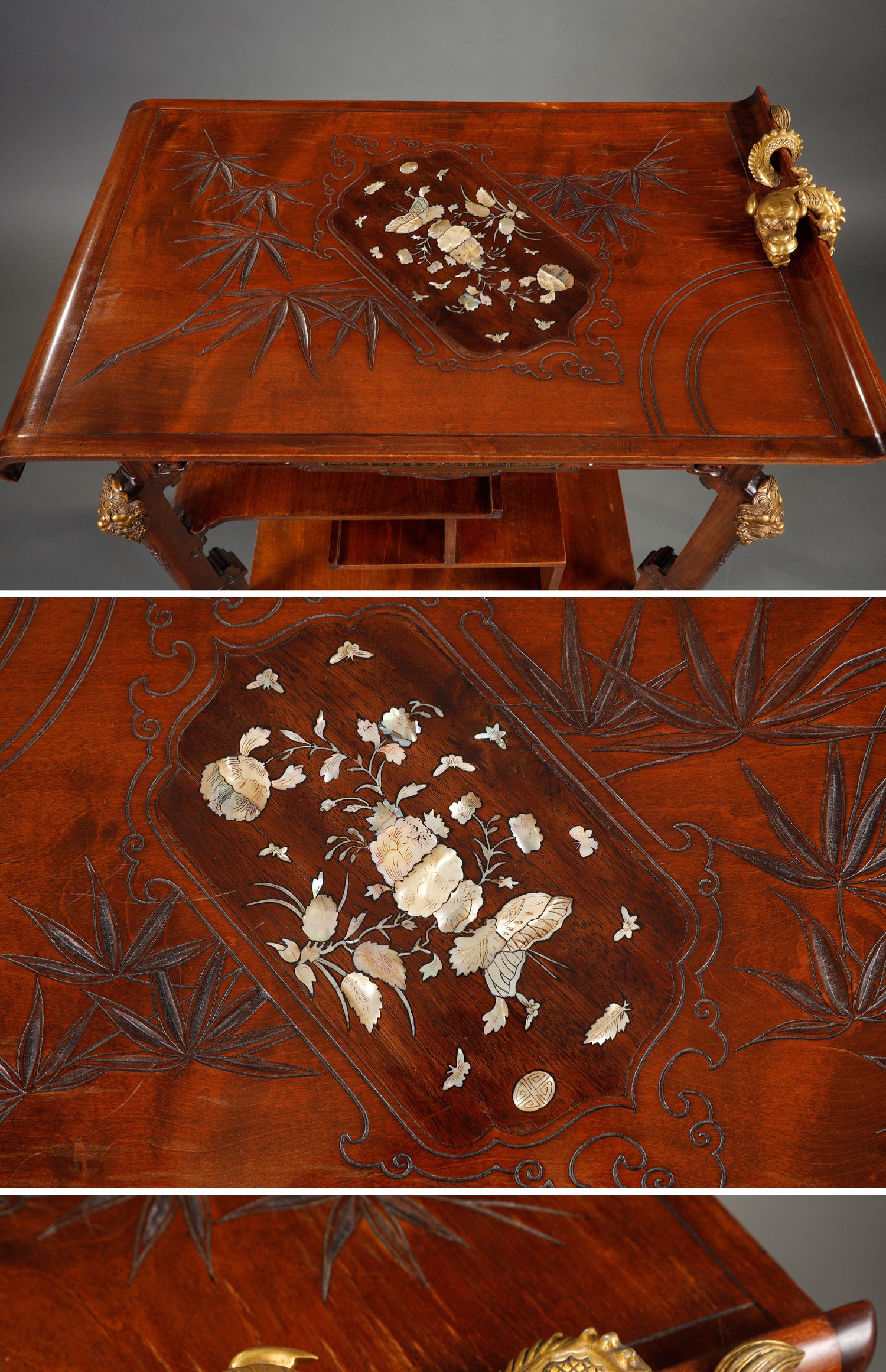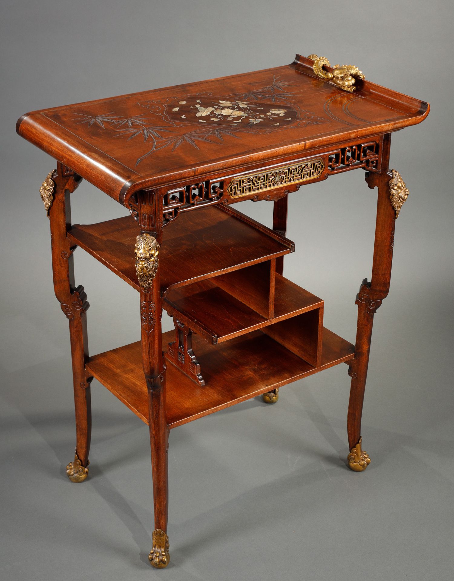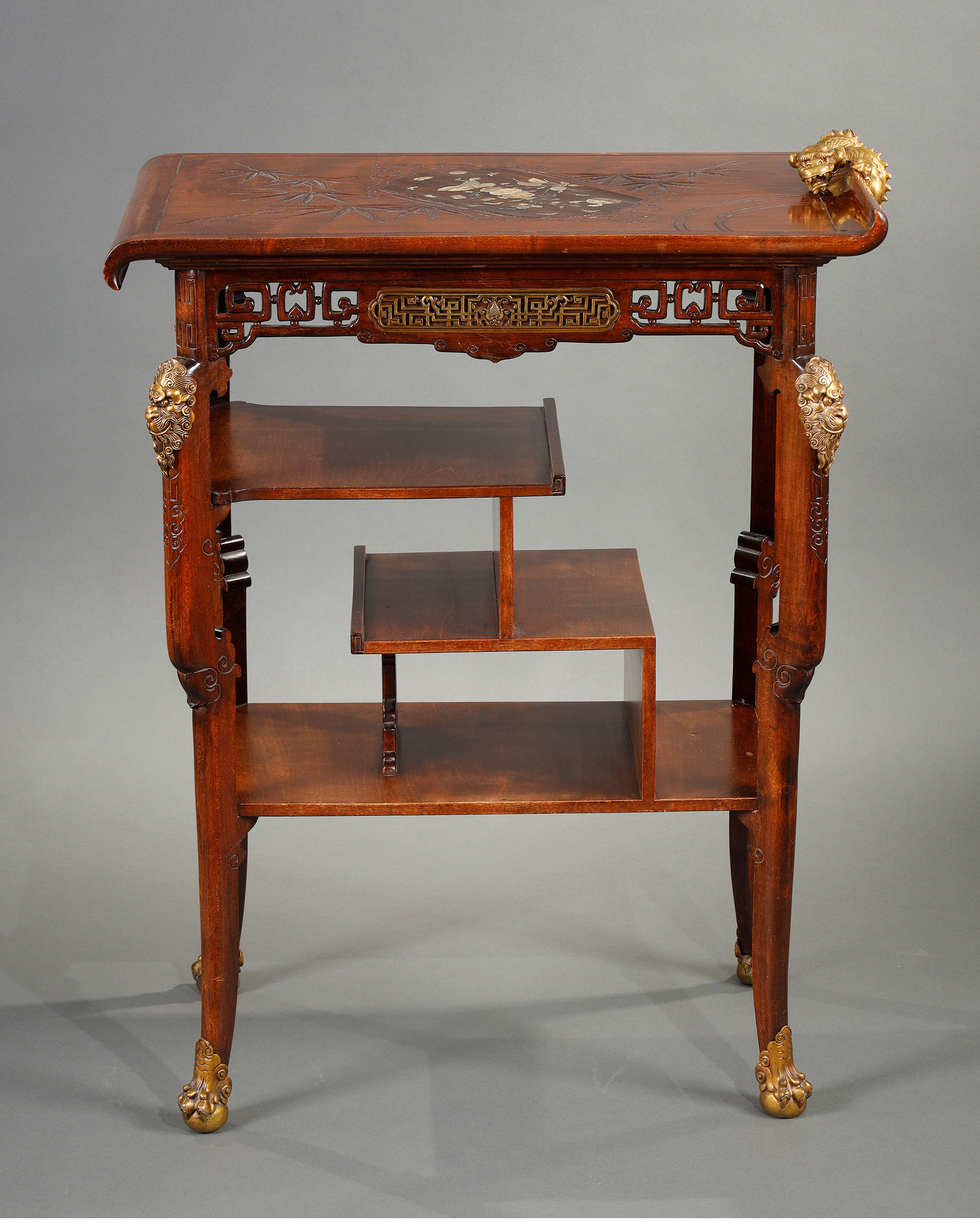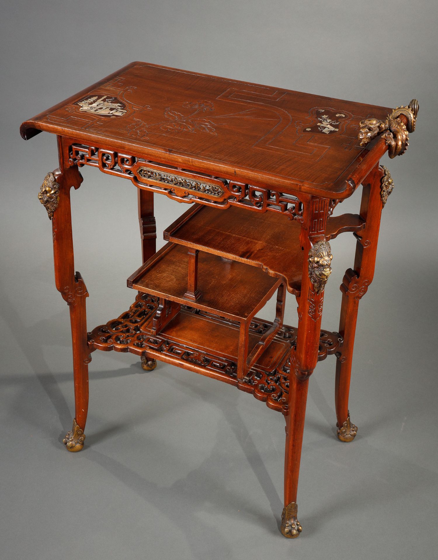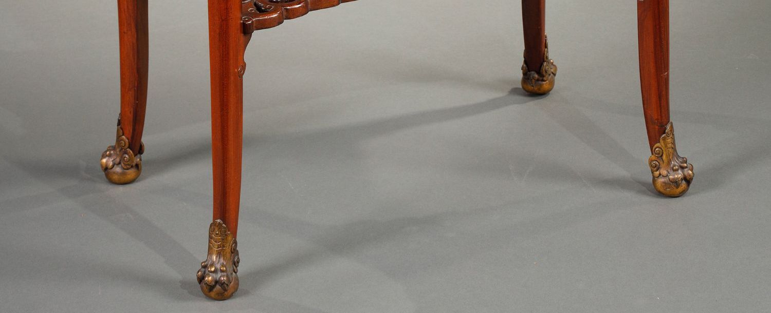 独角鹿西洋古董家具VIARDOT蟠龙瑞兽铜鎏金螺钿镶嵌漆木边桌一对