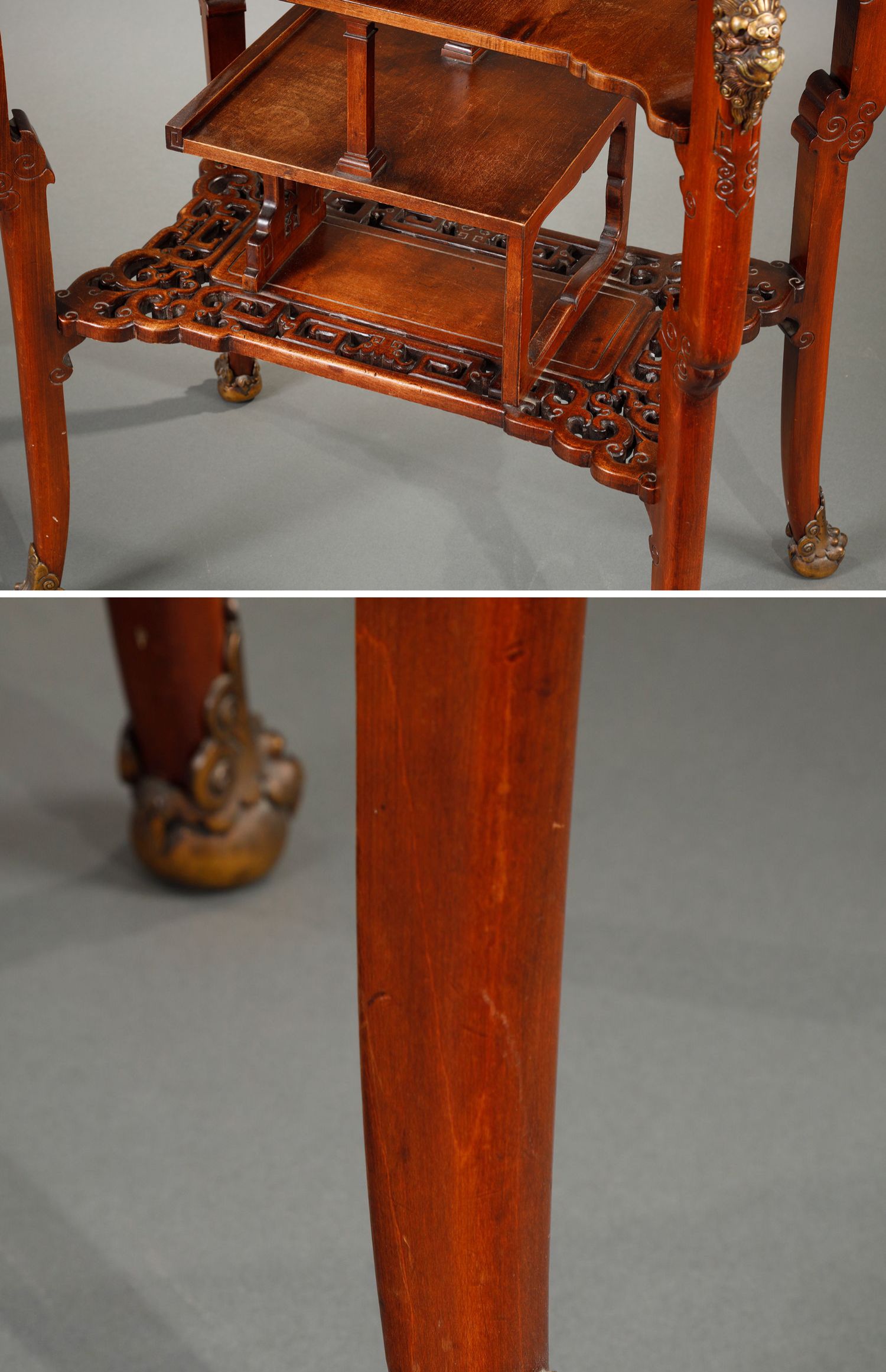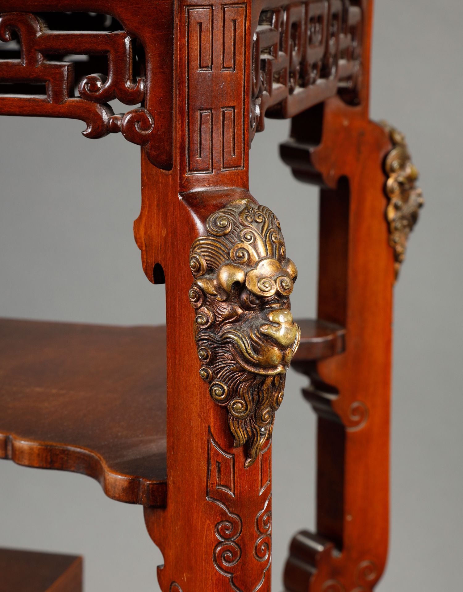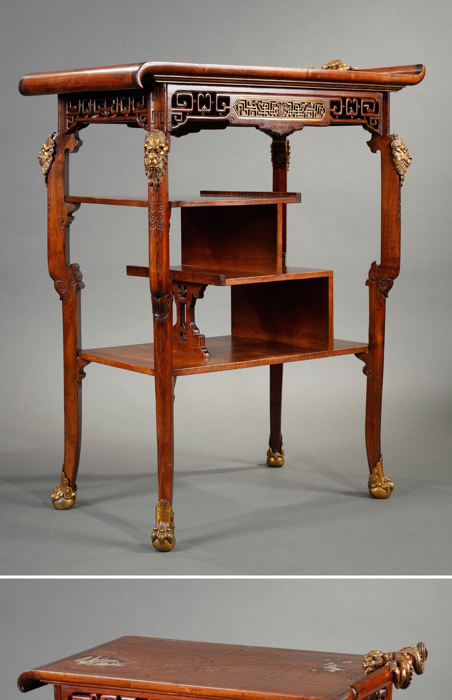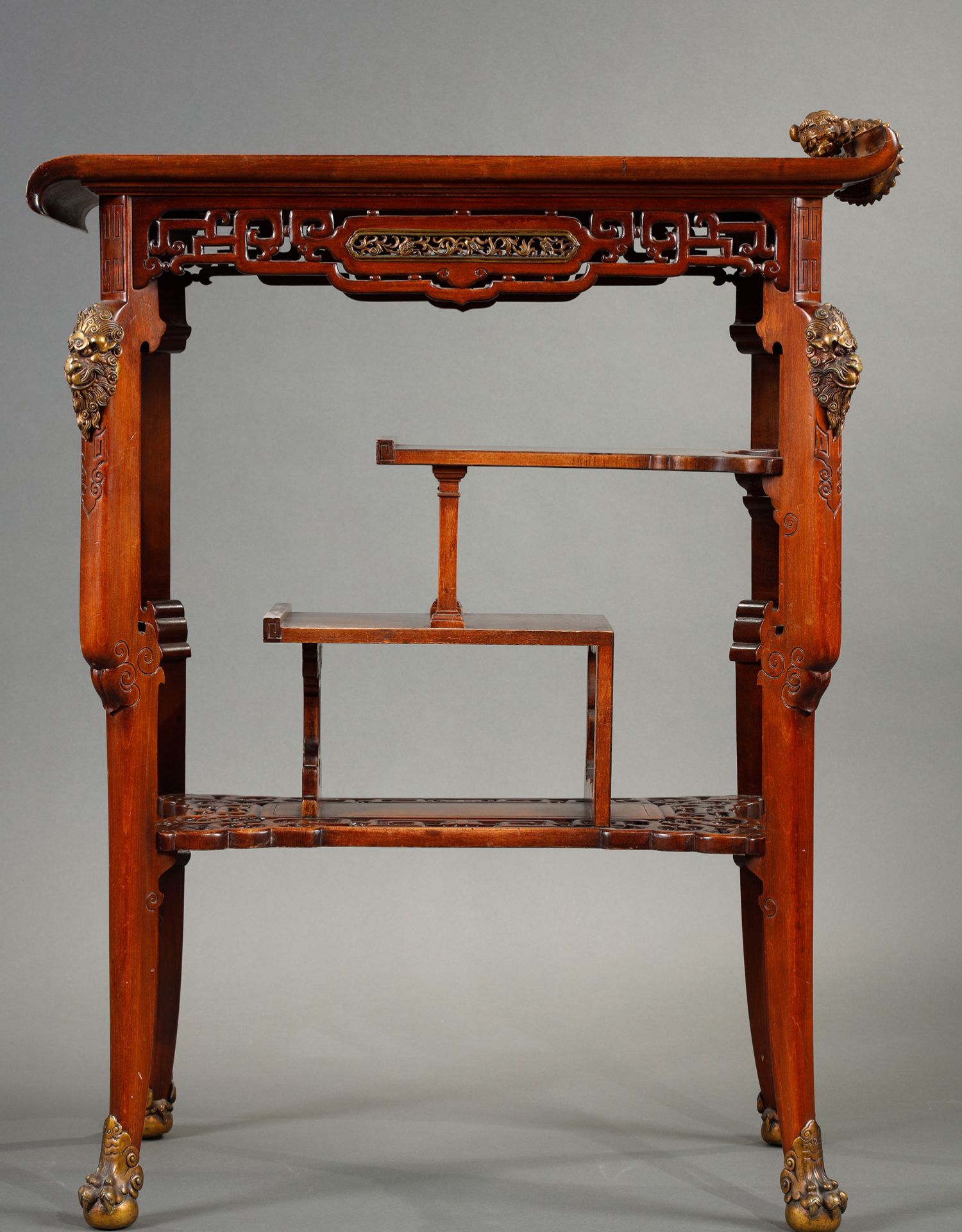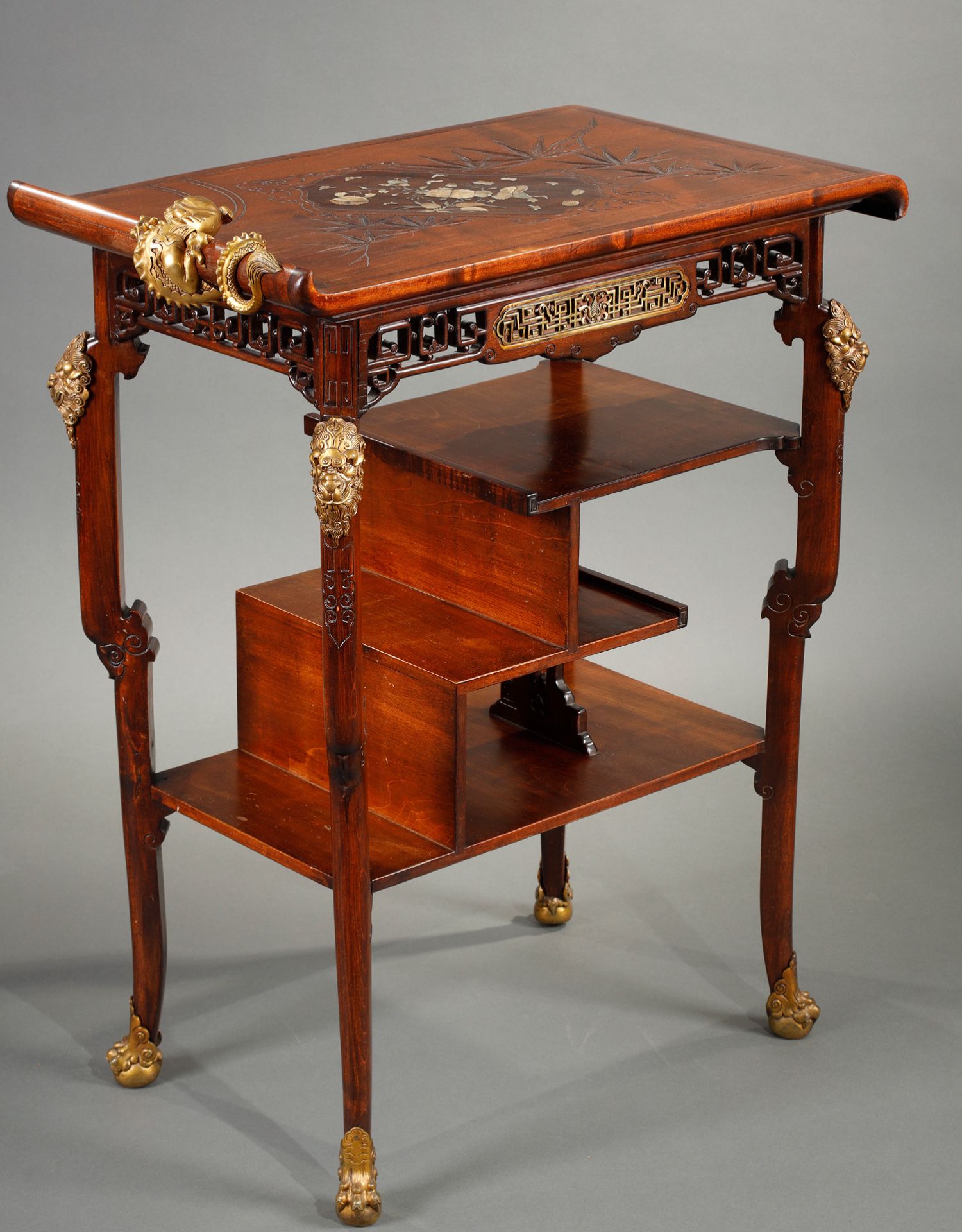 独角鹿西洋古董家具VIARDOT蟠龙瑞兽铜鎏金螺钿镶嵌漆木边桌一对