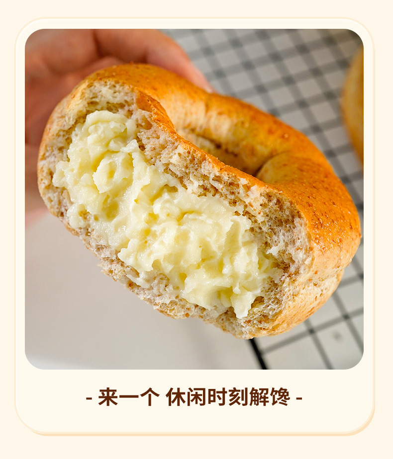 【馅料满满 解馋又抗饿!海盐芝士味夹心贝果】加热更好吃 金黄诱人 嚼劲十足 不单独添加蔗糖健身代餐用营养健康休闲早餐零食健康